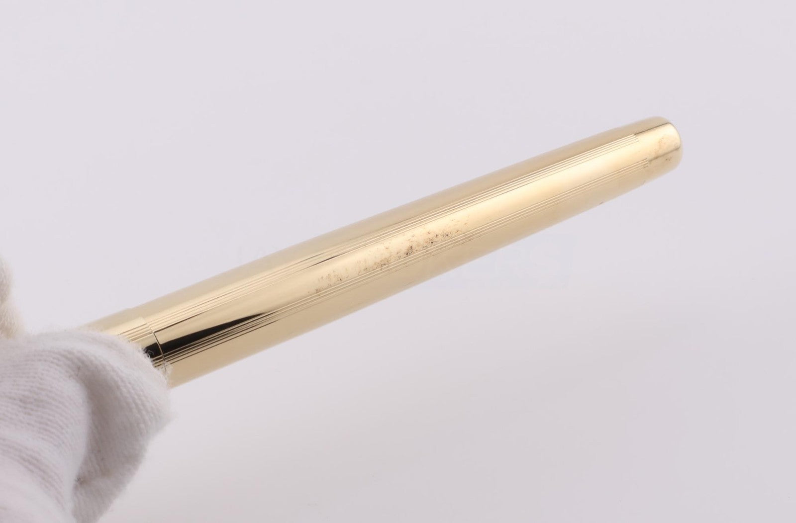 This pen is gently used. The pen shows minor signs of wear and tear including scuff marks and worn finishes. Please refer to the pictures to get a better idea of the physical condition. The installed cartridge works, but we're uncertain how much ink remains (it is a document marker at present). Any adjustments, inking, cleaning, and/or maintenance are the expense and responsibility of the new owner. All pictures included in this listing are of the actual item for sale.