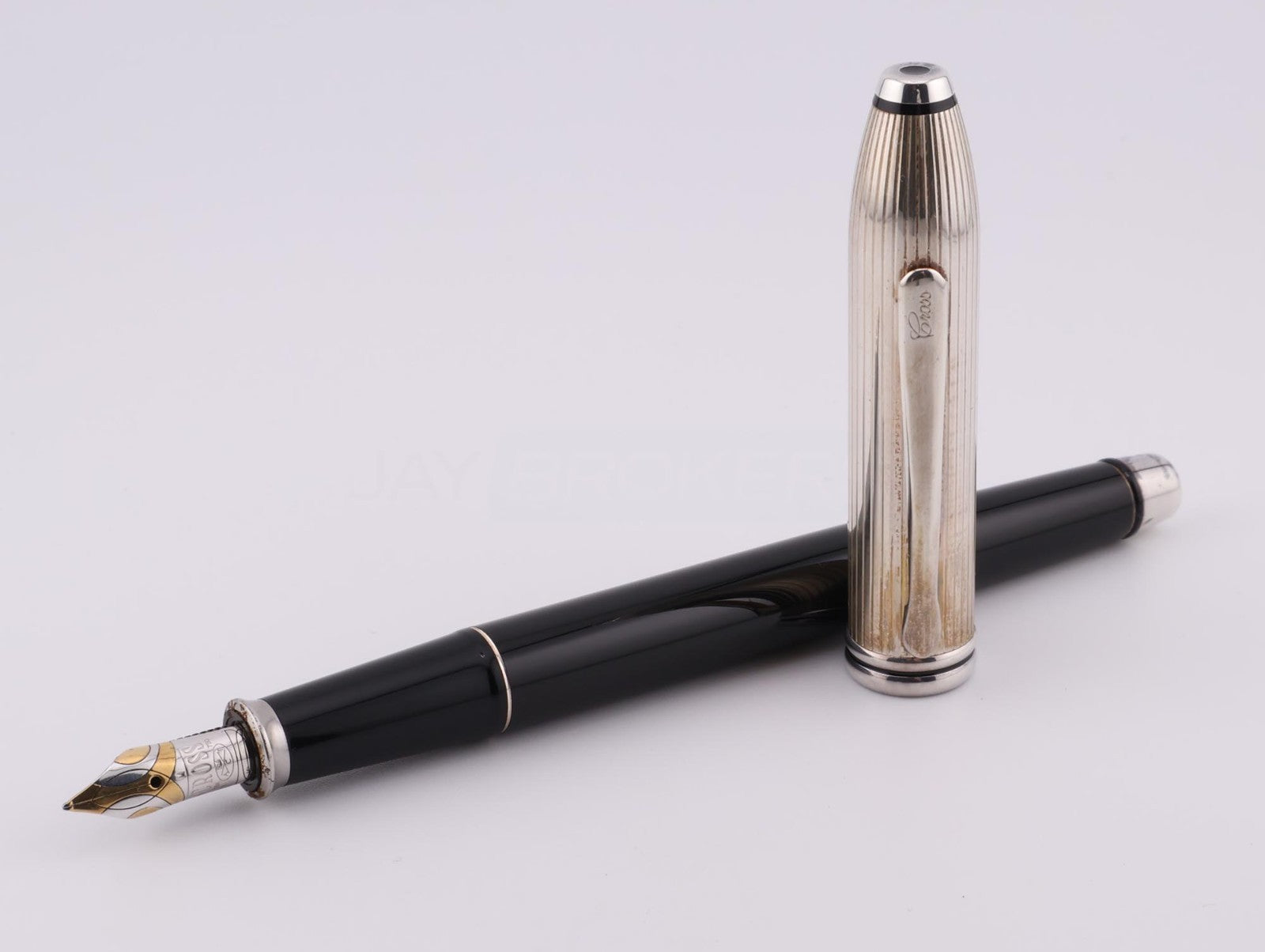 Cross Townsend Two-Tone (Black & Sterling Silver) Fountain Pen 18k 750