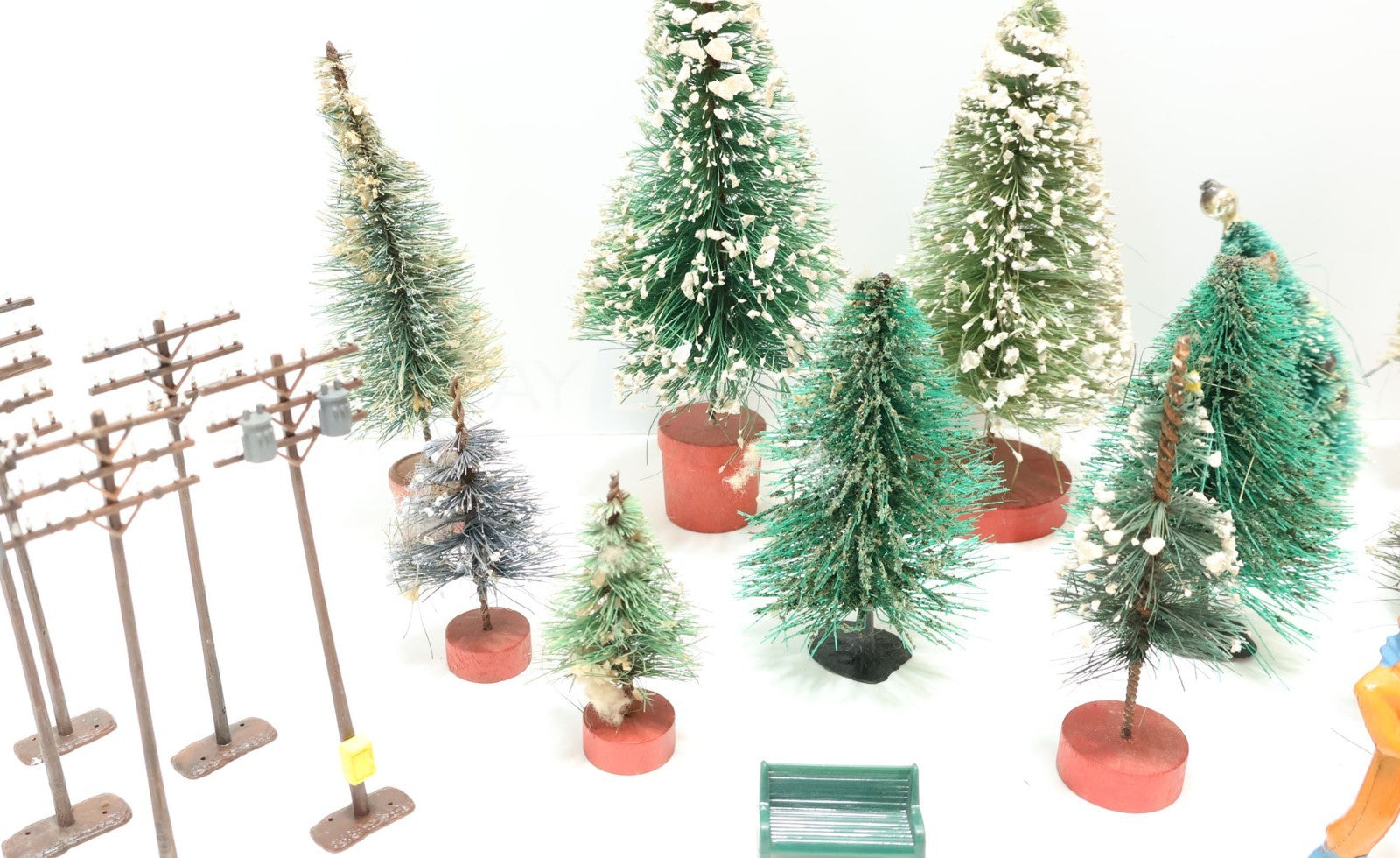 Lot of Misc. Model Train Scenery (Trees, Power Poles, Person, Sign)