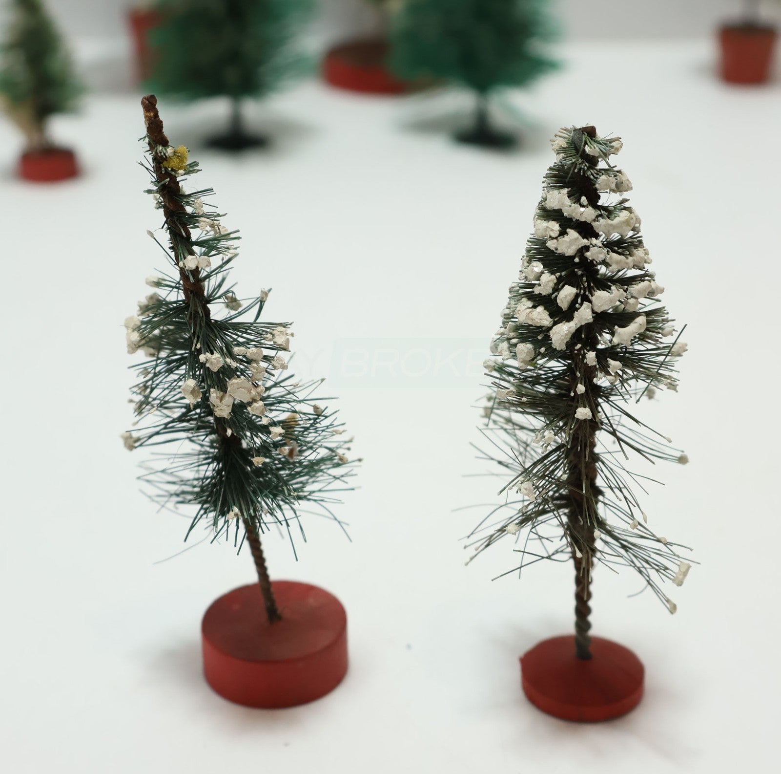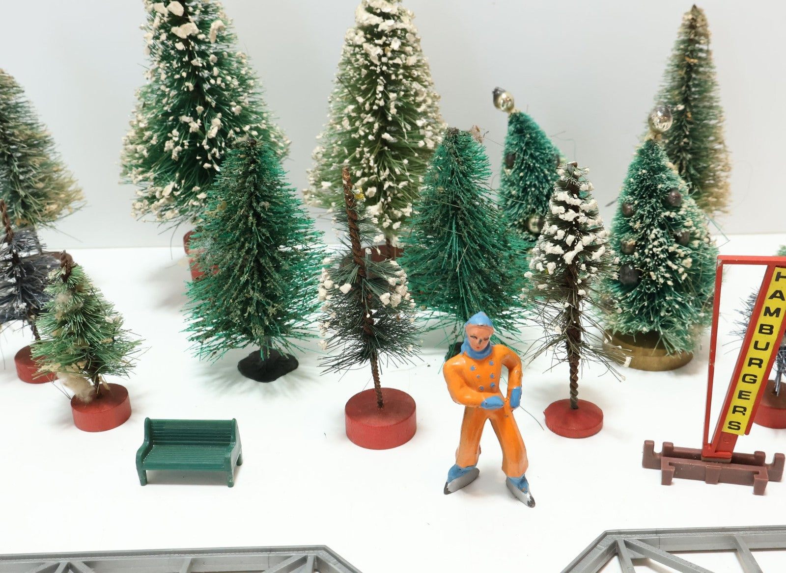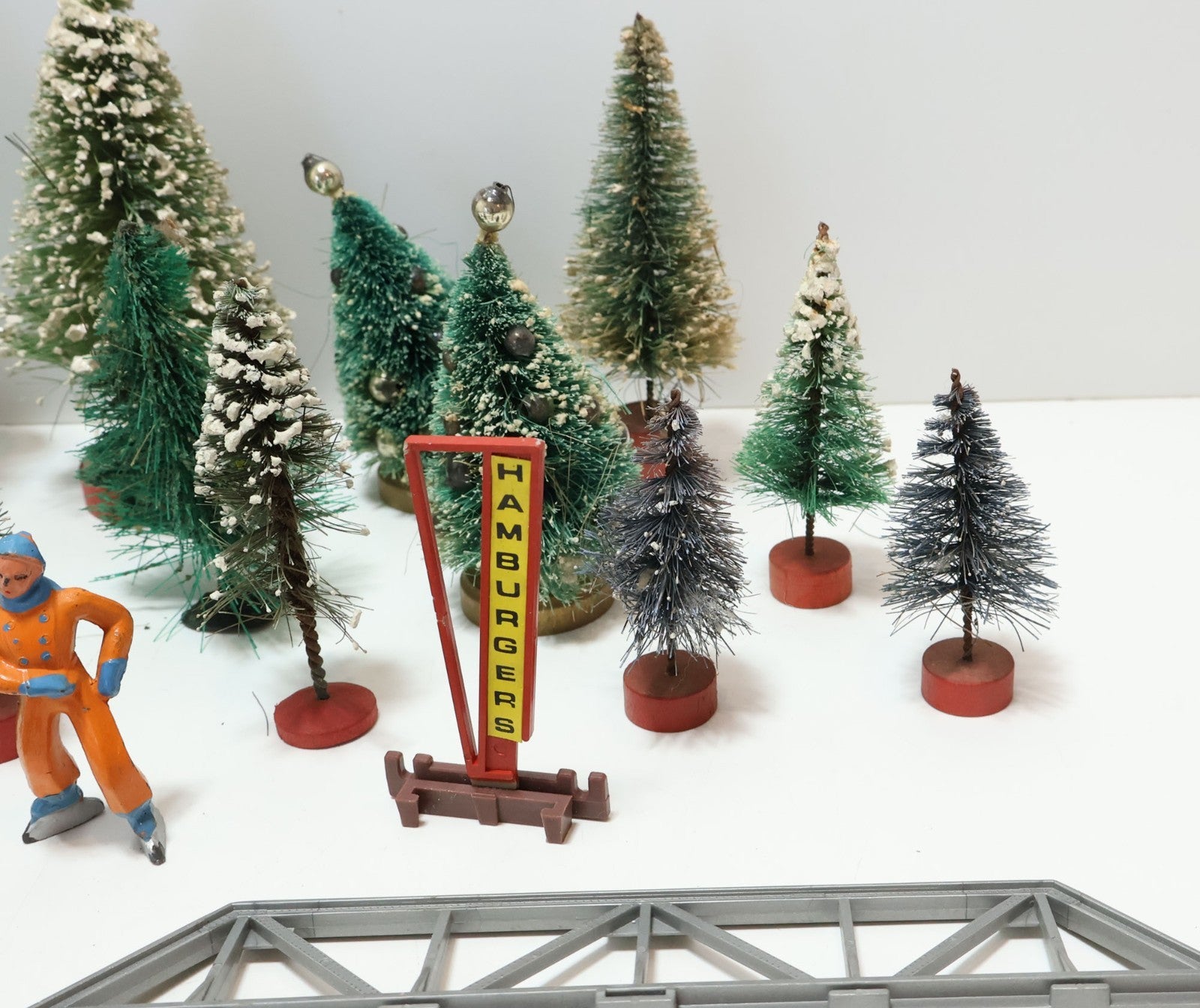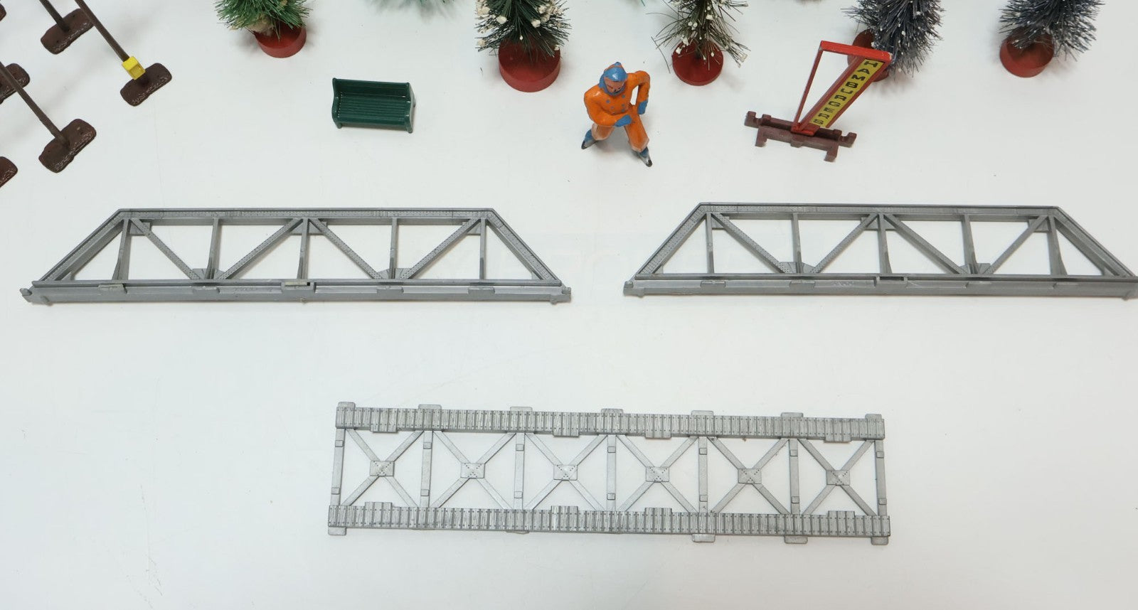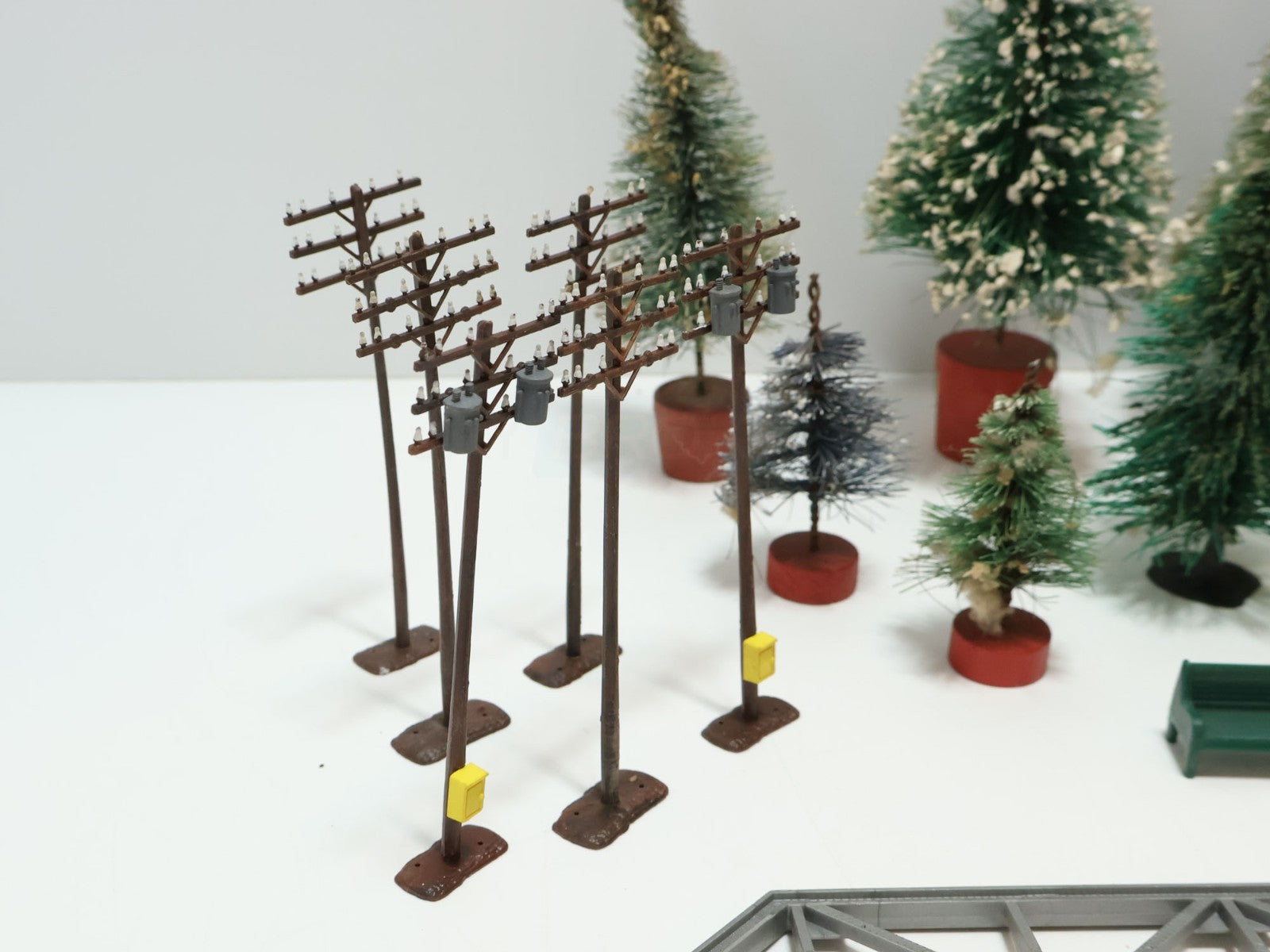 These scenery pieces are all used in varying conditions. Please refer to the pictures to get a better idea of the physical condition. Some of the trees have fake snow on them while others do not. Regardless be sure to carefully inspect the pictures as what you see is what you get. Any repair, maintenance, cleaning, and/or setup is the new owner's expense and responsibility.