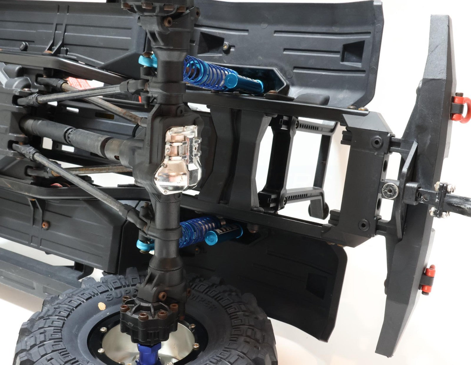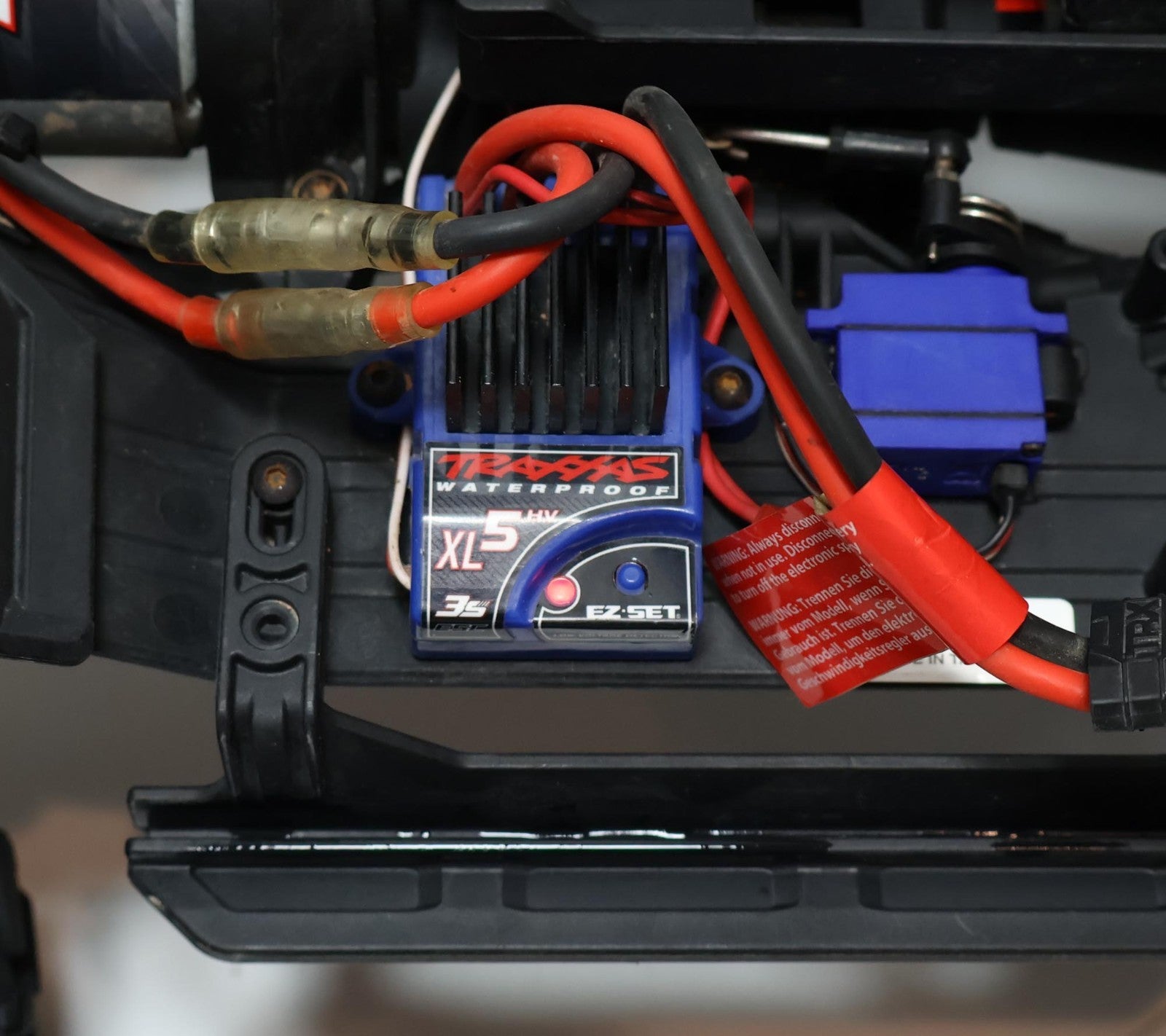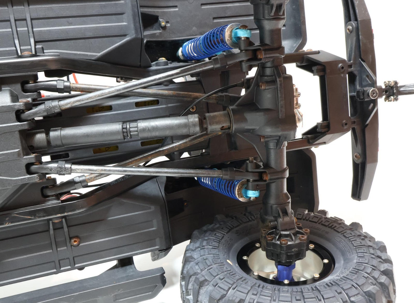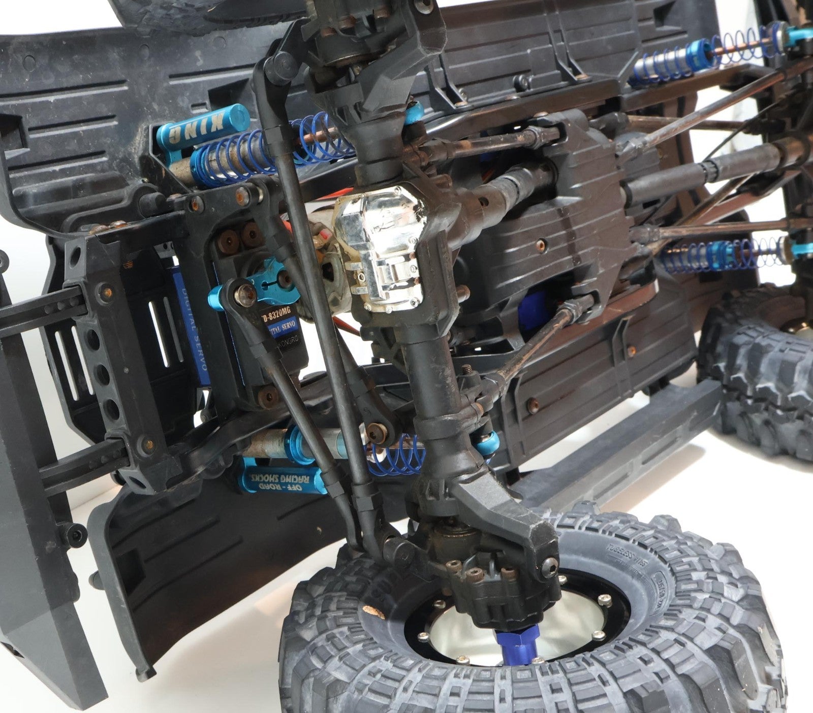 This item is used. The item shows average to moderate signs of wear and tear including scuff marks, scratches, nicks, and worn finishes. We noticed signs of oxidation on some of the screws and metal parts on the chassis. It appears the truck has custom tires and potentially other parts including suspension. The top of the body is heavily scratched with what appear to be small cracks. Some of the silver trim stickers are peeling off or ripped. Note the body pins are missing. Please refer to the pictures to get a better idea of the physical condition. We tested the unit with an in-house TQi controller and it worked as expected (see test video). Note the included battery is a 2S aftermarket version and a charger is NOT included. A controller will be required in order to operate it (NOT included). Any setup, configuration, modifications, and/or maintenance are the expense and responsibility of the new owner.