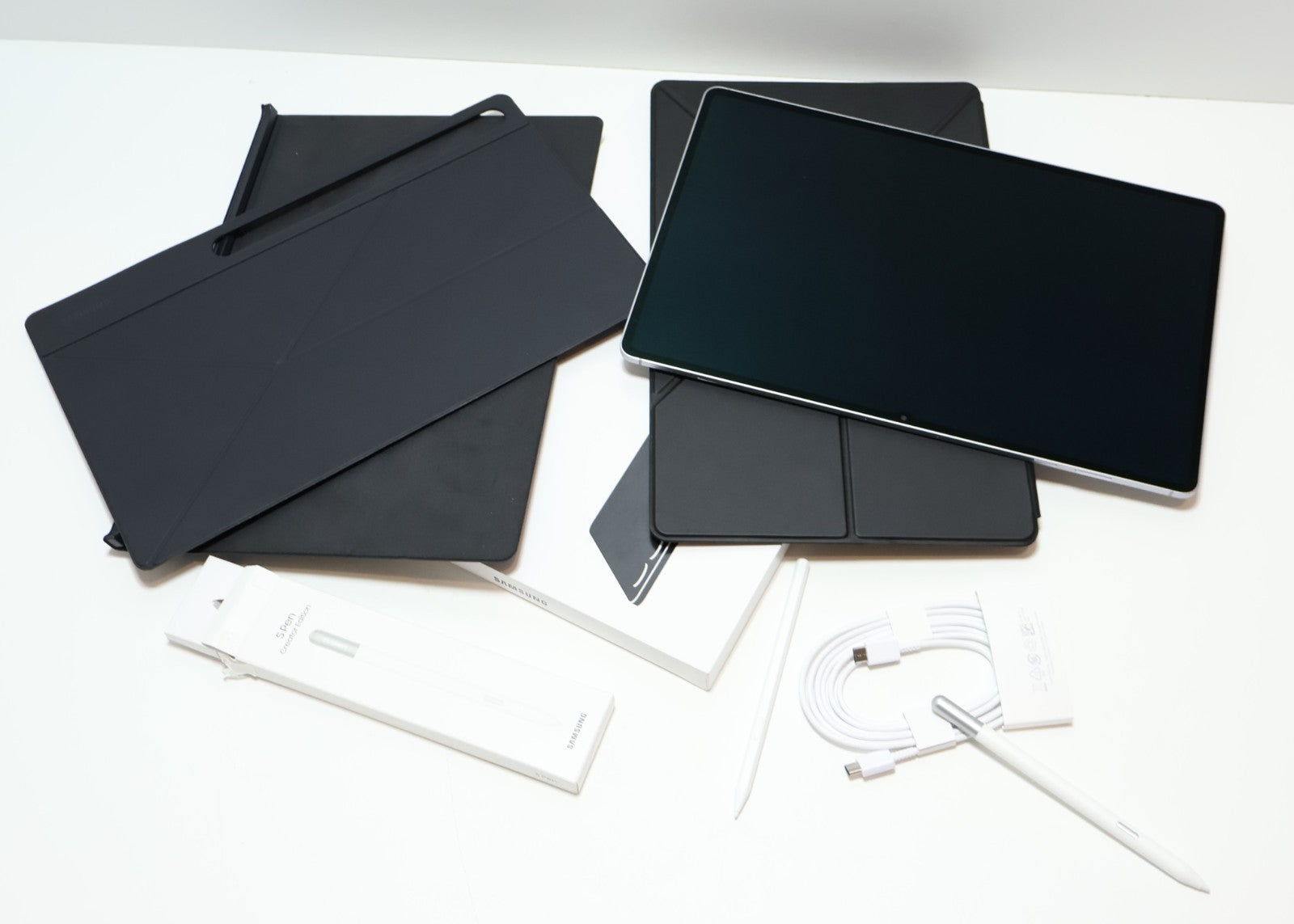 Includes: Tablet, USB-C Cable, Samsung S Pen Creator's Edition (w/ 2x Extra Tips), Samsung Pen, Samsung Smart Book Cover, Samsung Book Cover, Manual/Documentation, Original Box