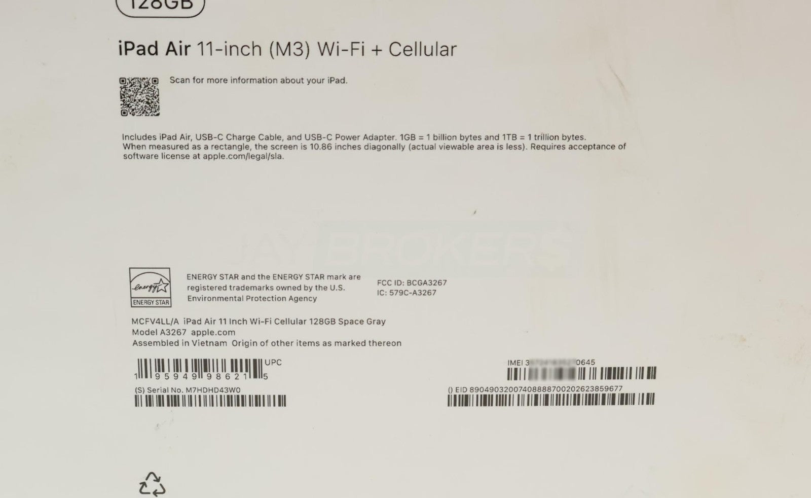 Apple iPad Air 7 M3 128GB Wi-Fi + Cellular 11" MCFV4LL/A Space Gray