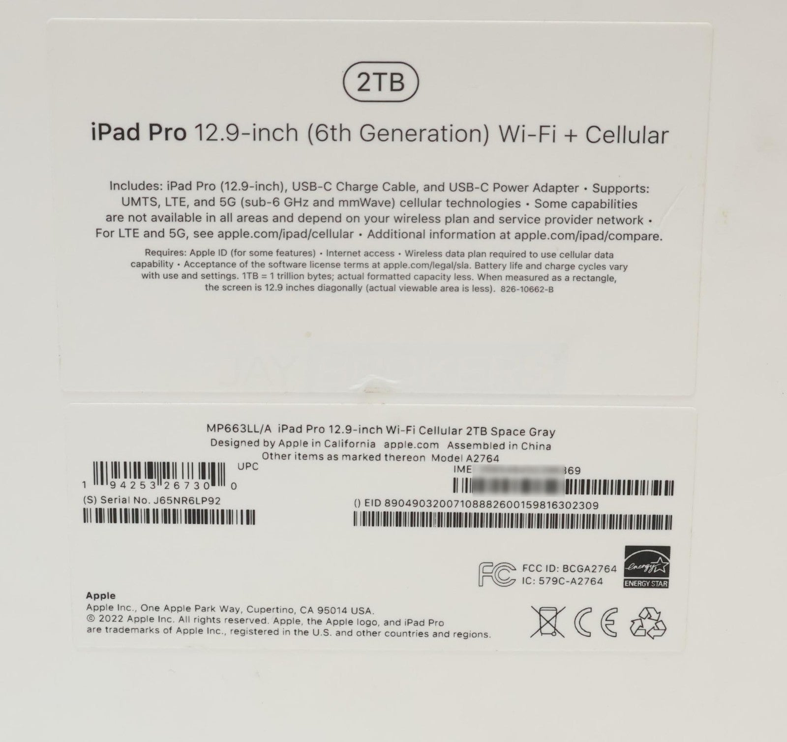 Apple iPad Pro M2 6th Gen 2TB WiFi + Cellular 12.9" MP663LL/A Space Gray