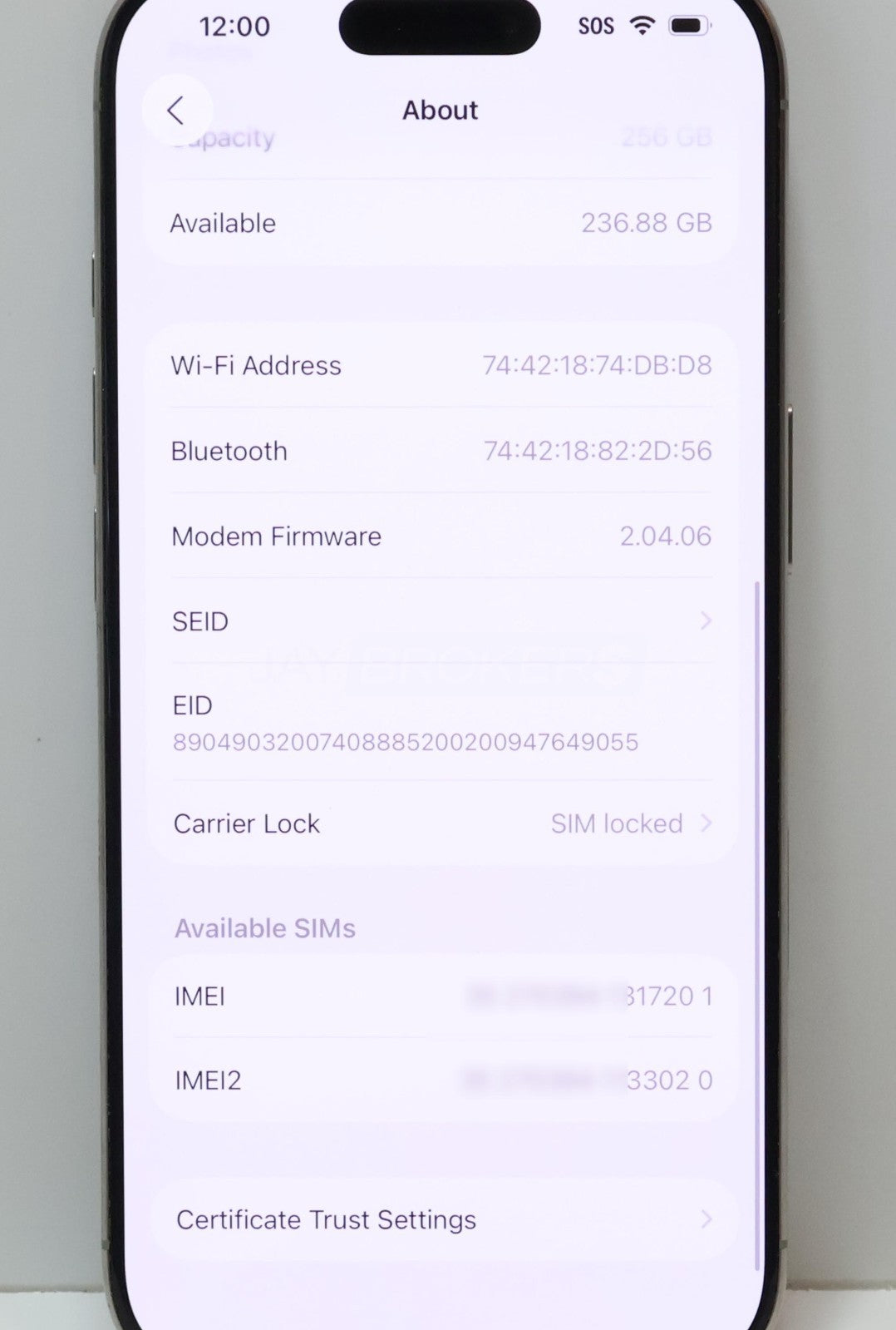 This item is used. The item shows moderate signs of wear and tear including scuff marks, dings/dents, scratches, debris/crud, and worn finishes. The back glass is cracked on this item. Please refer to the pictures to get a better idea of the physical condition. The screen has no dead pixels. The battery holds a solid charge (99% Maximum Capacity, 221 Cycle Count). The remainder of the item has been tested and is in good working order. The new owner will need a compatible eSIM supplied by the carrier in order to use the cellular capability. The IMEI (***********17201) has been verified as of 11/27/2025 and is not reported lost or stolen. However, it is still with contract via AT&T and the previous owner. It is ready for activation to another AT&T account. This device is locked to AT&T. Jay Brokers does not guarantee the outcome of unlocking attempts or unlocking eligibility.