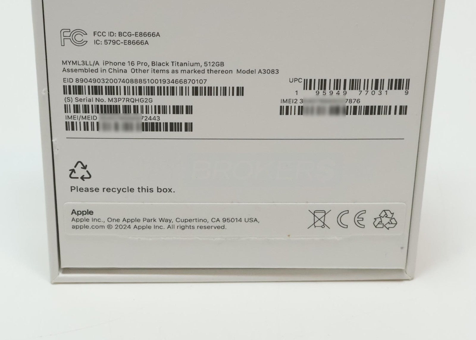 Apple iPhone 16 Pro 512GB (Unlocked) 6.3" MYML3LL/A Black Titanium