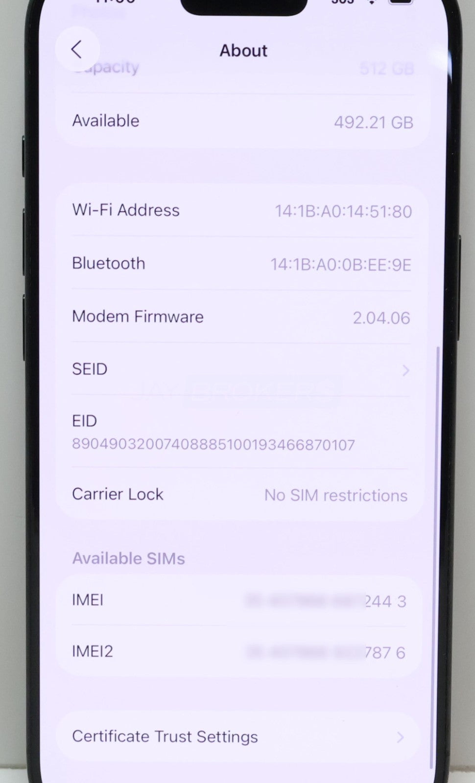 This item is gently used. The item shows minor signs of wear and tear including scuff marks and worn finishes. Please refer to the pictures to get a better idea of the physical condition. The screen has no dead pixels. The battery holds a solid charge (106 cycle count, 92% Maximum Capacity). The item has been tested and is fully functional. The new owner will need a compatible SIM card or eSIM supplied by the carrier in order to use the cellular capability. The IMEI (***********2443) has been verified through the GSMA database and is not reported lost or stolen as of 10/01/2025.