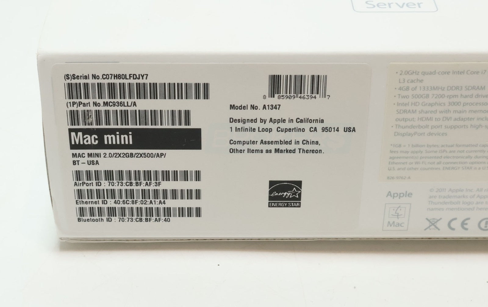 Apple Mac Mini Server Core i7 2.0GHz 16GB RAM 2x2TB HDDs MC936LL/A