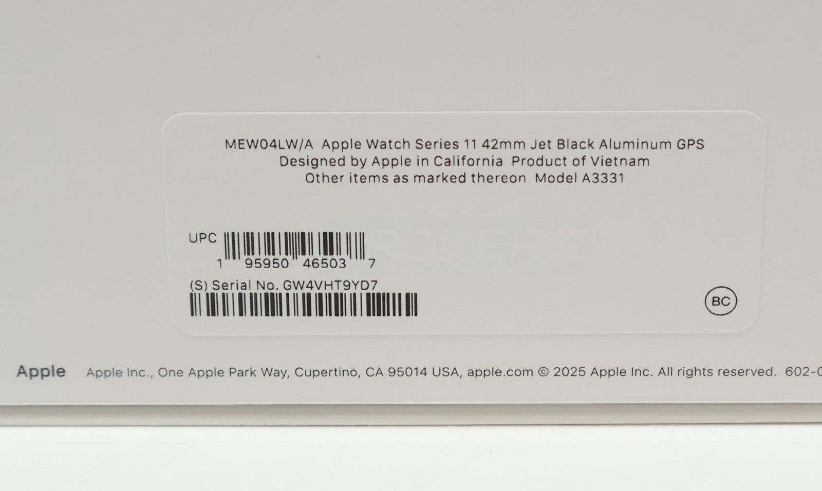 Serial Number: GW4VHT9YD7