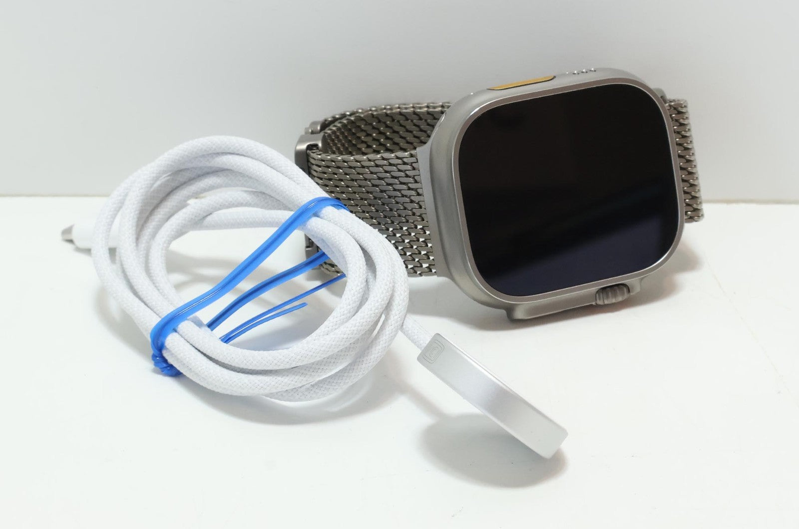 Includes: Watch, Magnetic USB Charging Cable, Large Natural Titanium Milanese Loop, Original Box