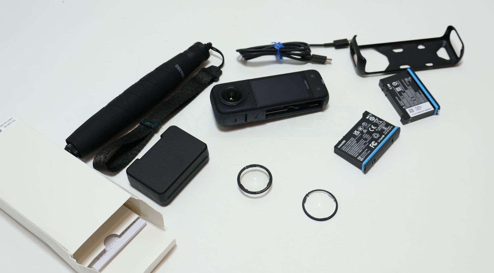 Includes: Camera, 2x Batteries, USB-C Cable, Protective Case, Battery Case, Lens Cover, Selfie Stick, Original Box