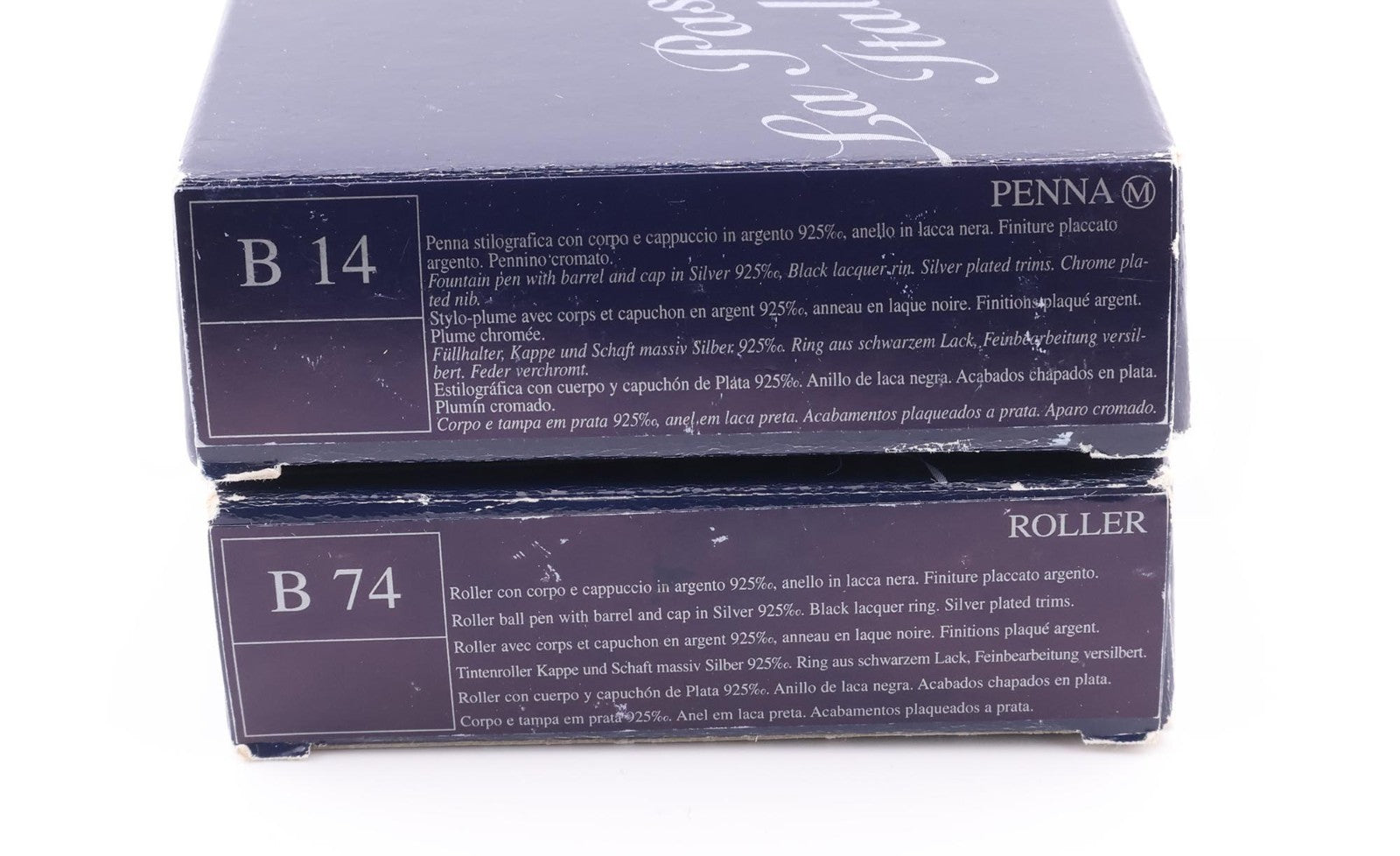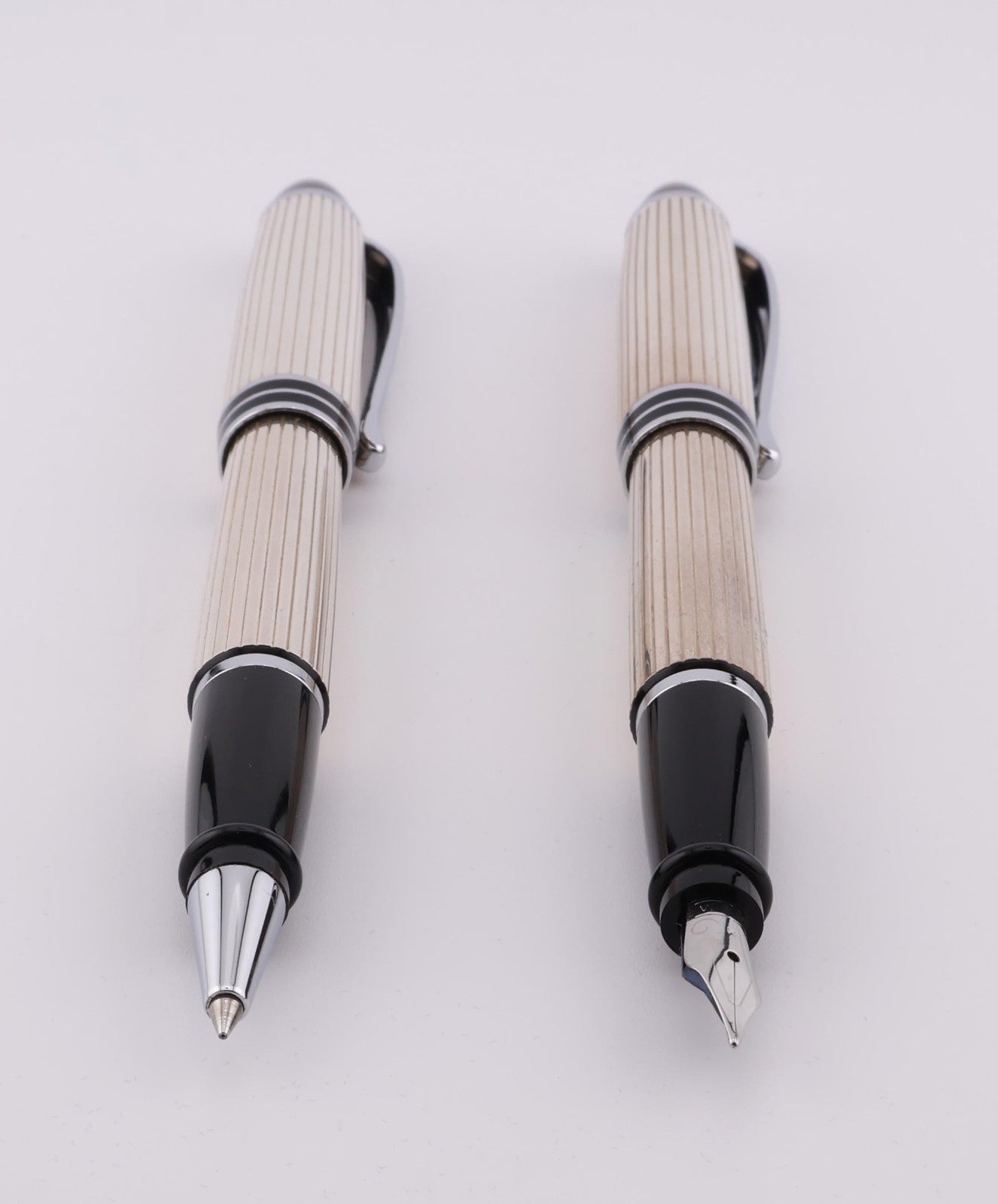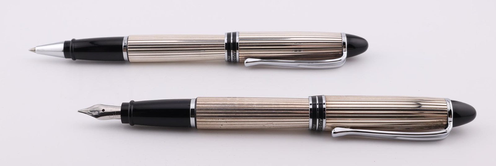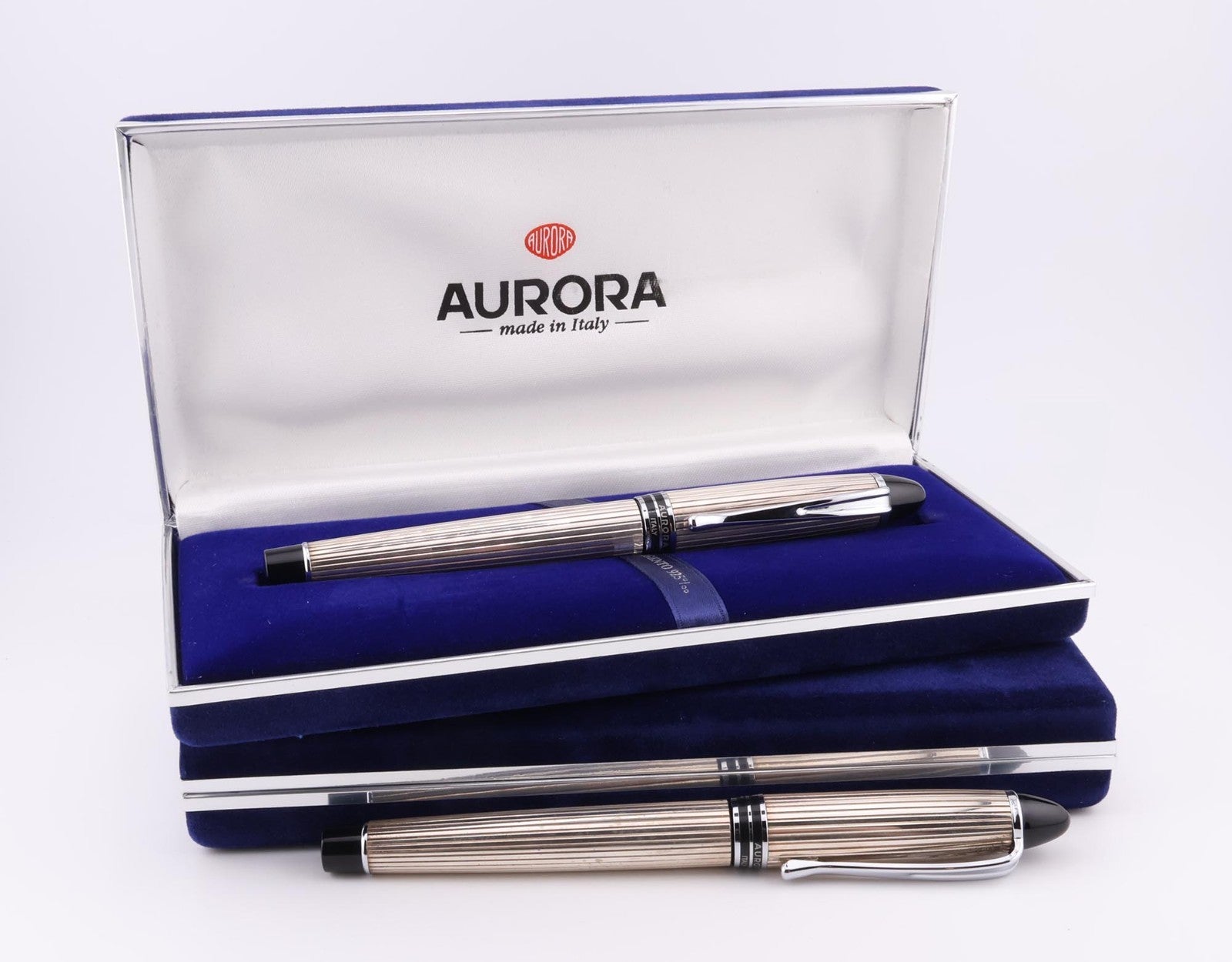 Aurora B74 Rollerball & B14 Penna Fountain Pen (M) Bundle Sterling Silver