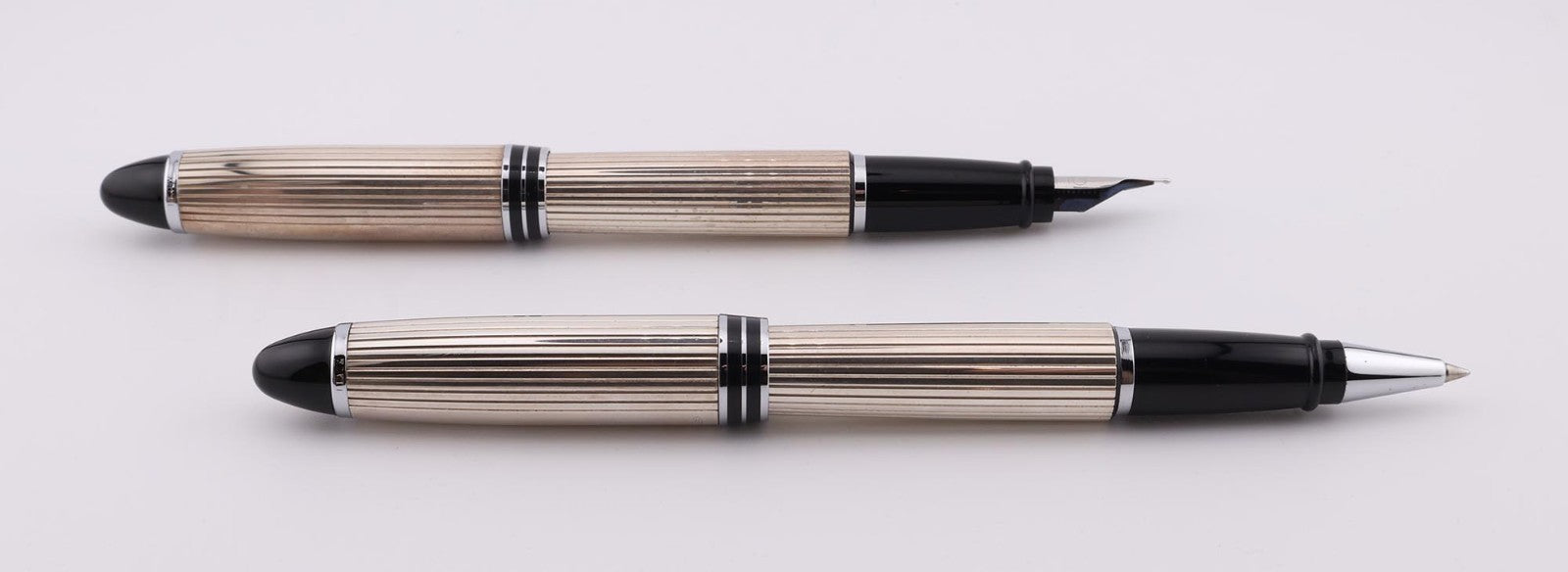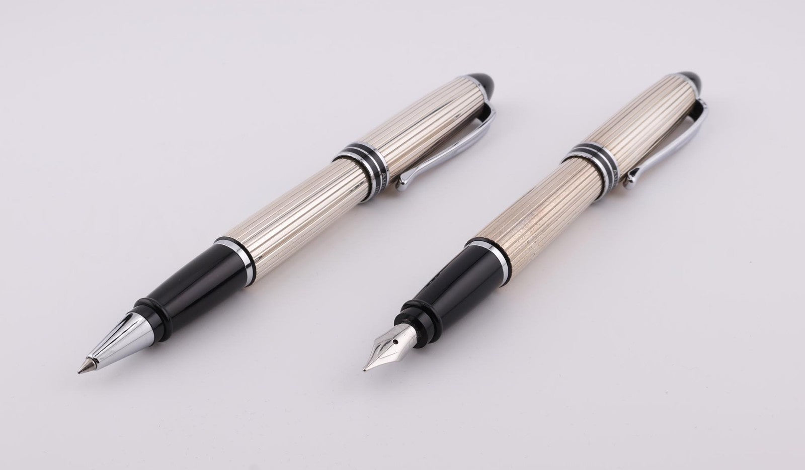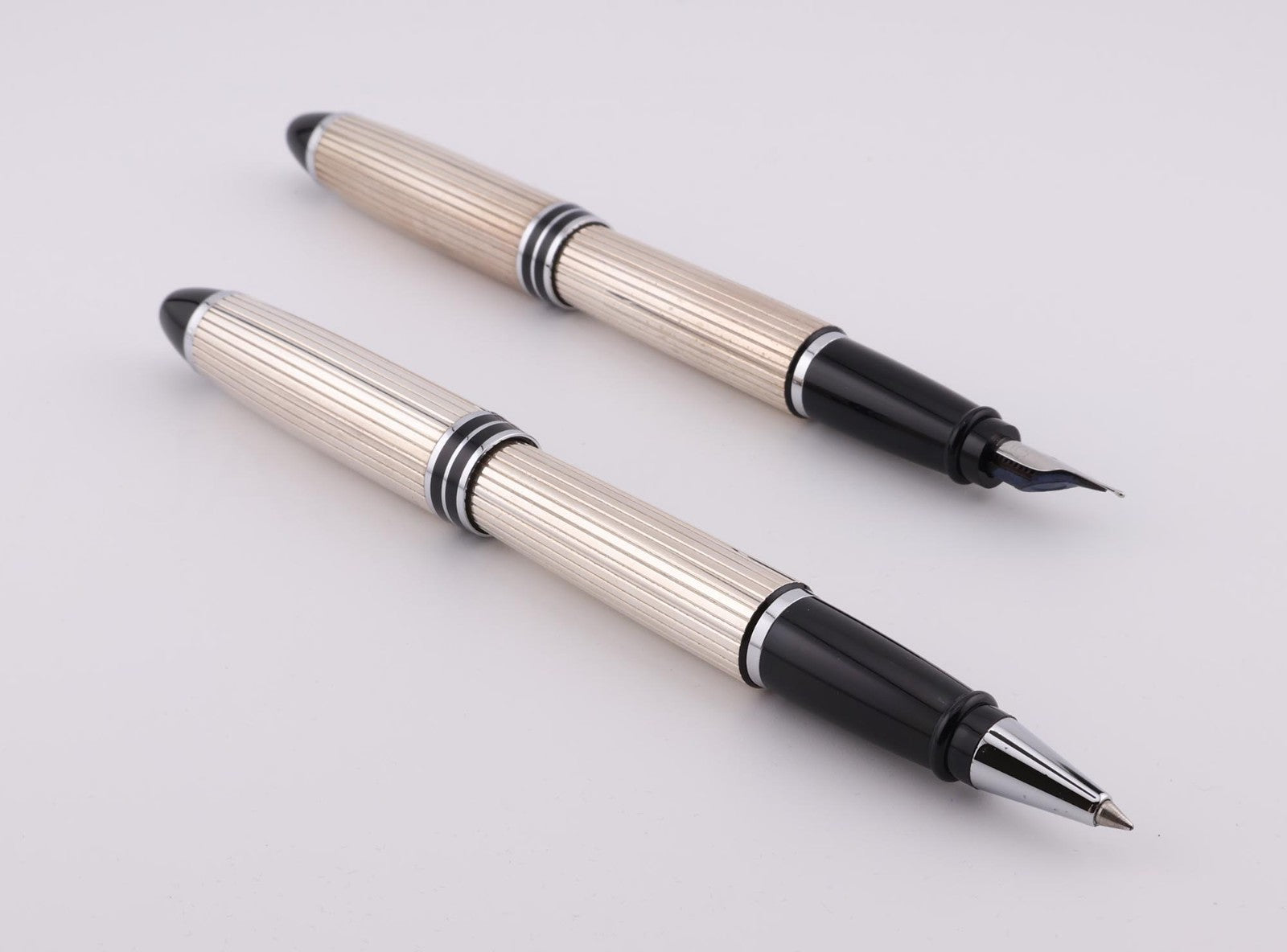 Aurora B74 Rollerball & B14 Penna Fountain Pen (M) Bundle Sterling Silver