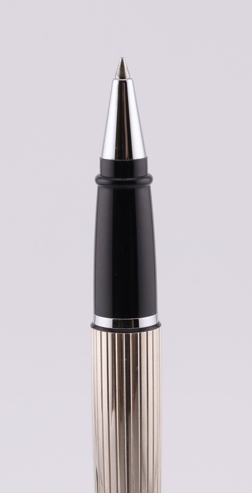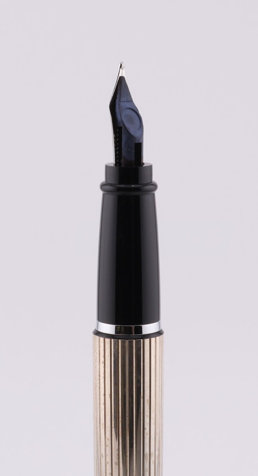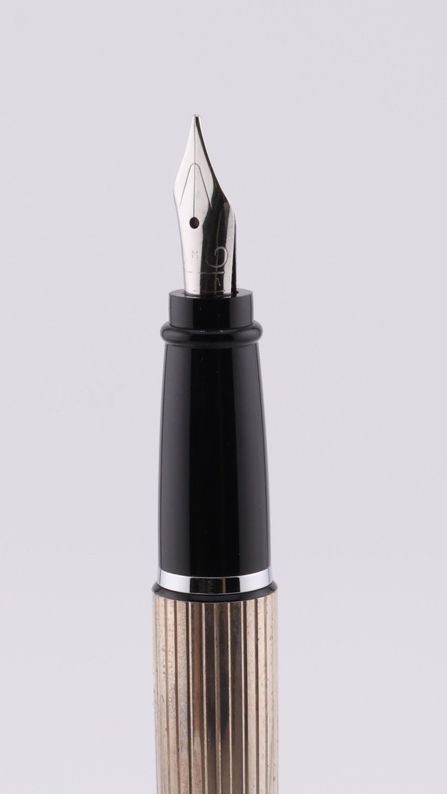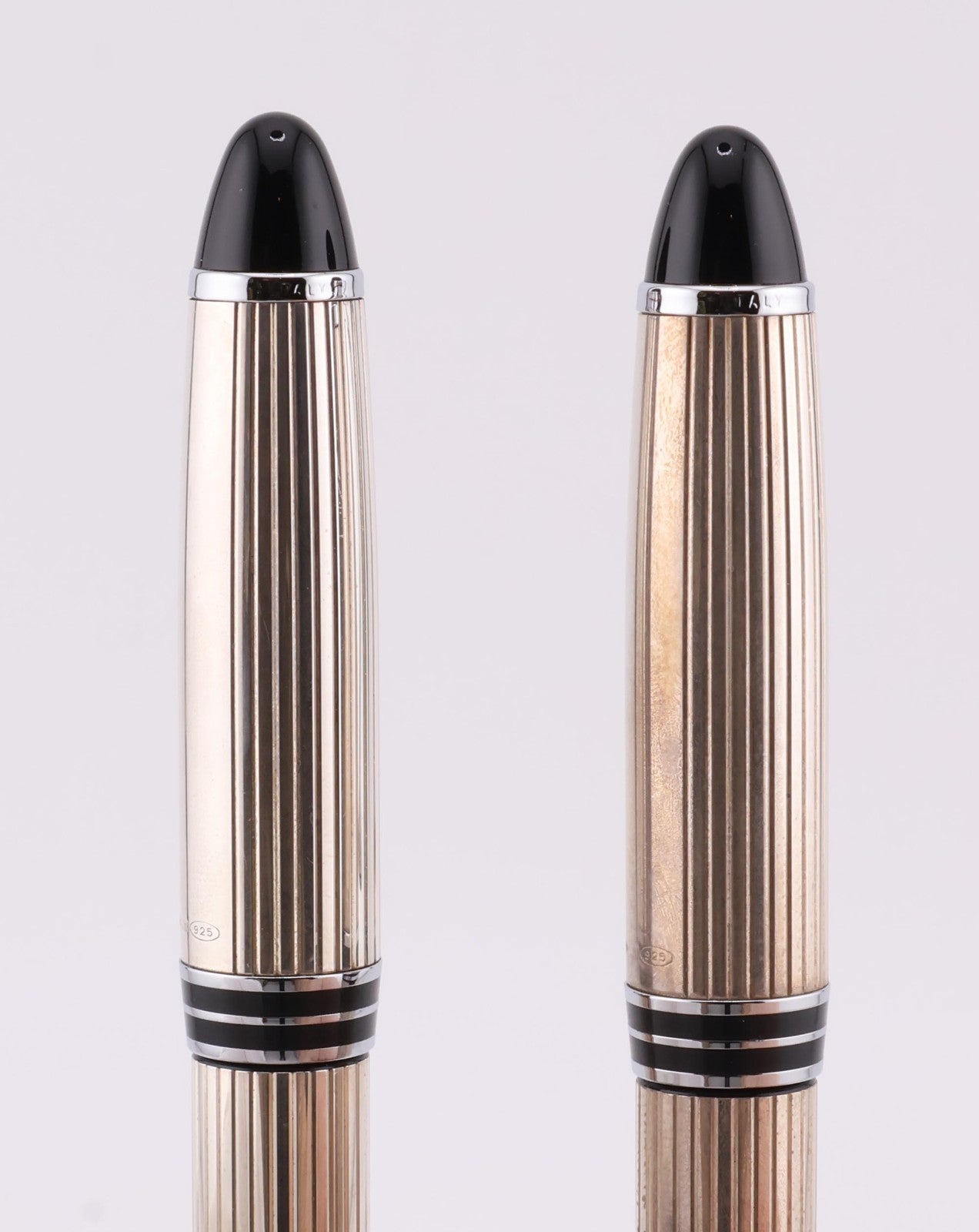 These pens are used. They show minor to average signs of wear and tear including scuff marks, scratches, and worn finishes. Both have some discolorations and tarnishing present. The engravings on the fountain pen's nib are difficult to see. Please refer to the pictures to get a better idea of the physical condition. The rollerball pen cartridge is dry and needs replacement. We tested the fountain pen by drawing in test water and expelling it. Any adjustments, inking, cleaning, and/or maintenance are the expense and responsibility of the new owner. All pictures included in this listing are of the actual item for sale.