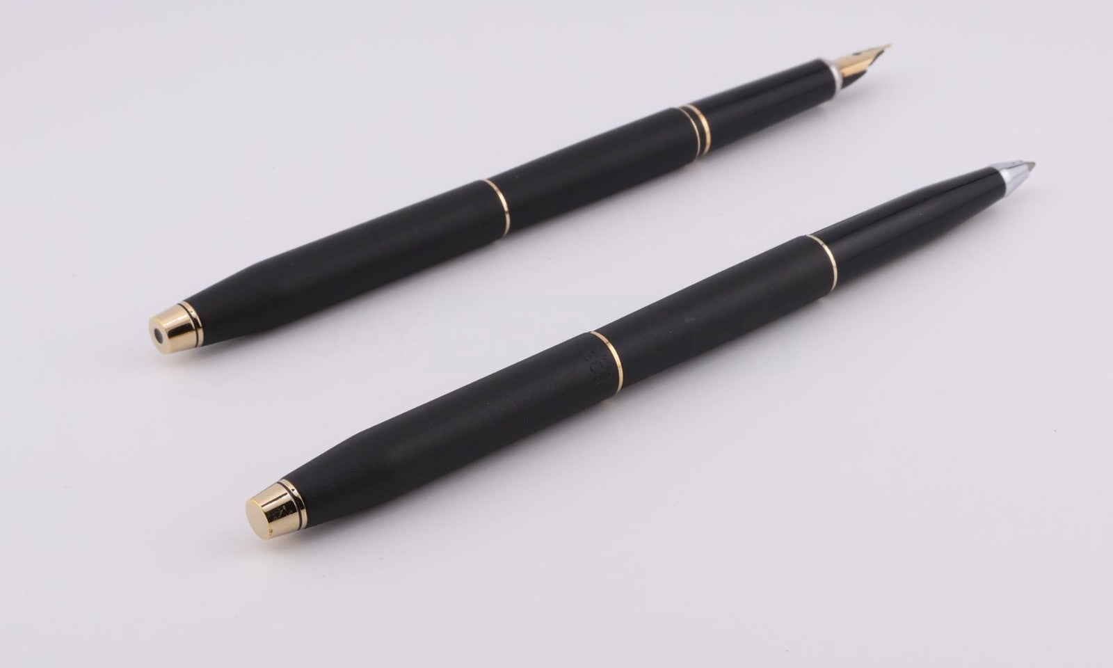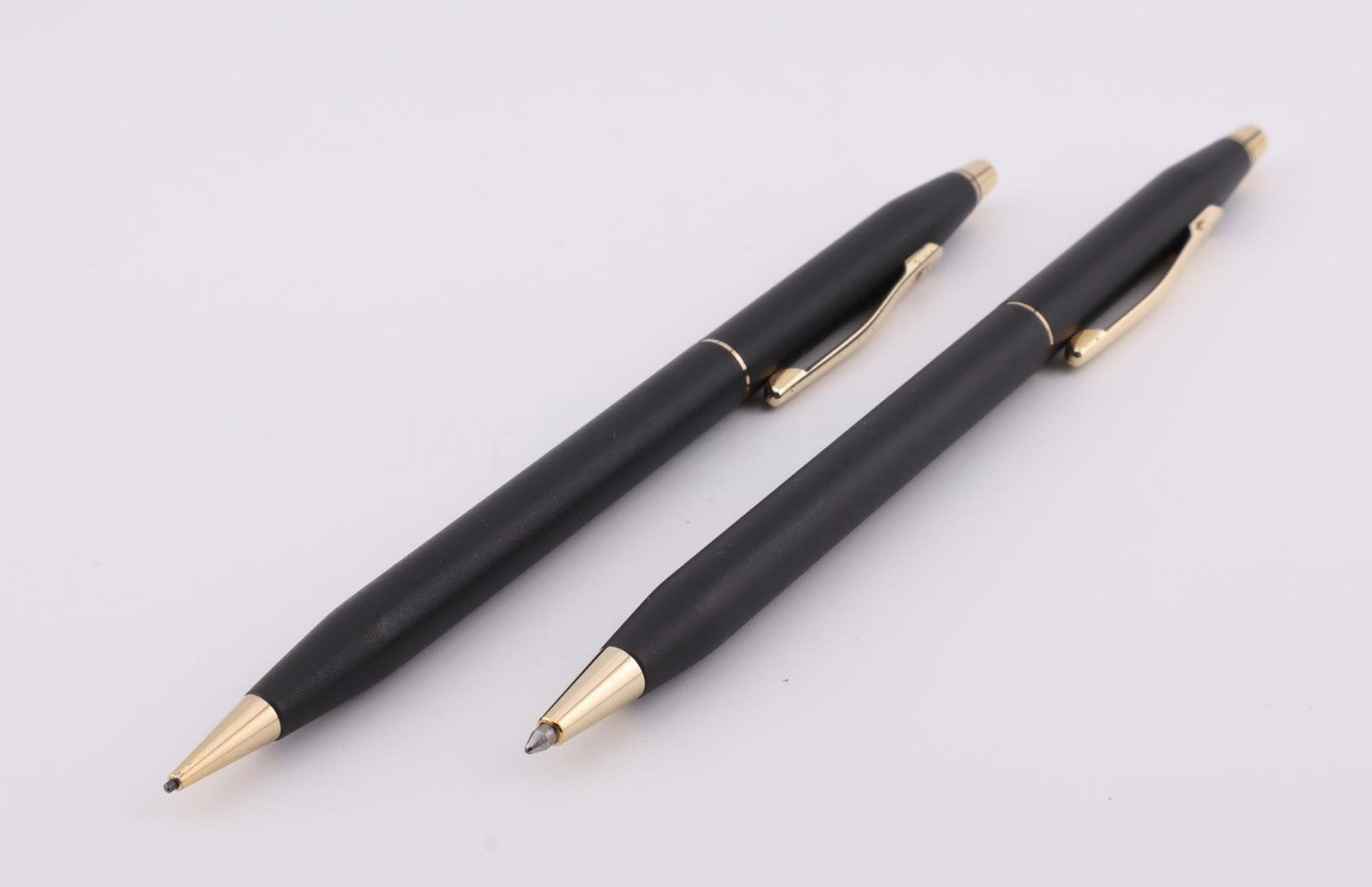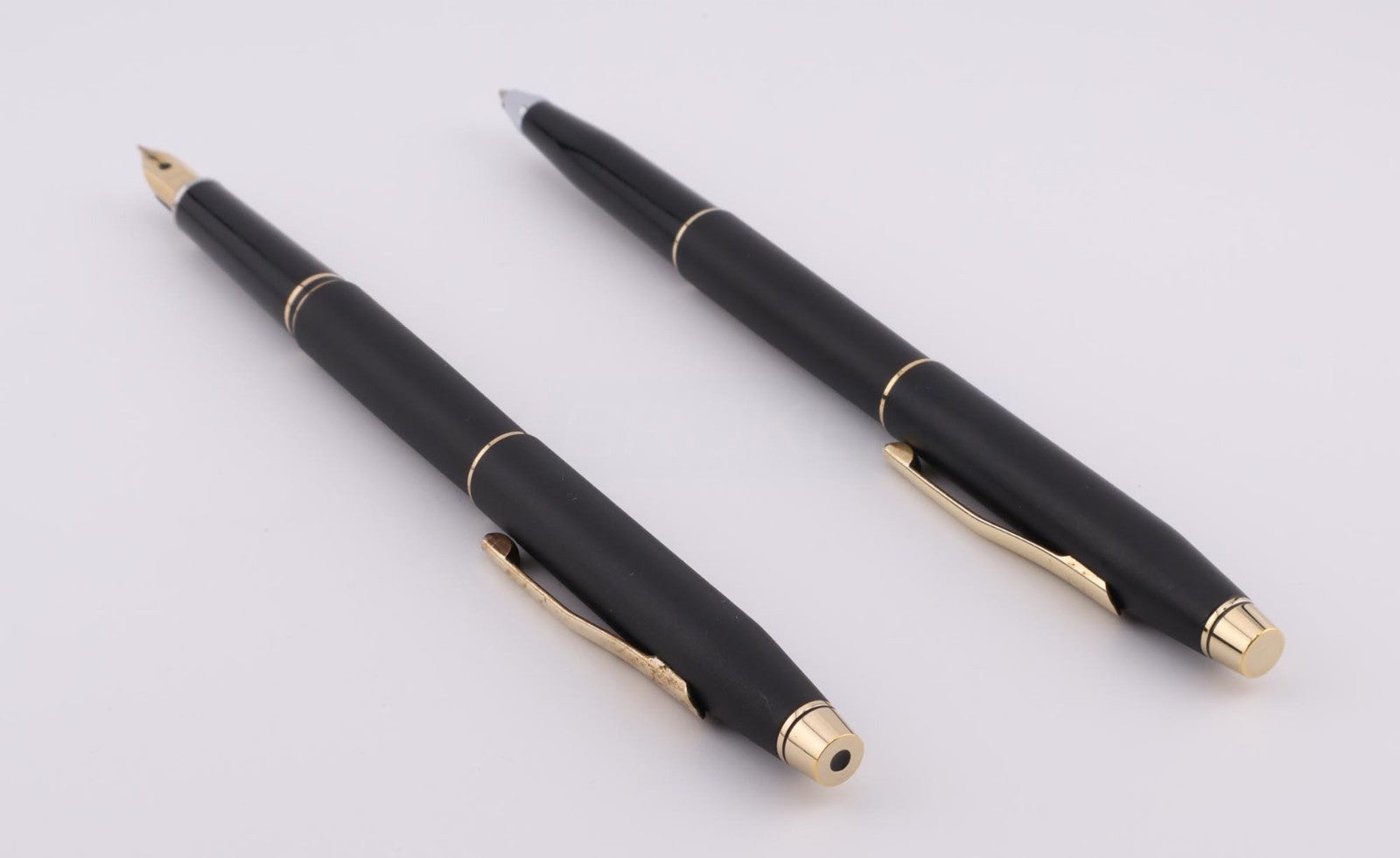 Includes: Gold Pencil, Gold Ballpoint Pen, Black Pencil, Black Ballpoint Pen, Black Rollerball Pen, Black Fountain Pen