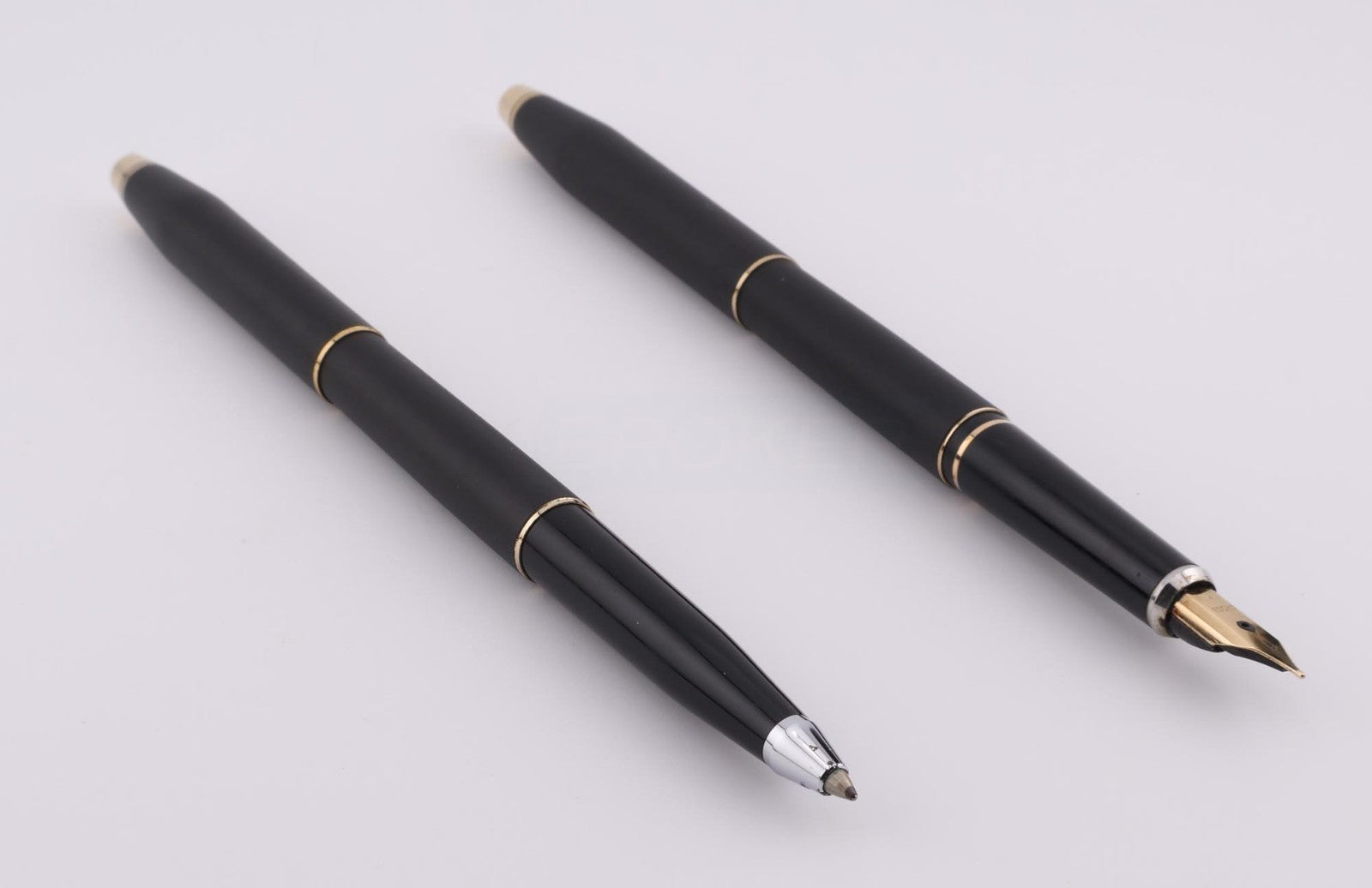 These pens and pencils are used. They show average signs of wear and tear including scuff marks, scratches, nicks, grime, and worn finishes. Please refer to the pictures to get a better idea of the physical condition. The rollerball pen cartridge is dry and needs replacement. The black and the gold ballpoint pens write and have ink inside the cartridges, but we're uncertain how much remains. Both the black and the gold pencils have lead inside and write, but no spare lead is included. The fountain pen does NOT have a cartridge. Any adjustments, inking, cleaning, and/or maintenance are the expense and responsibility of the new owner. All pictures included in this listing are of the actual item for sale.