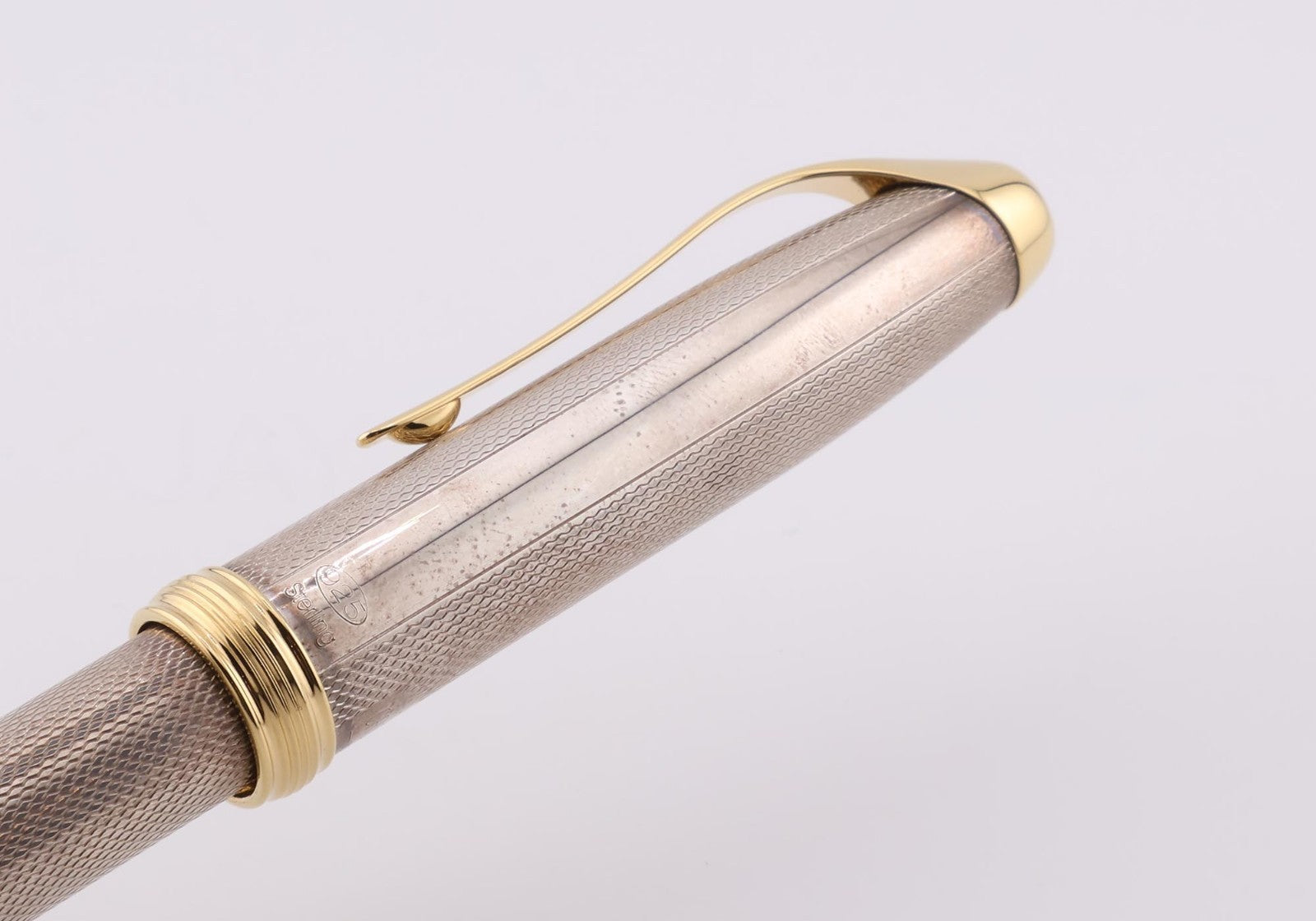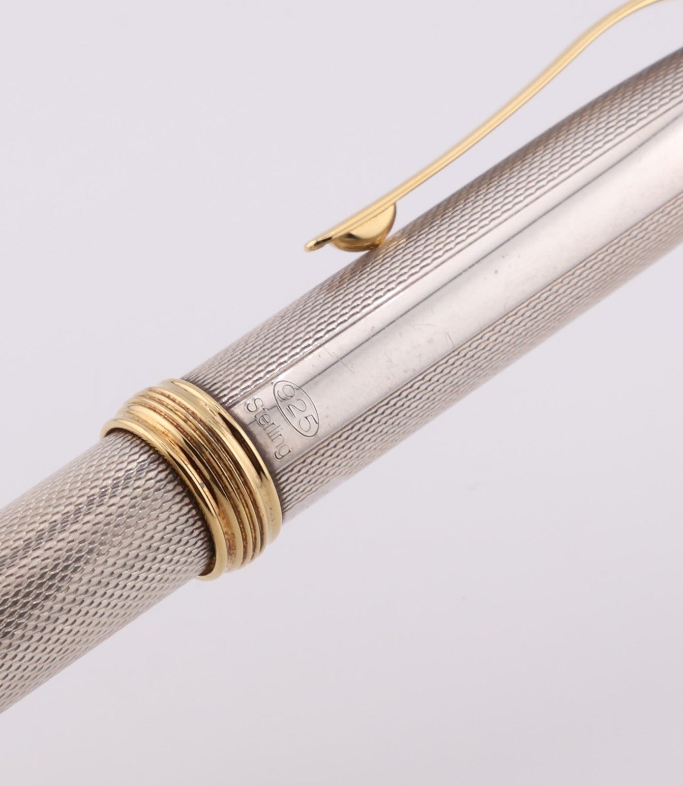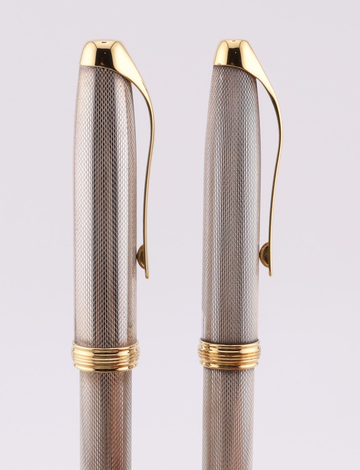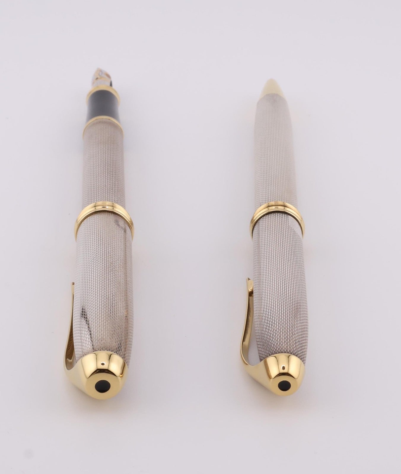 These pens are gently used. The pens shows minor signs of wear and tear including scuff marks and worn finishes. The silver is tarnished and discolored in places. Please refer to the pictures to get a better idea of the physical condition. The ballpoint pen works, but we're uncertain how much ink remains. We were unable to test the fountain pen. The display cases/boxes for both may not be original to the items. Any adjustments, inking, cleaning, and/or maintenance are the expense and responsibility of the new owner. All pictures included in this listing are of the actual item for sale.