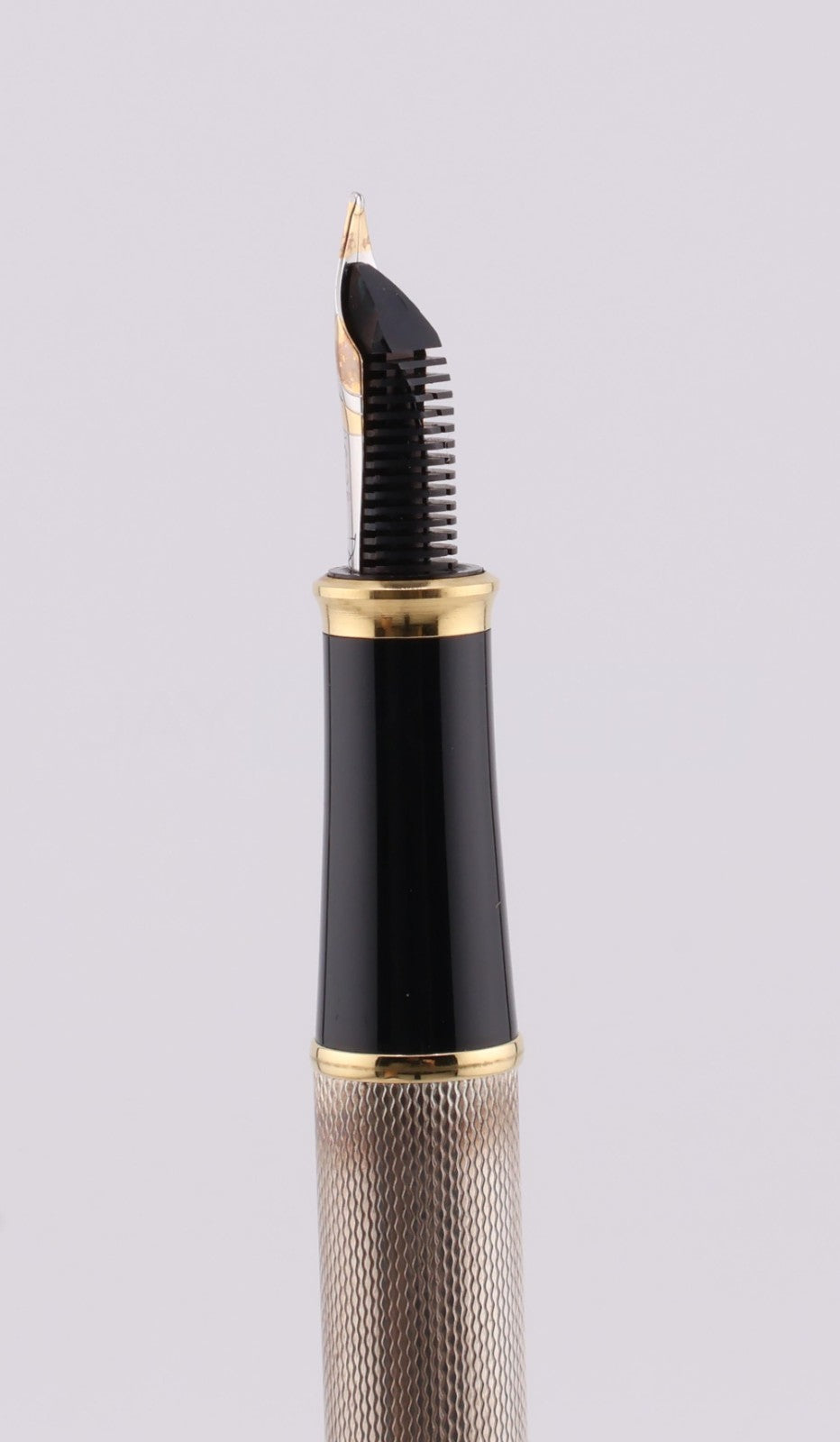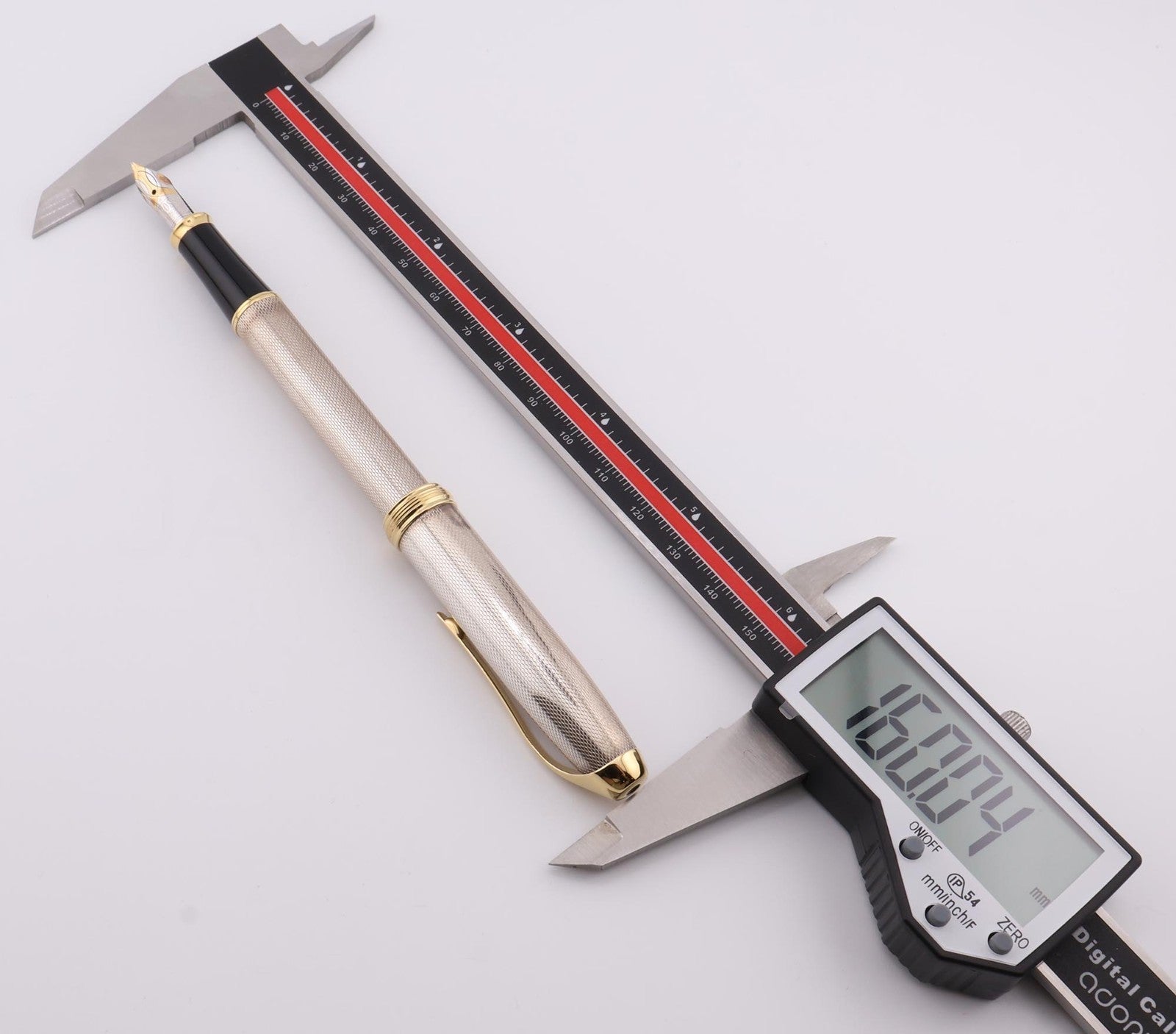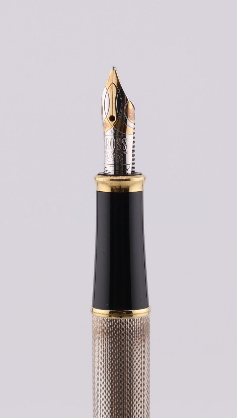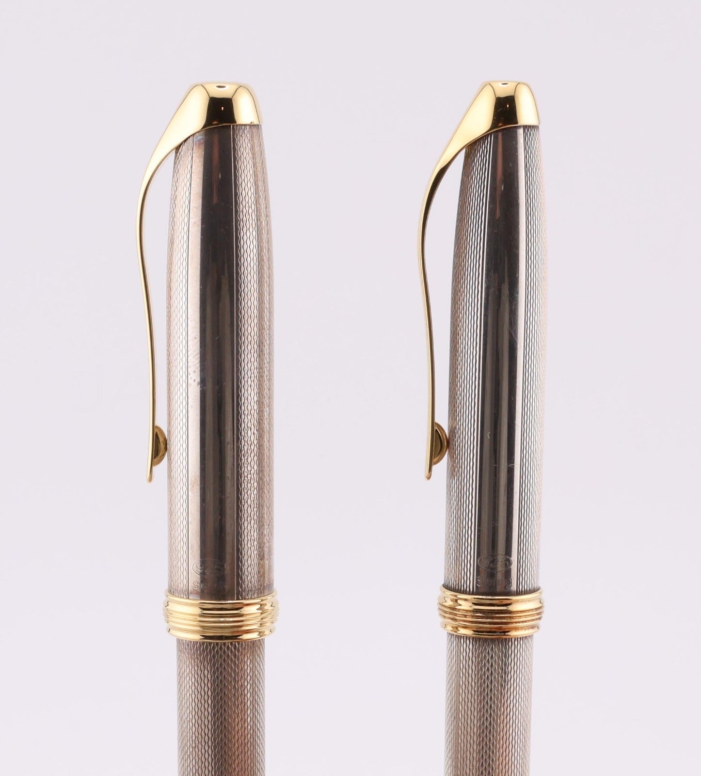 These pens are gently used. The pens shows minor signs of wear and tear including scuff marks and worn finishes. The silver is tarnished and discolored in places. Please refer to the pictures to get a better idea of the physical condition. The ballpoint pen works, but we're uncertain how much ink remains. We were unable to test the fountain pen. The display cases/boxes for both may not be original to the items. Any adjustments, inking, cleaning, and/or maintenance are the expense and responsibility of the new owner. All pictures included in this listing are of the actual item for sale.