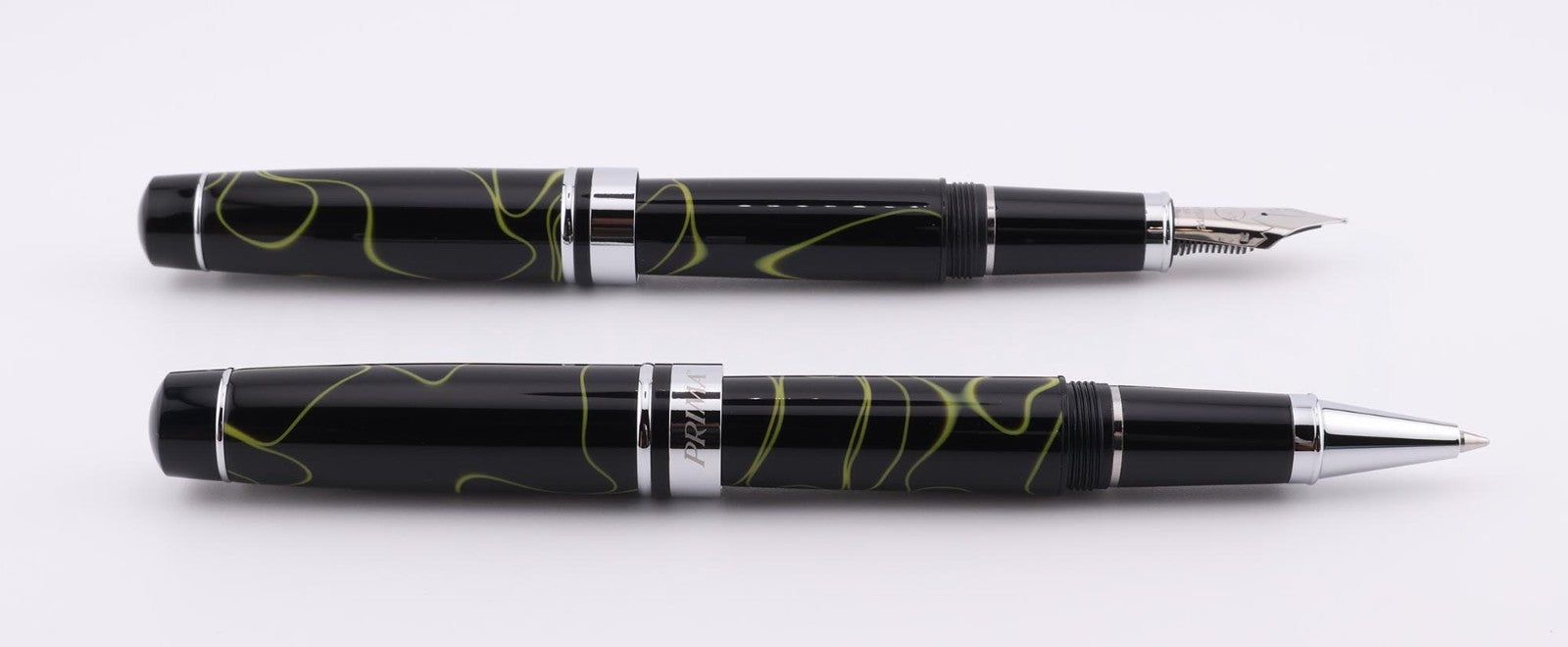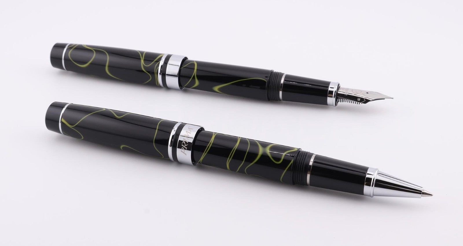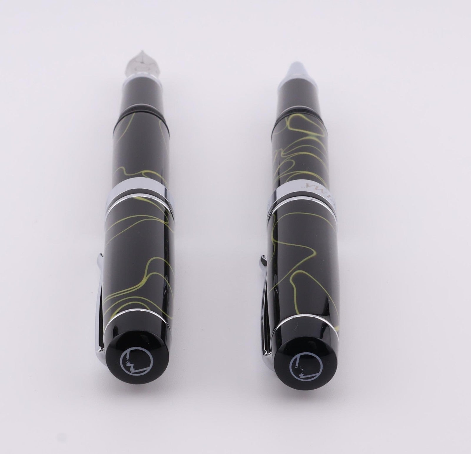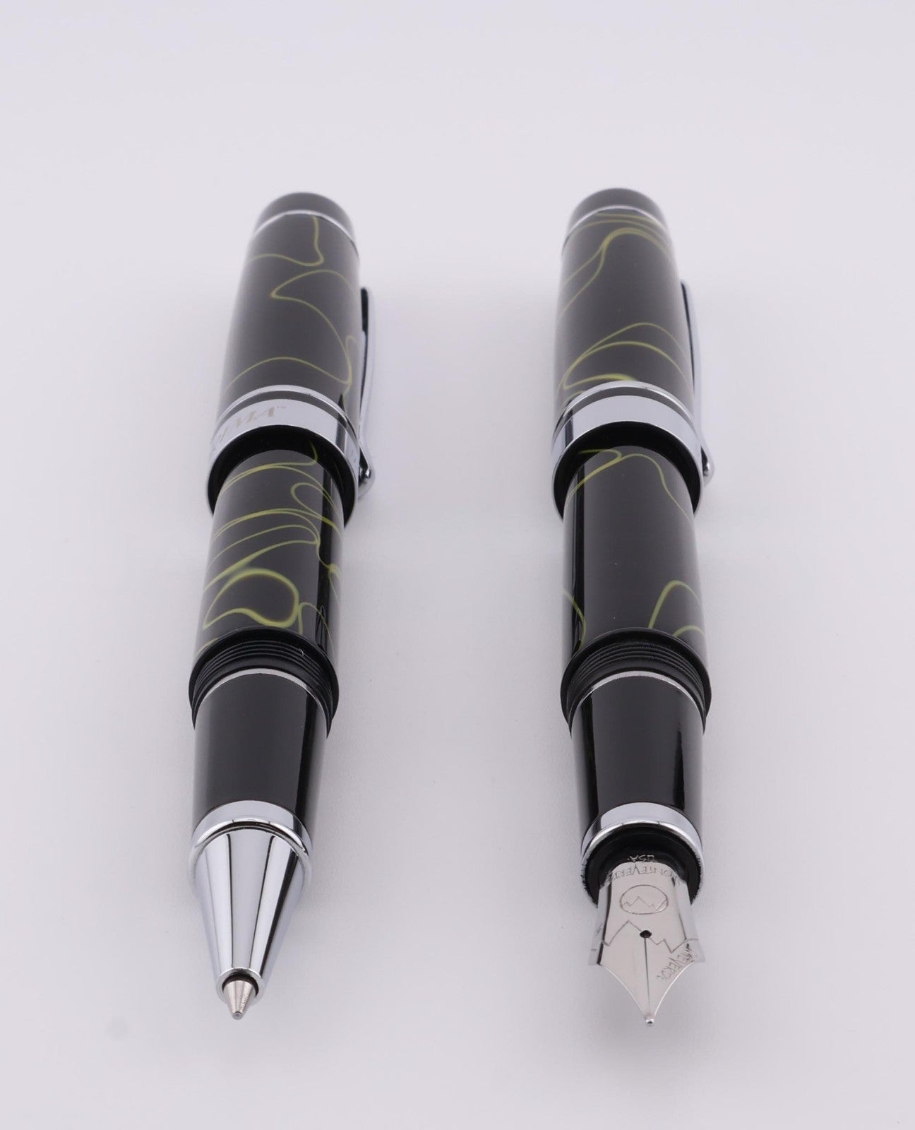 Monteverde Prima Black/Yellow Swirl Rollerball & Fountain Pen (M) Bundle