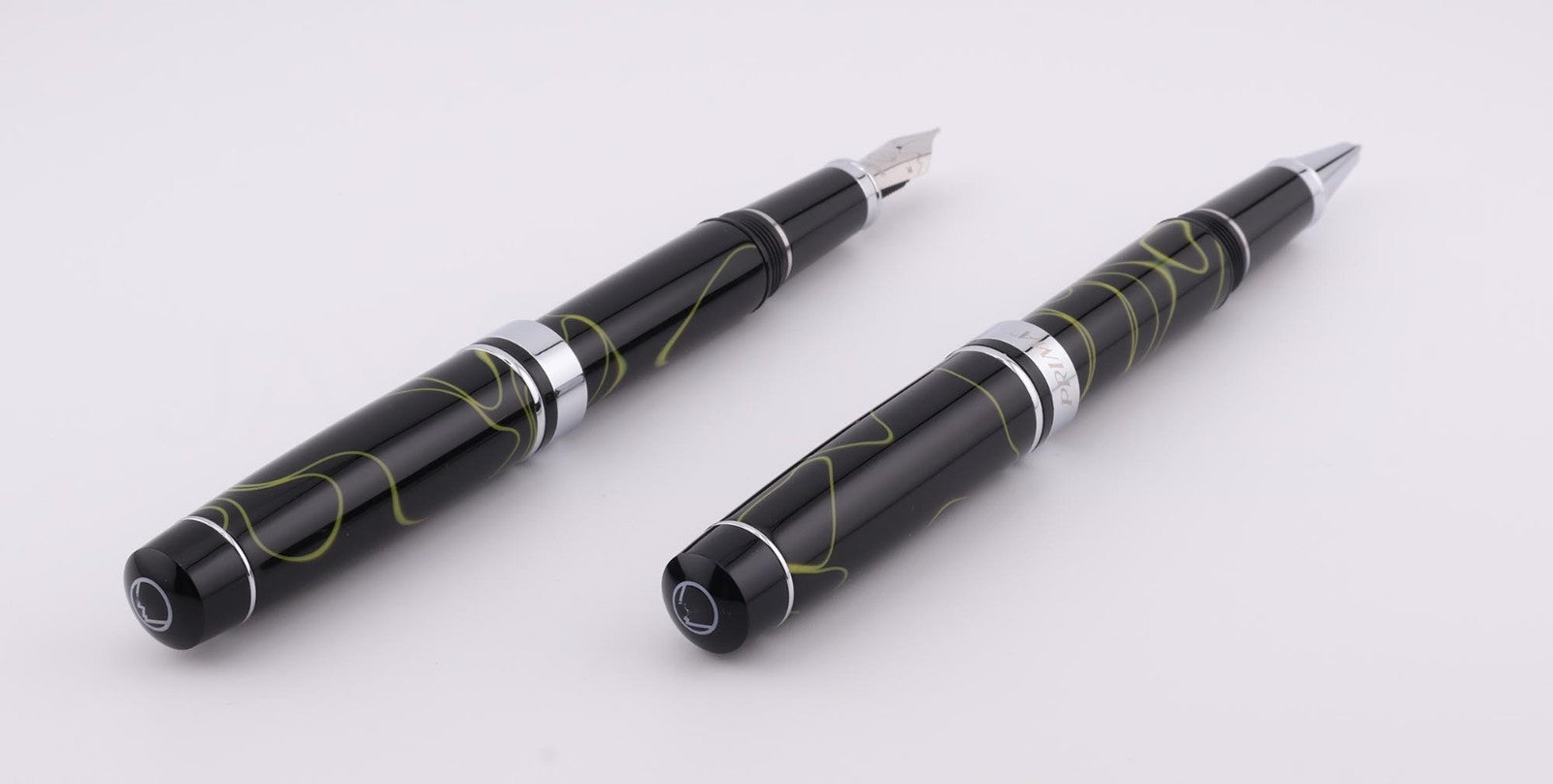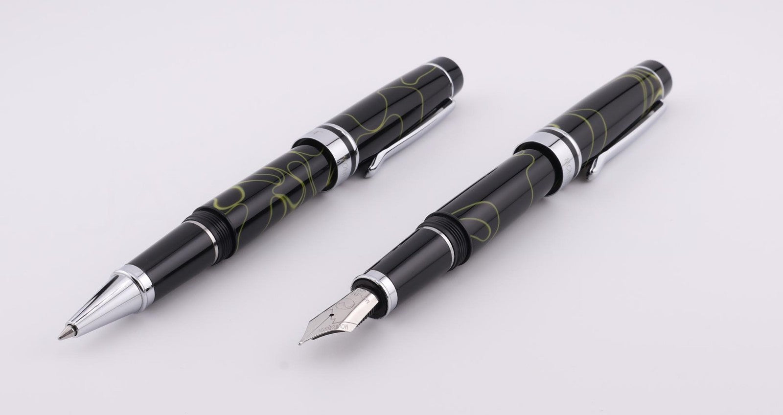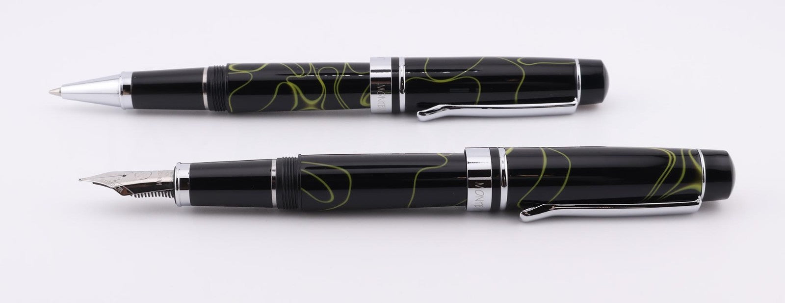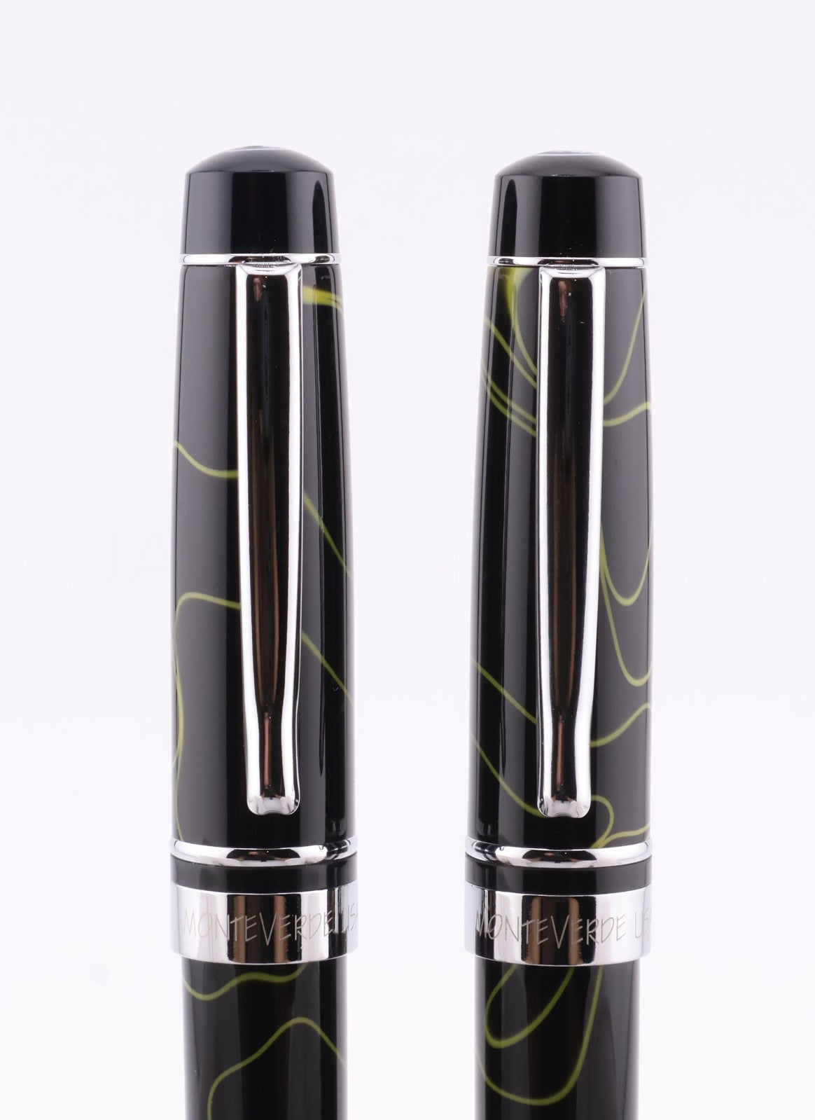 Monteverde Prima Black/Yellow Swirl Rollerball & Fountain Pen (M) Bundle