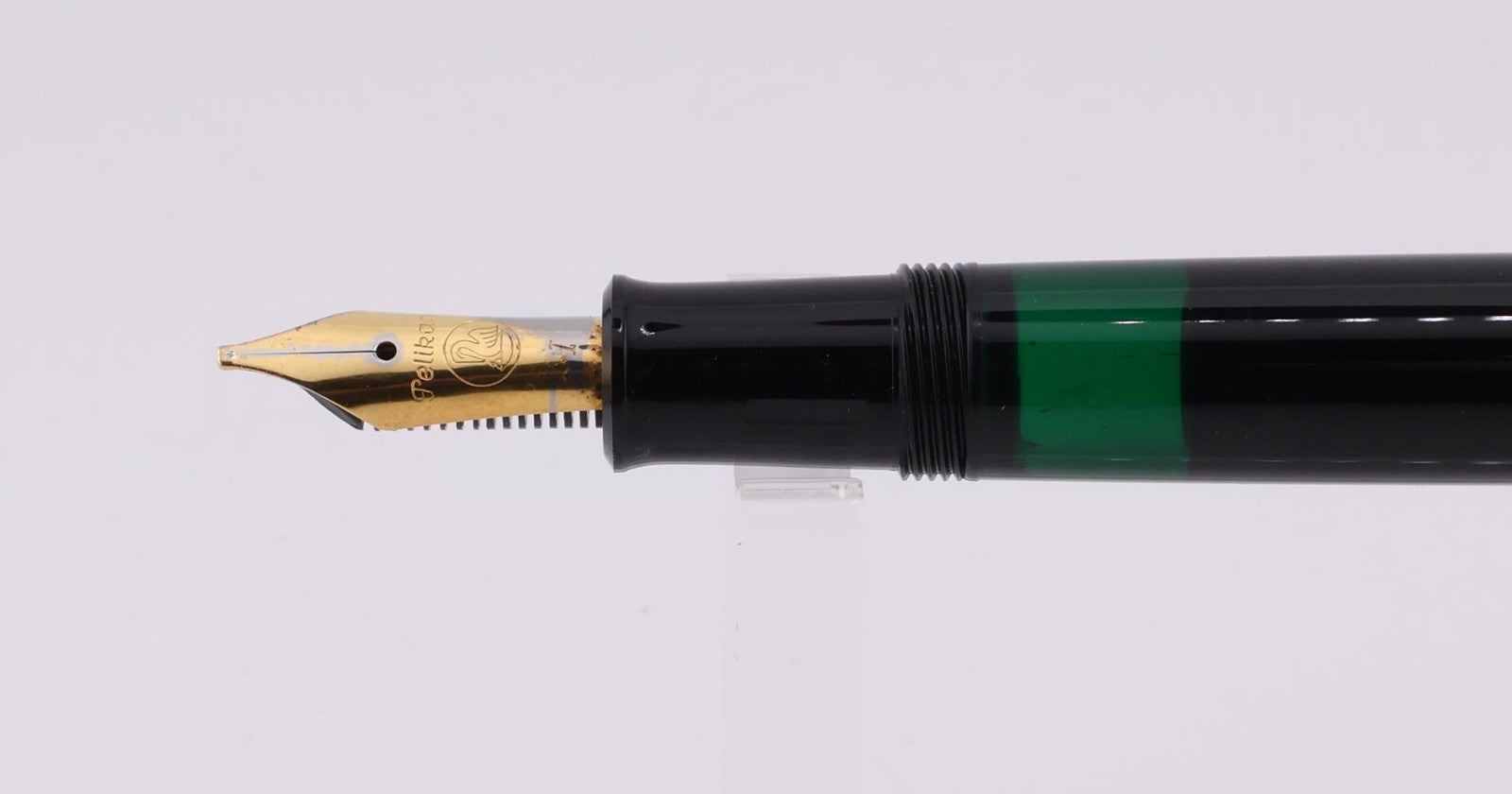 This pen is used. The pen shows average signs of wear and tear including scuff marks, scrapes, scratches, nicks, and worn finishes. The gold plating on the nib is wearing off. Please refer to the pictures to get a better idea of the physical condition. We tested the fountain pen by drawing in test water and expelling it. The piston is a bit stiff to turn, but it works. Any adjustments, inking, cleaning, and/or maintenance are the expense and responsibility of the new owner. All pictures included in this listing are of the actual item for sale.
