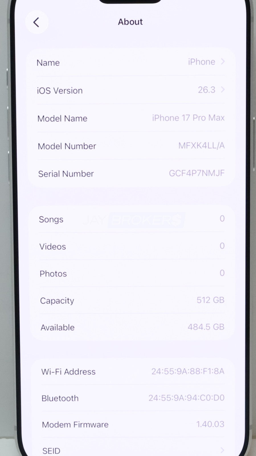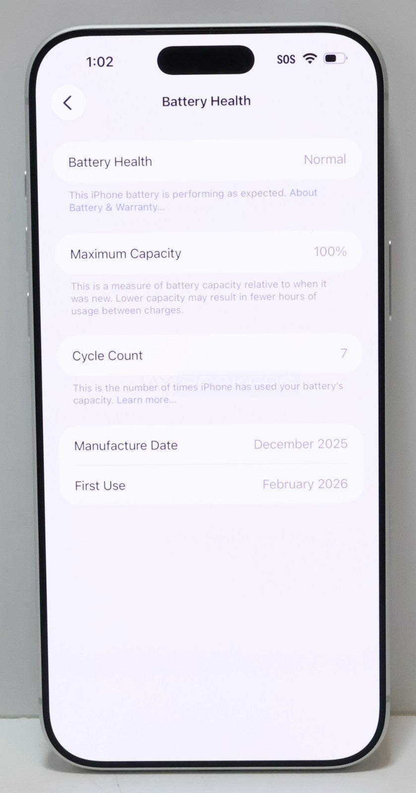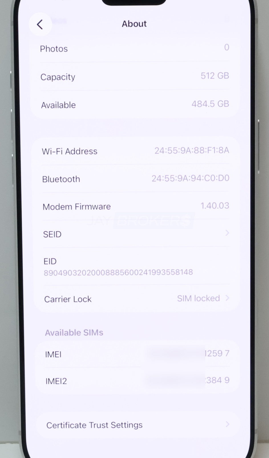 This item is very gently used. If you look closely, you will find extremely minor signs of wear and tear. Please refer to the pictures to get a better idea of the physical condition. The battery holds a solid charge (07 cycle count). The item has been tested and is fully functional. All pictures included in this listing are of the actual item for sale. The IMEI (***********2598) has been verified with Verizon as of 03/03/2026 and is not reported lost or stolen. It is ready for activation to another Verizon account. The new owner may need a compatible Verizon eSIM. This device is locked to Verizon. Jay Brokers does not guarantee the outcome of unlocking attempts or unlocking eligibility.
