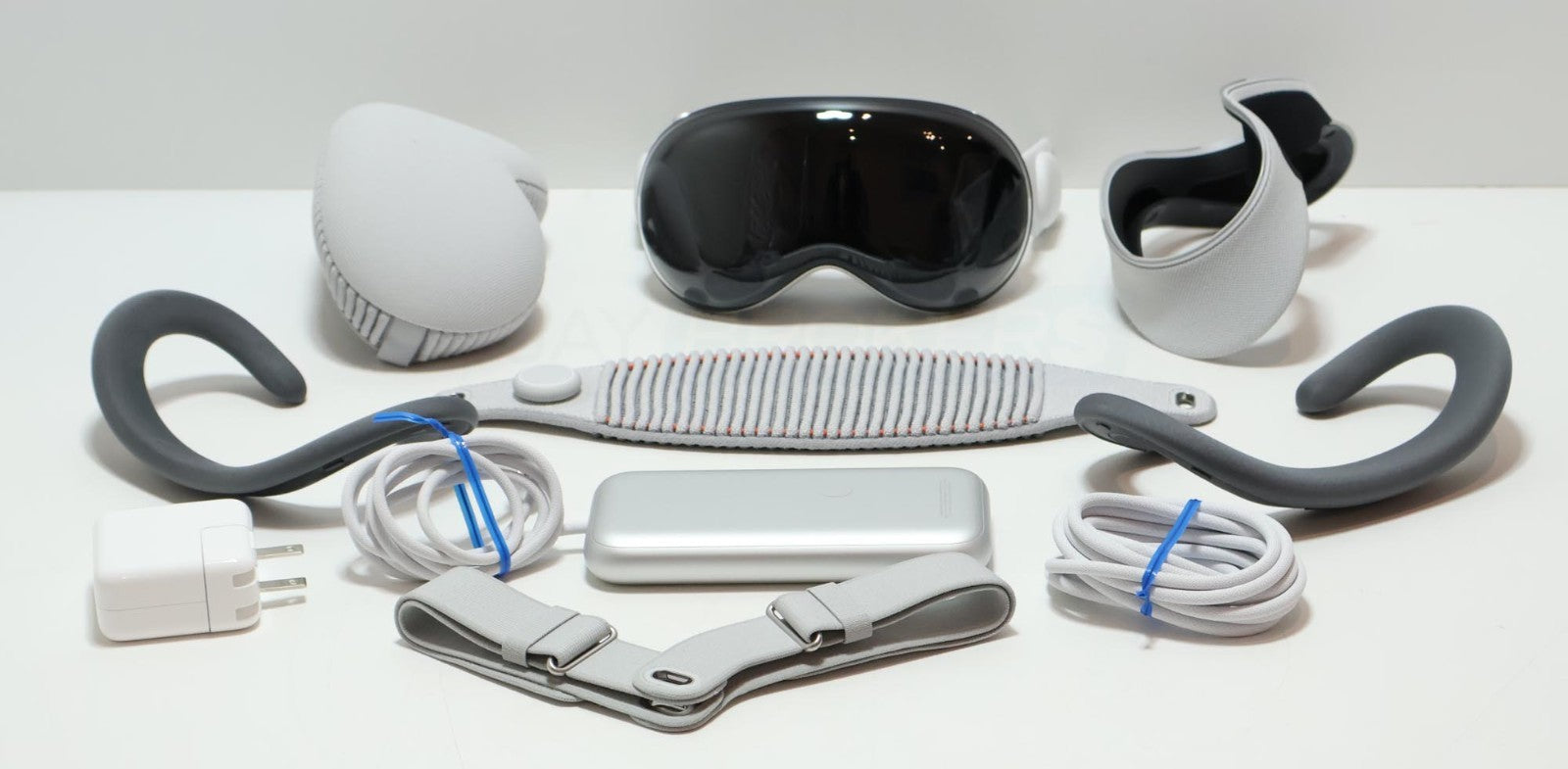 Includes: Apple Vision Pro, 23W Light Seal, W and W+ Light Seal Cushions, M Solo Knit Band, M Dual Loop Band, Battery, Cover, 30W USB-C Power Adapter, USB-C Charging Cable, Documentation, Original Box
