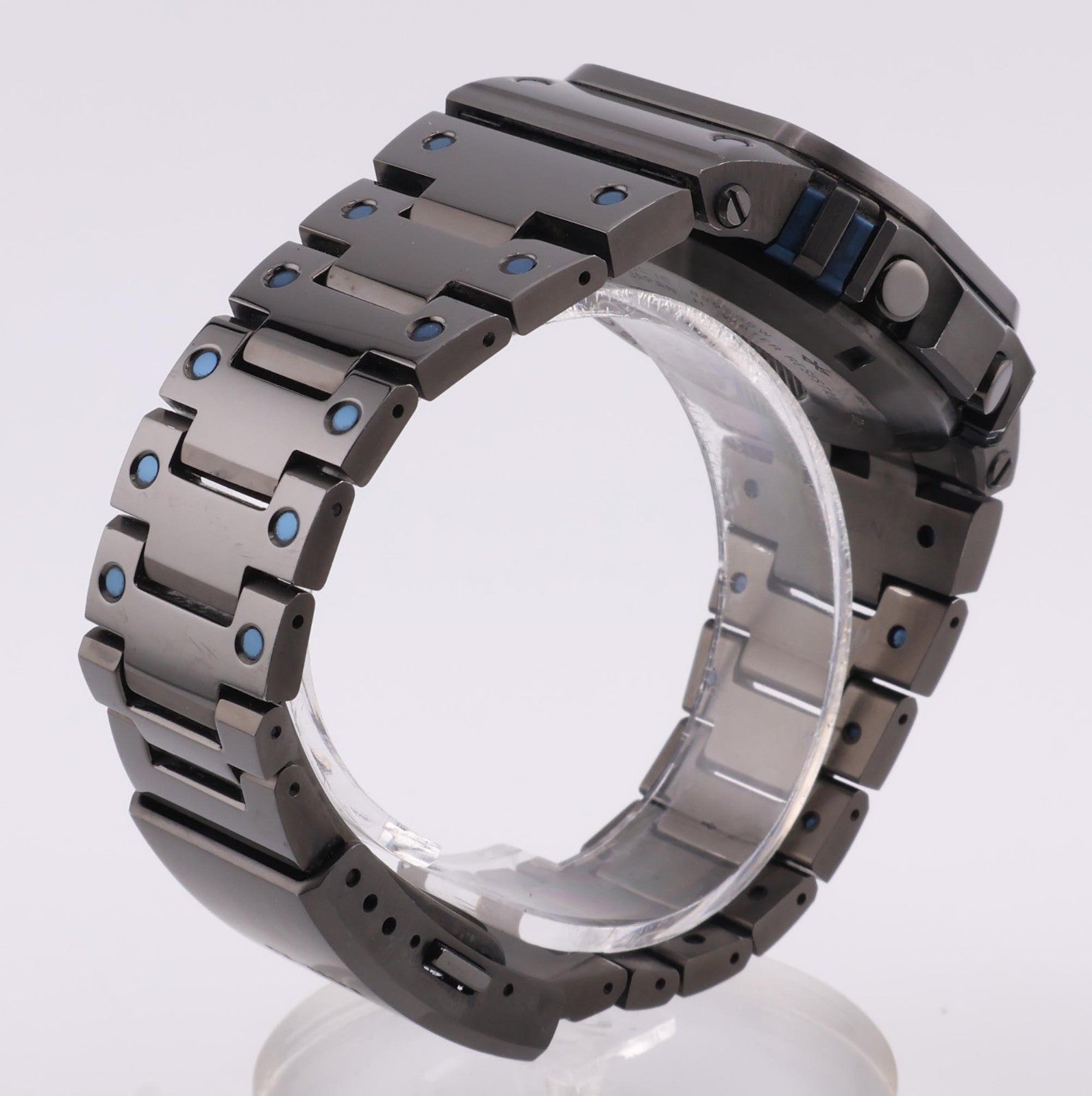 This item is gently used. The item shows minor to average signs of wear and tear including scuff marks and worn finishes. Upon close inspection, some of the links have worn finishes showing the underlying metal near the hinge/pin points. Please refer to the pictures to get a better idea of the physical condition. The band should accommodate a wrist circumference of approximately 7 inches. The item has been tested and is fully functional. Any adjustments, re-sizing, calibration, and/or maintenance are the full expense of the new owner.