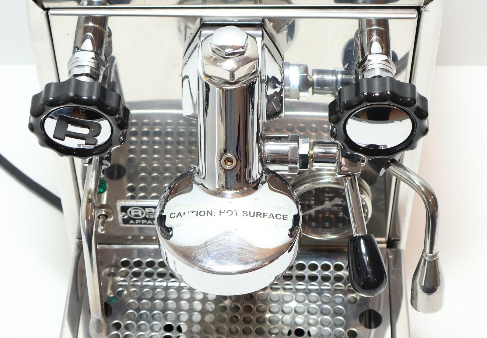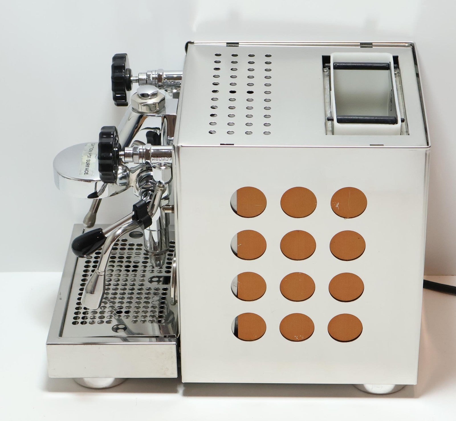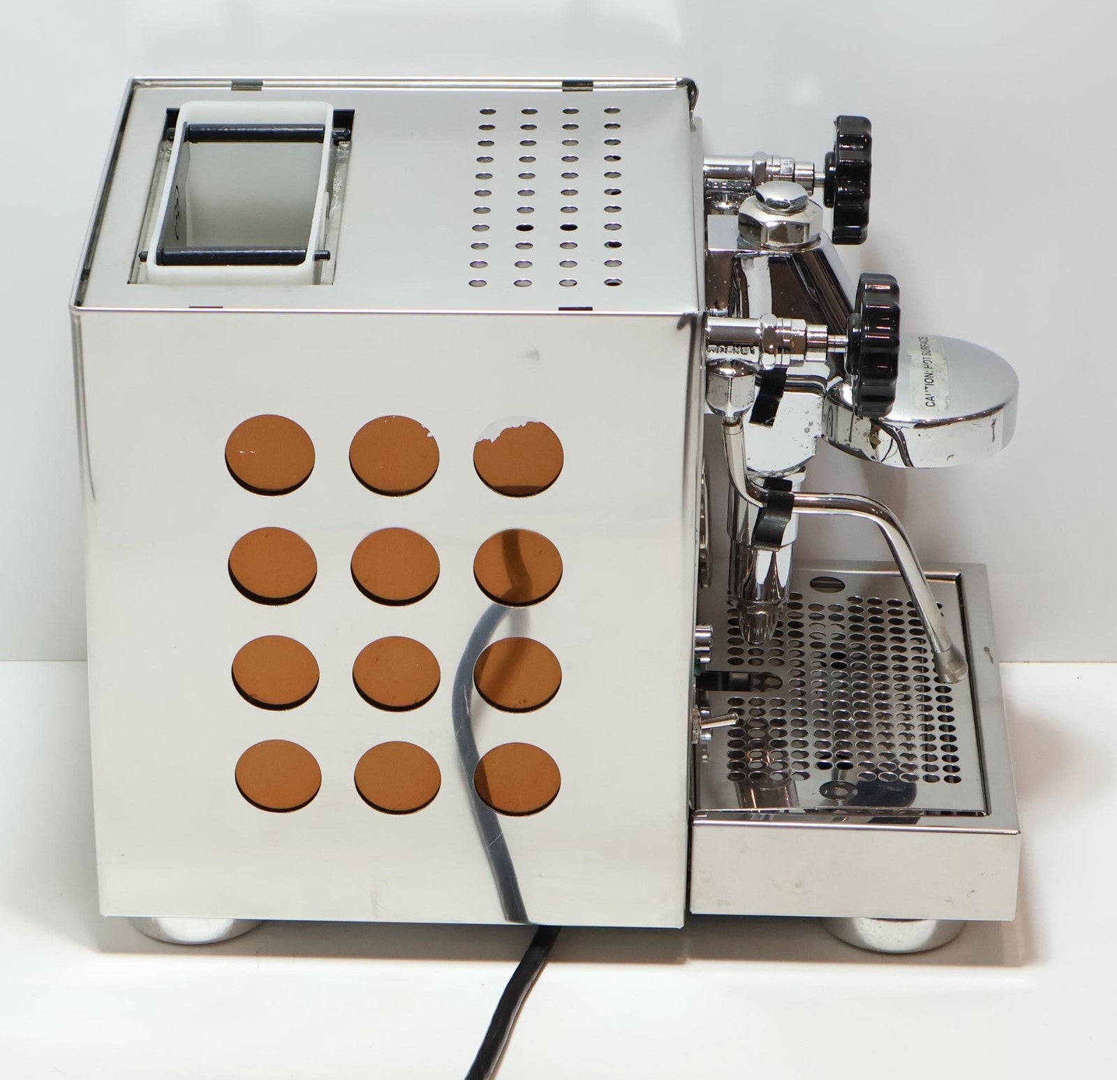 This item is used with cited defects. Please read the entire listing carefully before purchasing. The item shows average to moderate signs of wear and tear including scuff marks, scratches, nicks, dings/dents, slight hard water stains, and worn finishes. In our opinion the front drip tray isn't perfectly square to the base. Please refer to the pictures to get a better idea of the physical condition. In terms of functionality, when powered on with water in reservoir the main LED turns green and the pump cycles on. Within a minute or so the pump cycled off and the boiler continued to heat up. Within under 10 minutes we heard a hissing sound and saw steam coming from the top. The hissing continued for as along as we tested it (see test video). We suspect the hissing indicates there is a leak that is preventing the unit from being fully pressurized as the pressure gauge would seldom get over 0.5 bar. We ran a test shot along with the steam wand, which both were quite weak. The hot water only dripped. After testing it we did notice some puddles on the counter around it at the base. Again, see the test video for an actual demonstration of it, but at minimum it seems something is leaking internally. Thus, the unit will require parts and repair. Do not purchase unless you're fully willing to invest the time and money necessary to fix it. Any cleaning, sanitizing, setup, repair, and/or maintenance are the full expense of the new owner. What you see is what you get, so be sure to inspect the picture carefully. The item is sold AS IS with the cited defects.