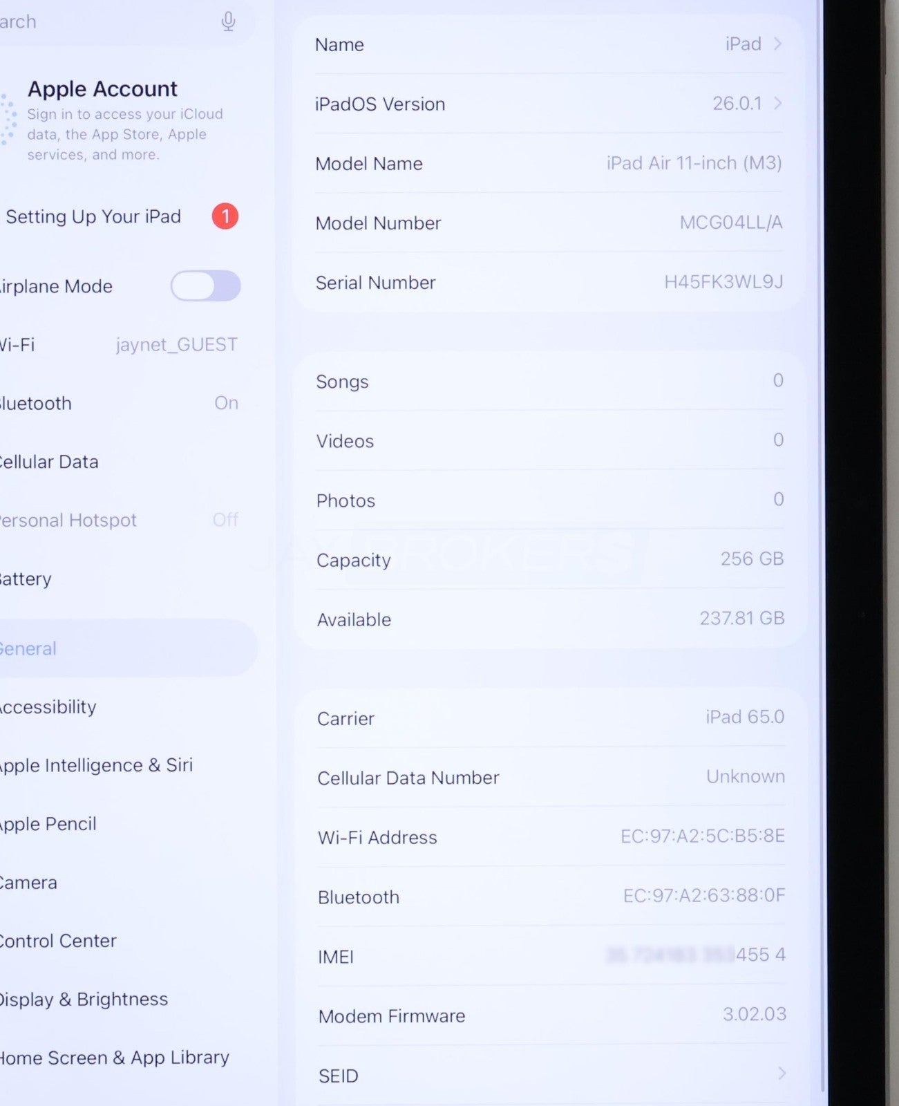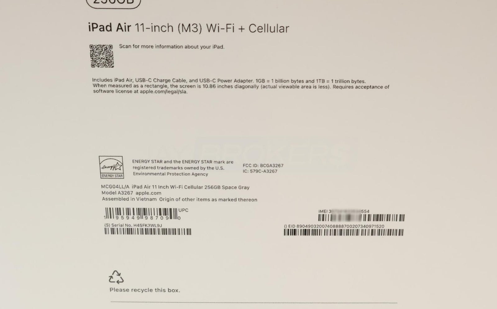 Apple iPad Air 7 M3 256GB Wi-Fi + Cellular 11" MCG04LL/A Space Gray