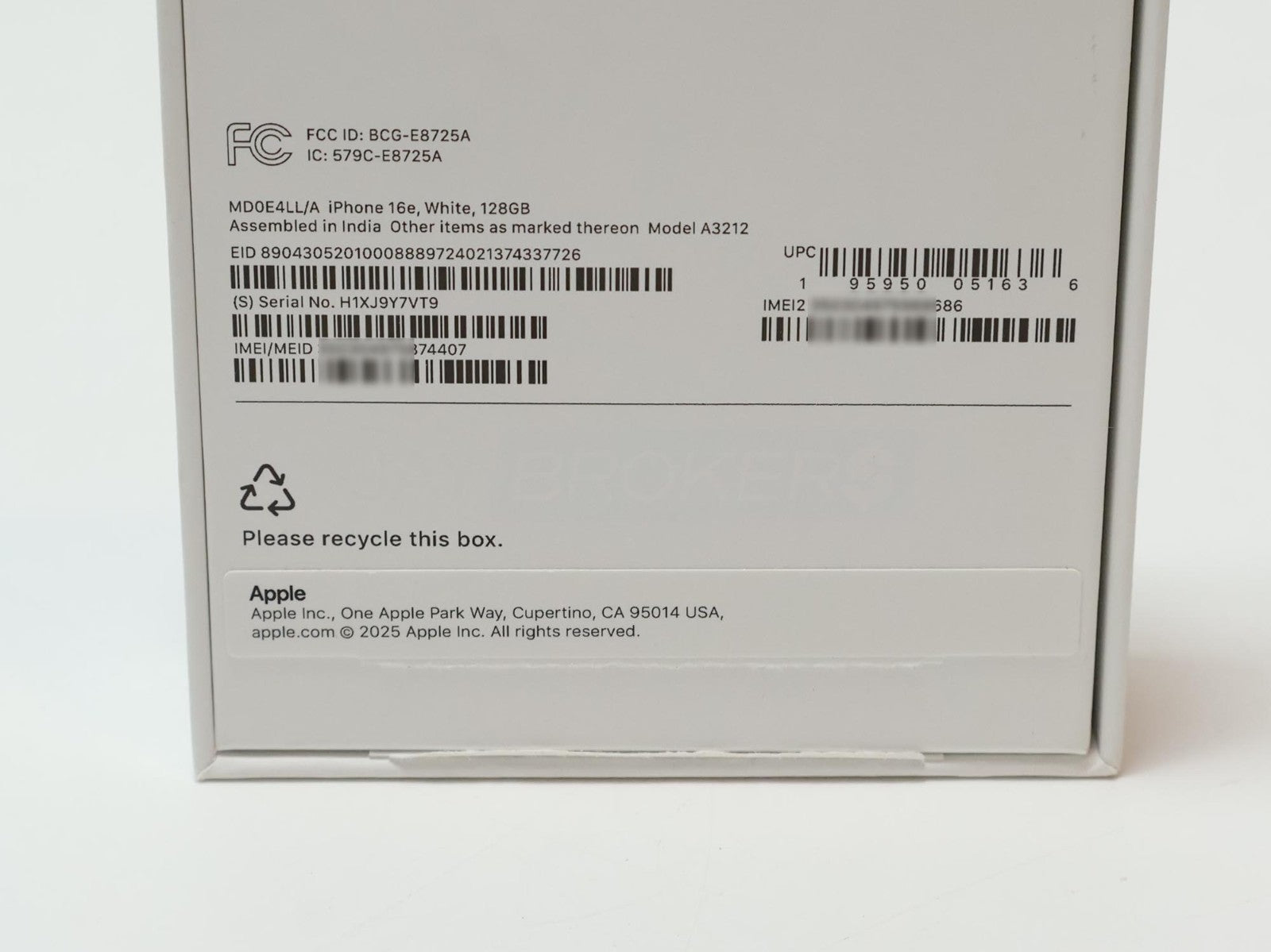 Apple iPhone 16e 128GB (Unlocked) 6.1" MD0E4LL/A White Preowned