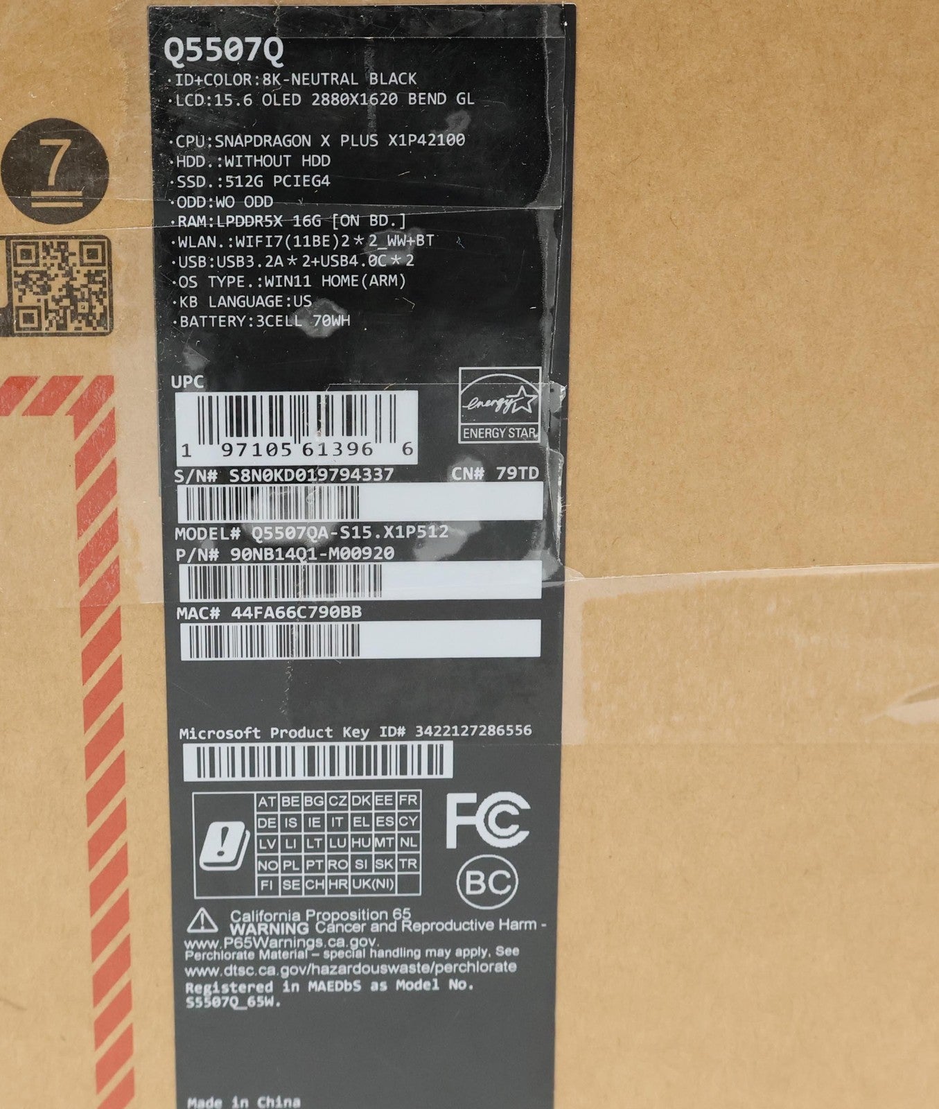 ASUS Vivobook S Q5507Q S15 Snapdragon X Plus X1P42100 16GB 512GB 15.6"
