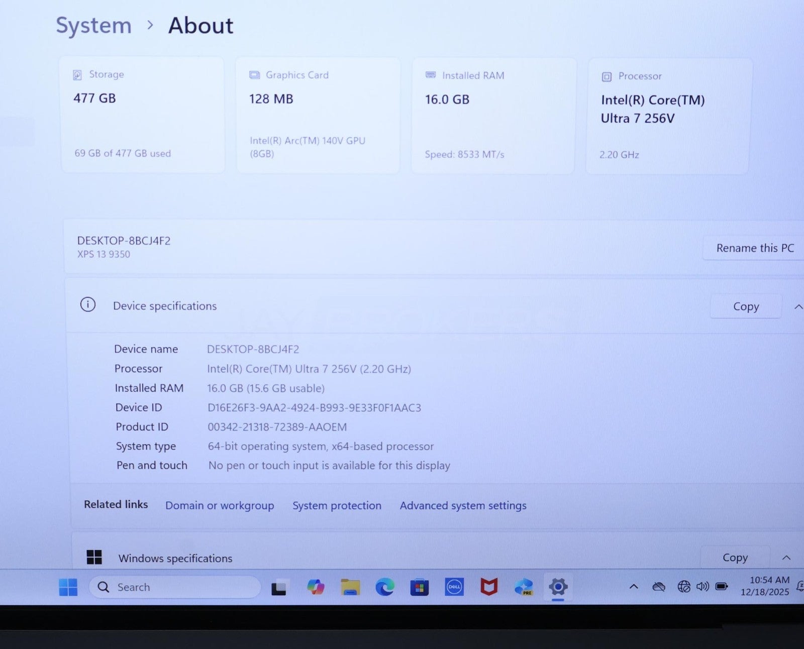 Dell XPS 13 9350 Core Ultra 7 256V 16GB 512GB Arc 140V 13.4" P151G003 W11H