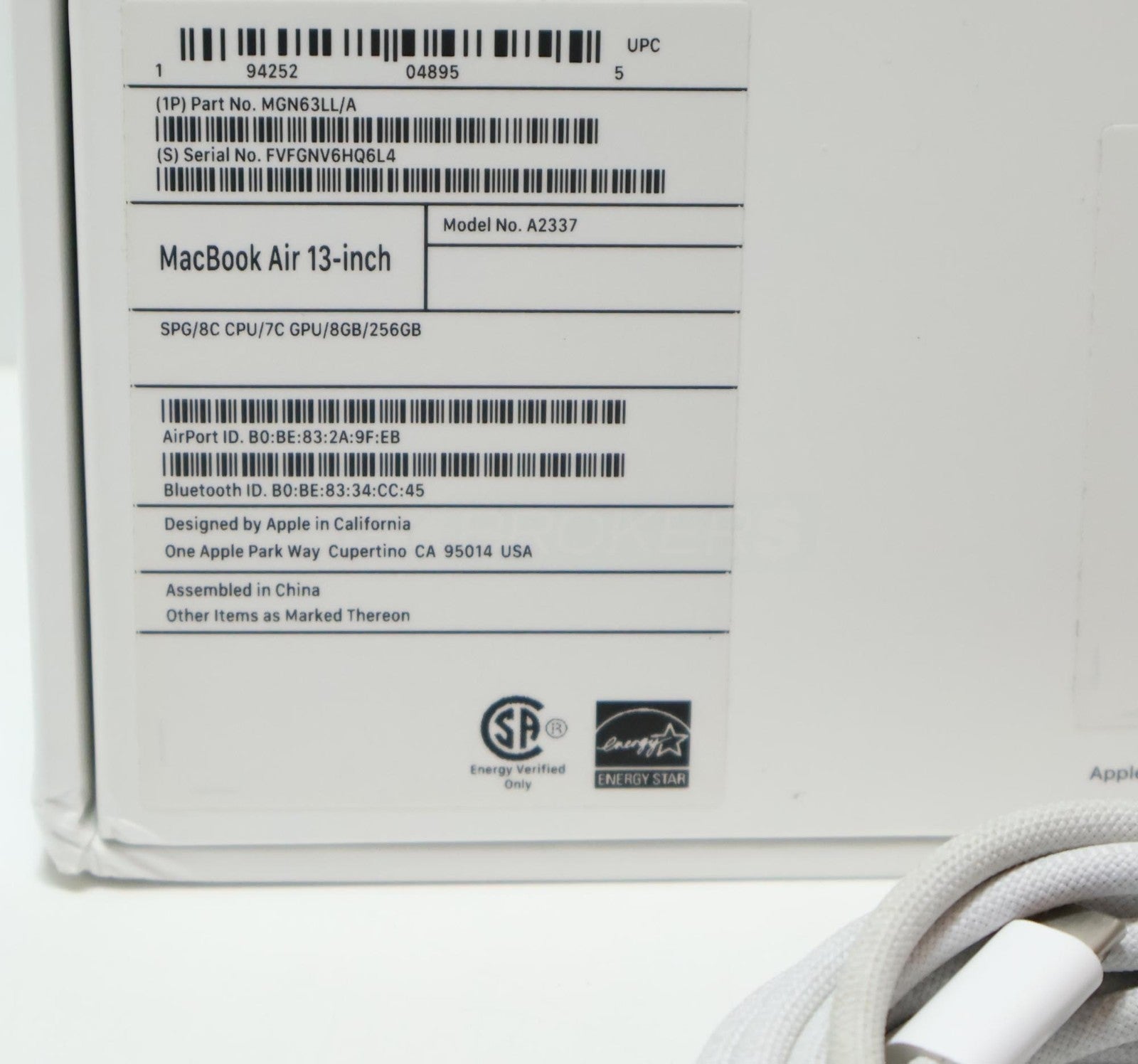 Includes: MacBook, 35W USB-C Power Adapter, USB-C to USB-C Cable, Original Box