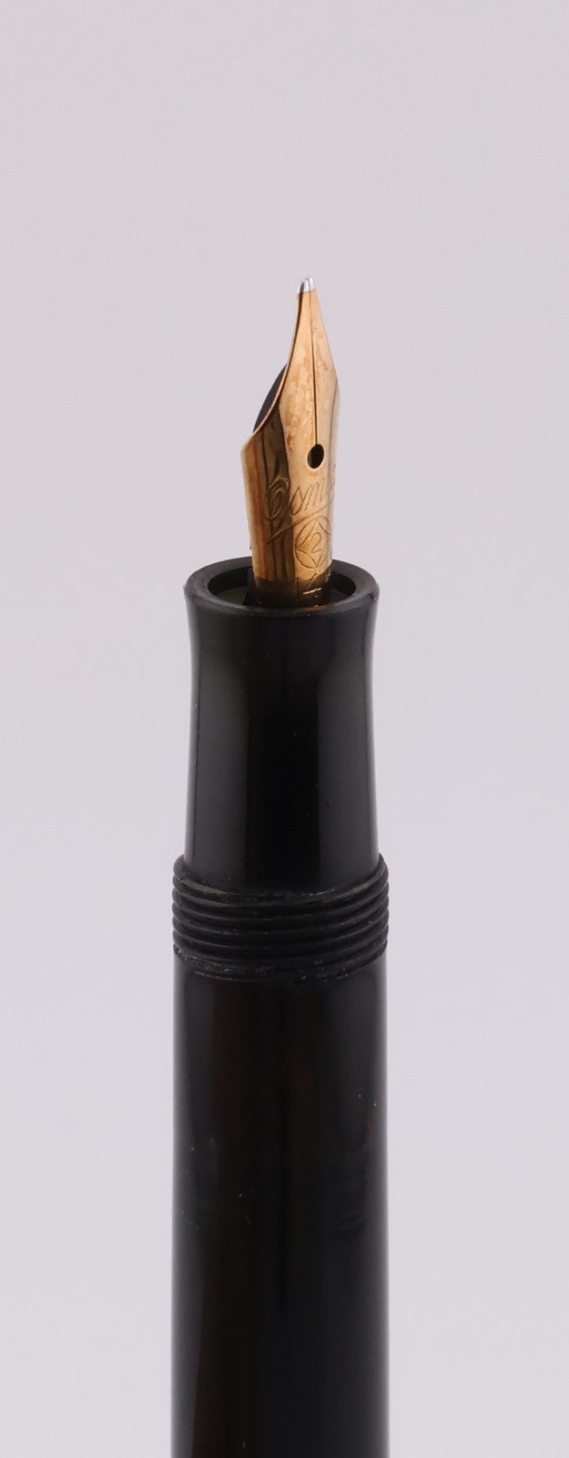 This pen is used. The pen shows average to moderate signs of wear and tear commensurate with age including scuff marks, scratches, nicks, and worn finishes. The pen is missing the cap for the plunger. The plunger is very stiff and because of it the pen has a hard time sucking in test water (likely dried out). The white impression for several of the engravings is fading and the letters are harder to read. The box is old and the print is fading. Please refer to the pictures to get a better idea of the physical condition. The outer box may not be original to the item. Any adjustments, inking, cleaning, and/or maintenance are the expense and responsibility of the new owner. All pictures included in this listing are of the actual item for sale.