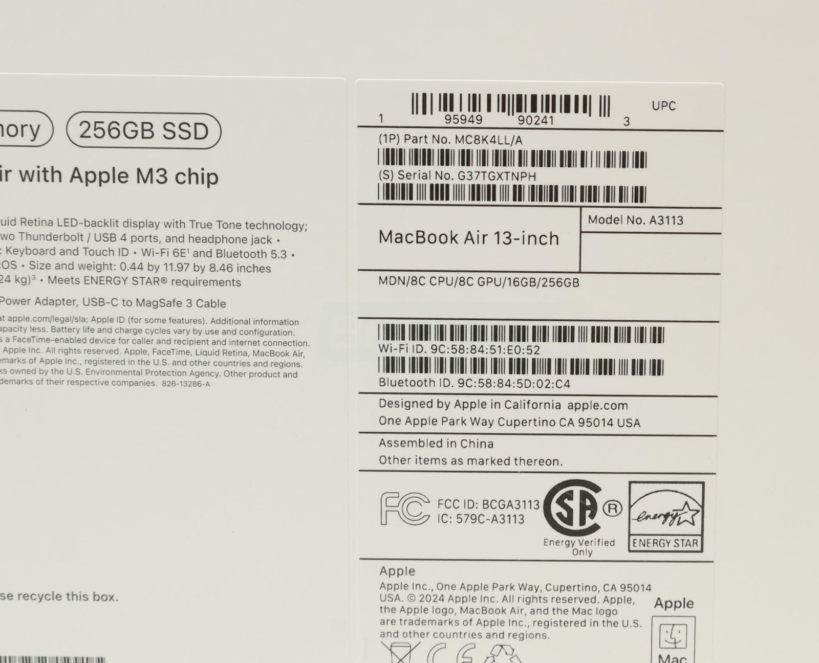 Apple MacBook Air M3 8Core 16GB 256GB 13.6" MC8K4LL/A Midnight