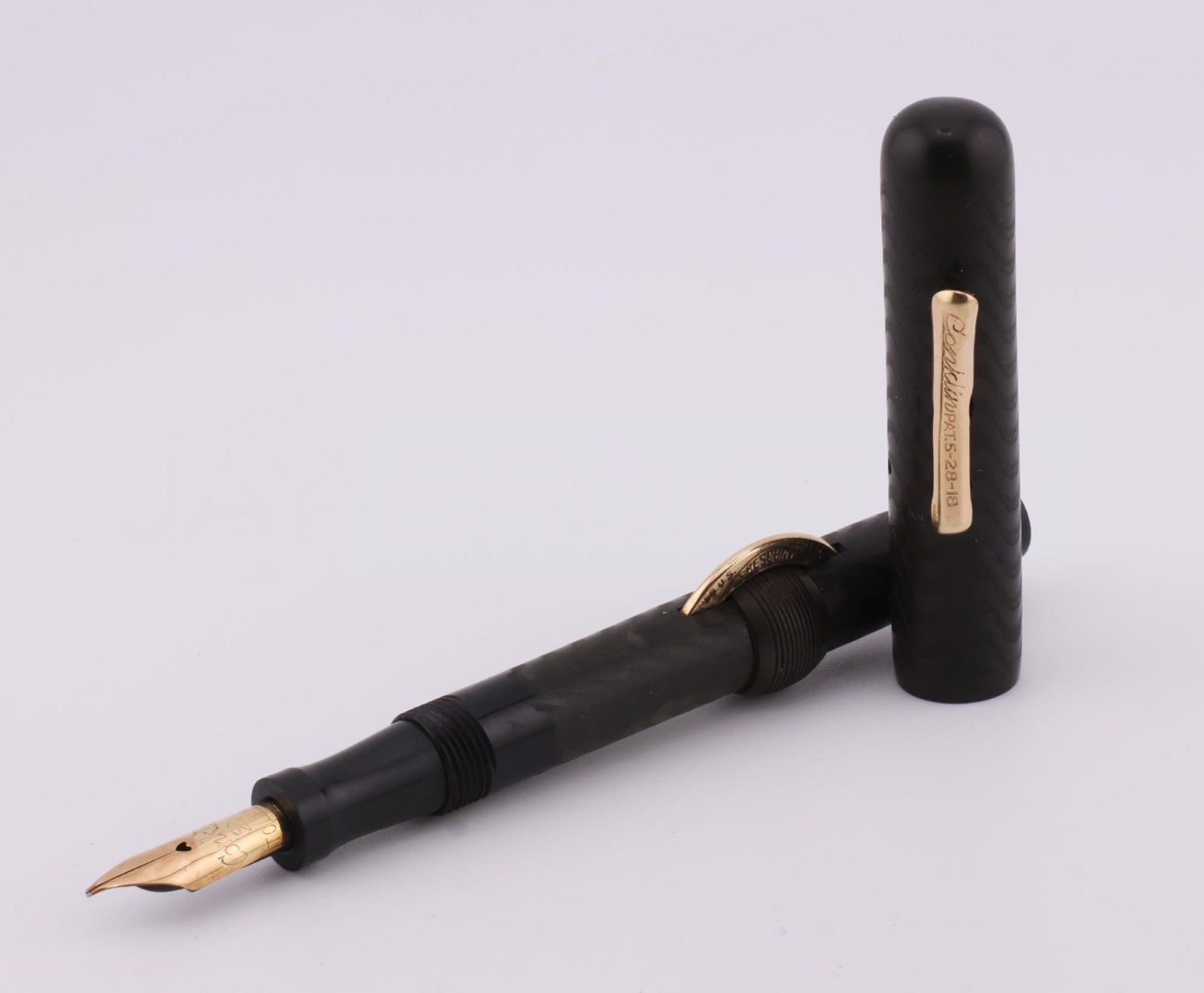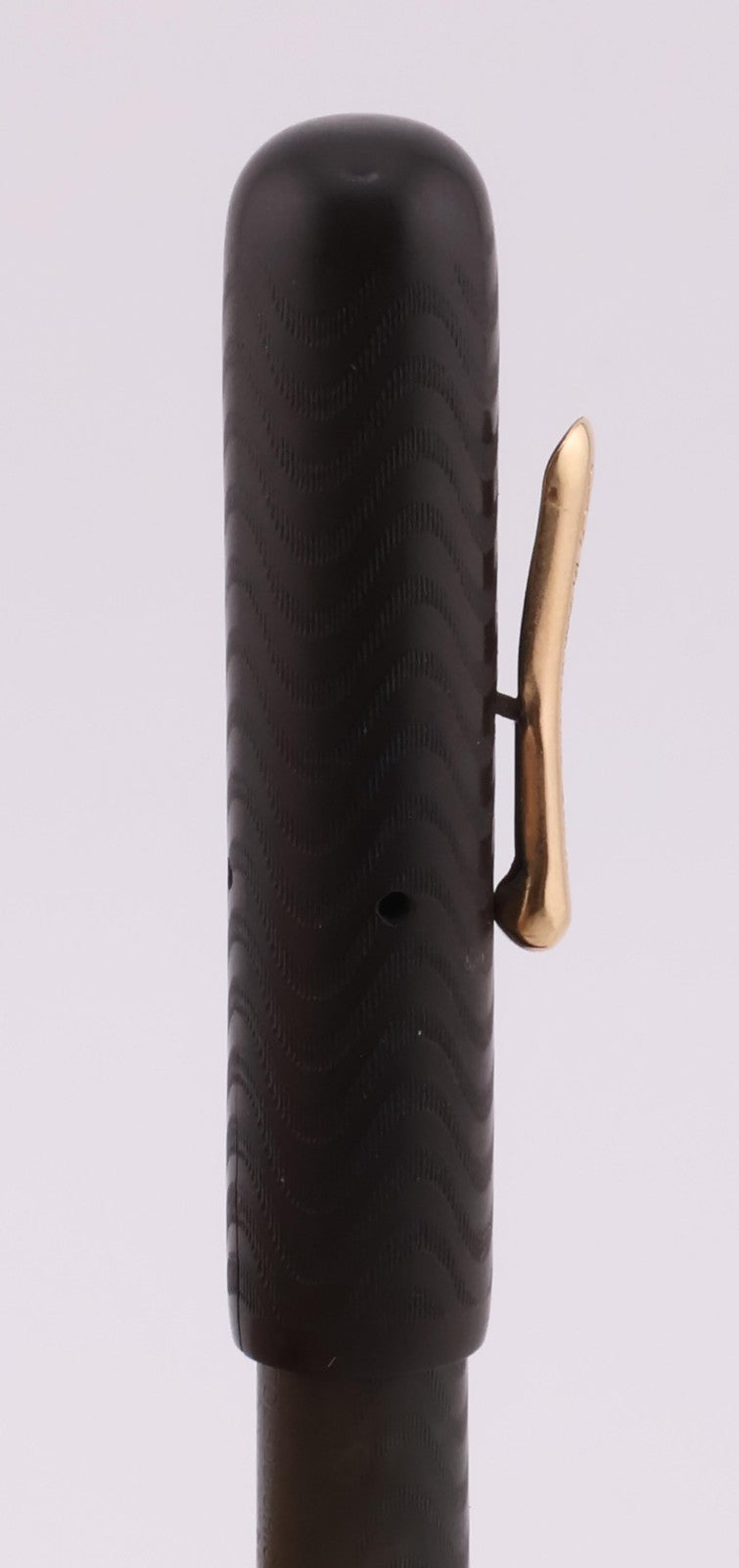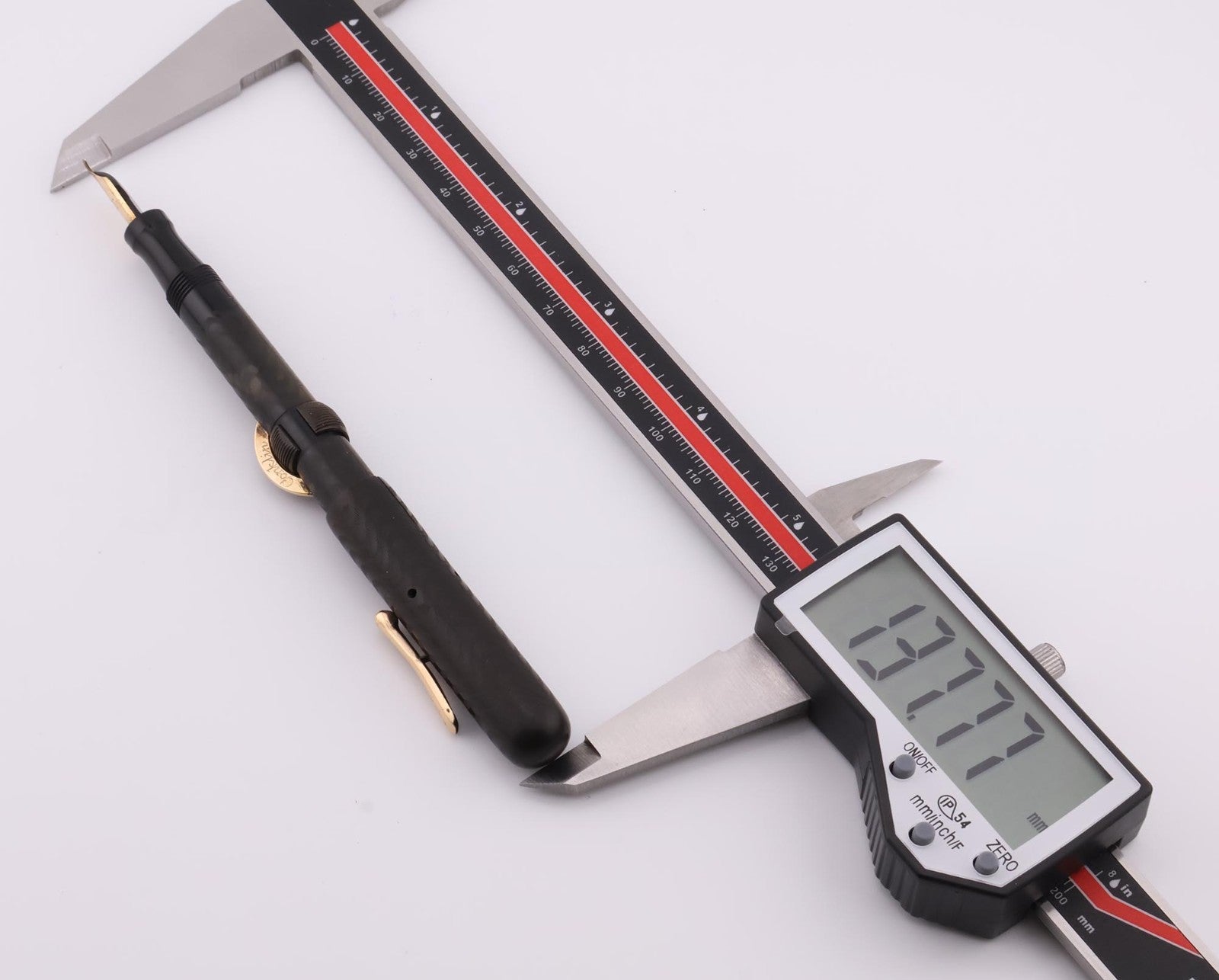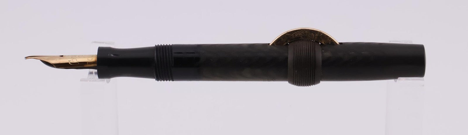 This pen is used. The pen shows average signs of wear and tear including scuff marks, scratches, nicks, and worn finishes. There is a crack on the cap. The gold finish on this item is discolored in several areas particularly on the nib. The mechanism used to lock the plunger in place can sometimes get stuck in place. Please refer to the pictures to get a better idea of the physical condition. Any adjustments, inking, cleaning, and/or maintenance are the expense and responsibility of the new owner. All pictures included in this listing are of the actual item for sale.