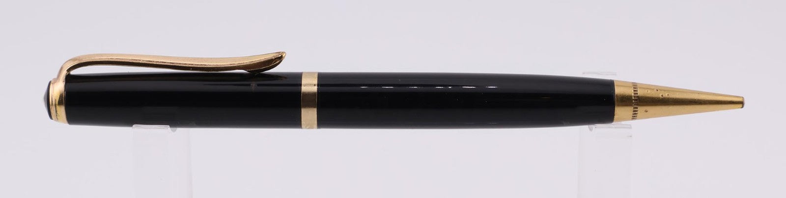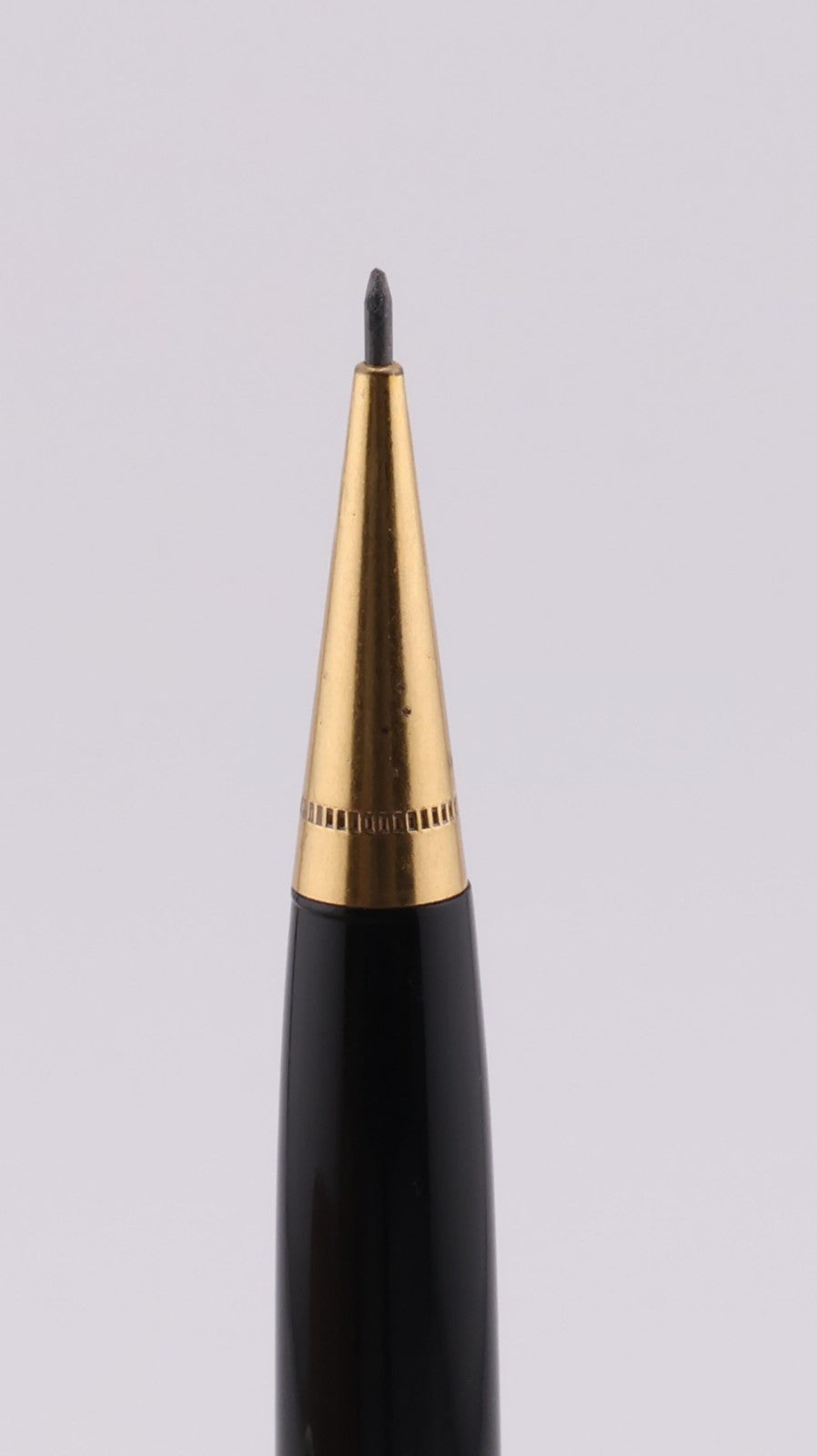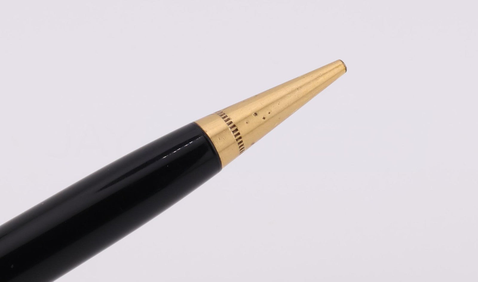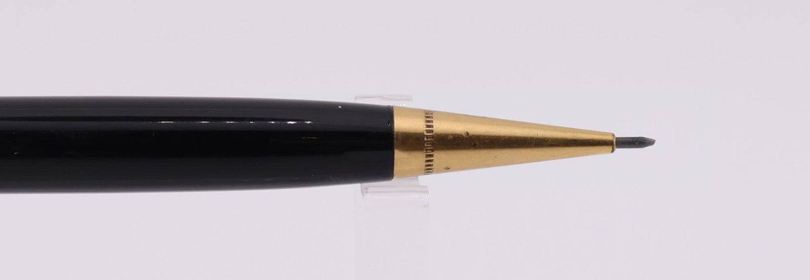 This pencil is used. The pencil shows average signs of wear and tear including scuff marks, scratches, nicks, and worn finishes. The gold finish is slightly discolored in several places. We got the pencil to successfully eject and insert lead. Please refer to the pictures to get a better idea of the physical condition. The outer box may not be original to the item. Any adjustments, re-leading, cleaning, and/or maintenance are the expense and responsibility of the new owner. All pictures included in this listing are of the actual item for sale.