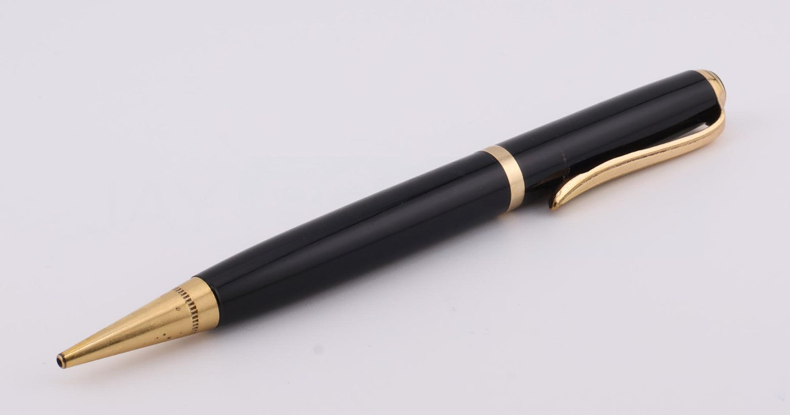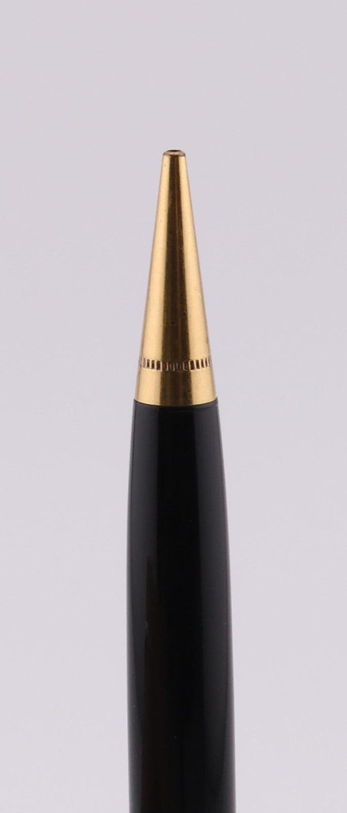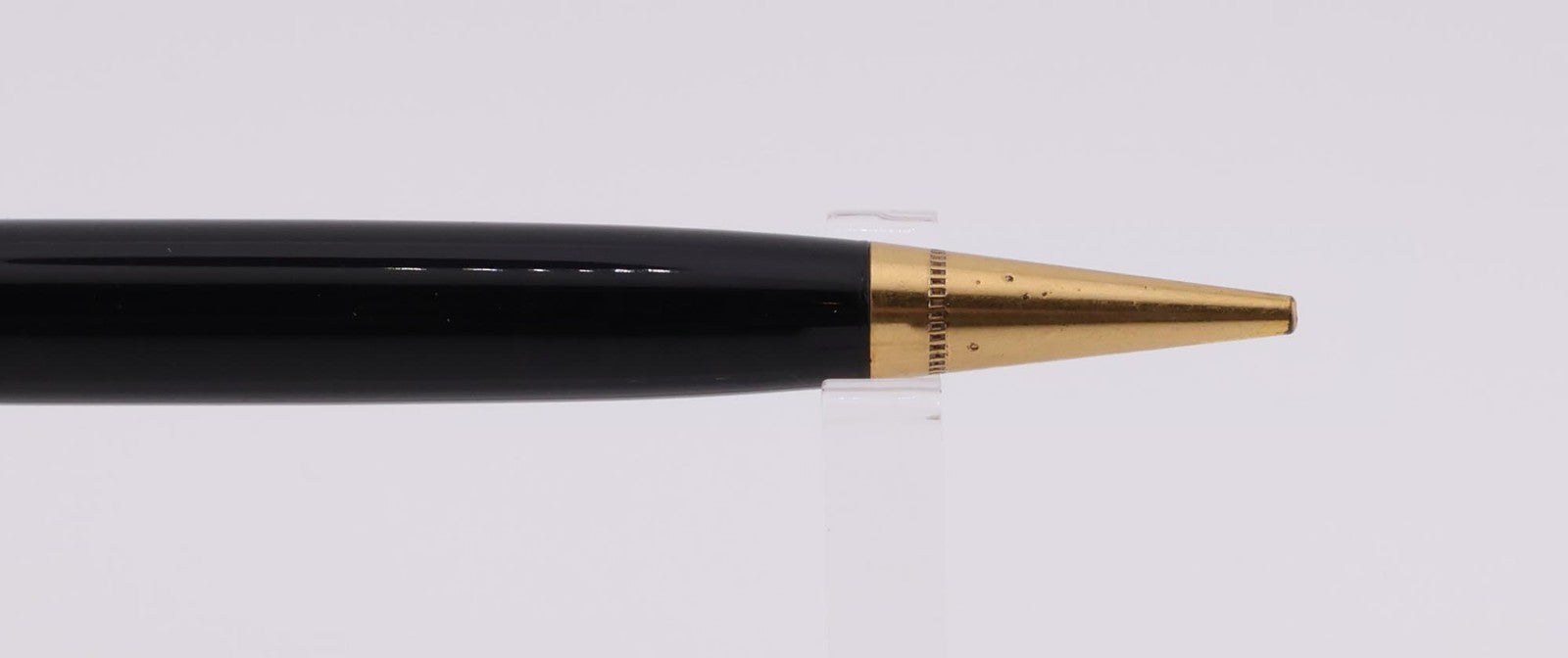 This pencil is used. The pencil shows average signs of wear and tear including scuff marks, scratches, nicks, and worn finishes. The gold finish is slightly discolored in several places. We got the pencil to successfully eject and insert lead. Please refer to the pictures to get a better idea of the physical condition. The outer box may not be original to the item. Any adjustments, re-leading, cleaning, and/or maintenance are the expense and responsibility of the new owner. All pictures included in this listing are of the actual item for sale.