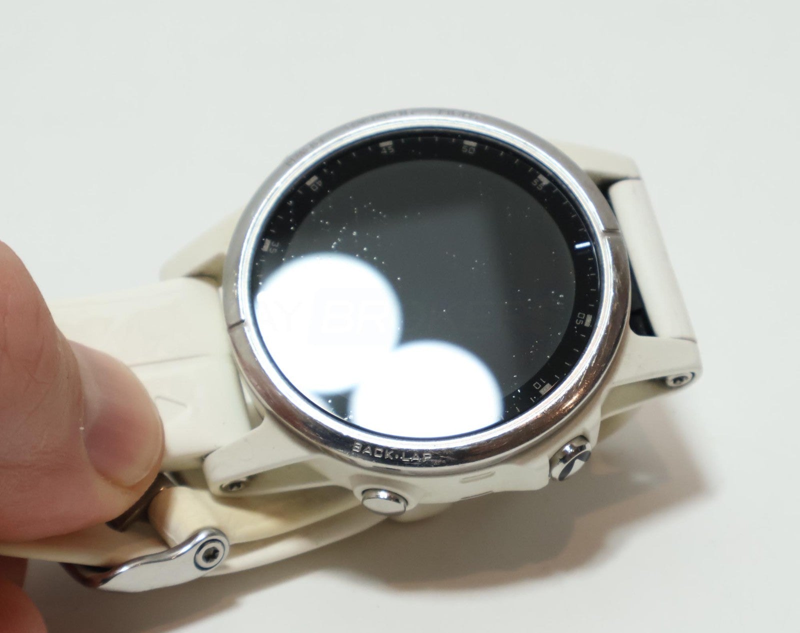 This item is used. The item shows average signs of wear and tear including scuff marks, scratches, nicks, and worn finishes. The screen glass itself has small dots on it. There are discolorations on the watch band. Please refer to the pictures to get a better idea of the physical condition. The battery holds a charge. The remainder of the item has been tested and is in good working order.