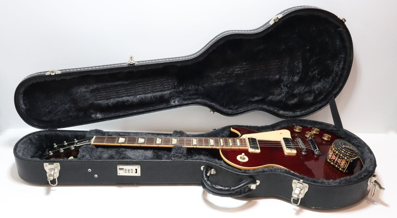 This item is used. The item shows average signs of wear and tear including scuff marks, scratches, nicks, and worn finishes. There are some dings and dents visible along with small chips in the finish. The glossy finish has some circular dots throughout and could use a good polishing/cleaning. The strings are in need of replacement too. The neck has a slight curve to it, if being picky. Please refer to the pictures to get a better idea of the physical condition. Based on the serial, this guitar is dated to 2006. The 3-digit combo lock on the case is broken. Any adjustments, modifications, repair/parts, or setup (and their associated tasks) are the expense and responsibility of the new owner. All pictures included in this listing are of the actual item for sale.