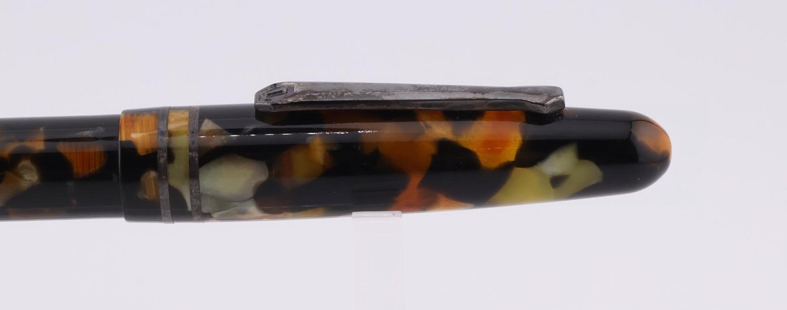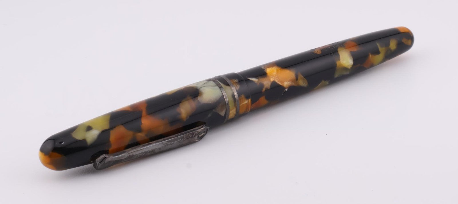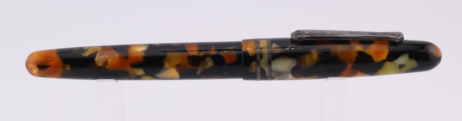 This pen is gently used. The pen shows average signs of wear and tear including scuff marks and worn finishes. The plunger feels a bit loose when twisting. The silver on the clip is discolored. The pen can retain test water. Please refer to the pictures to get a better idea of the physical condition. Any adjustments, inking, cleaning, and/or maintenance are the expense and responsibility of the new owner. All pictures included in this listing are of the actual item for sale.