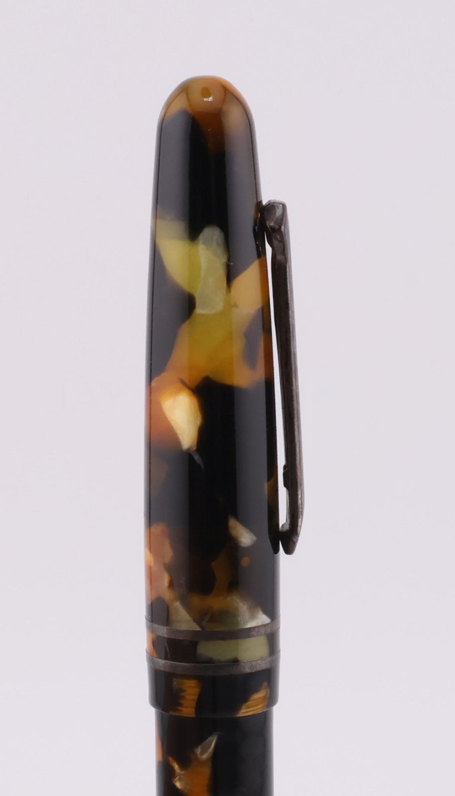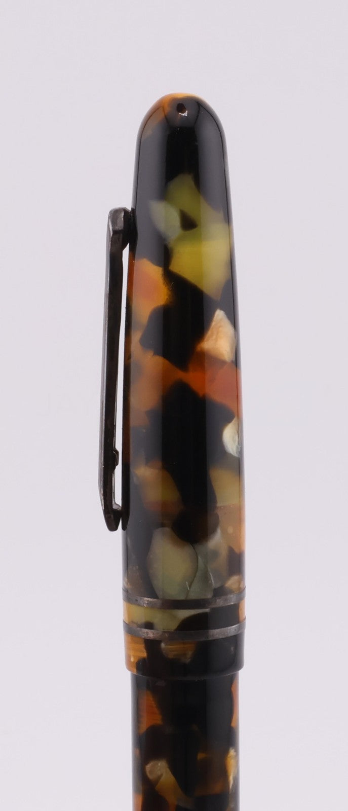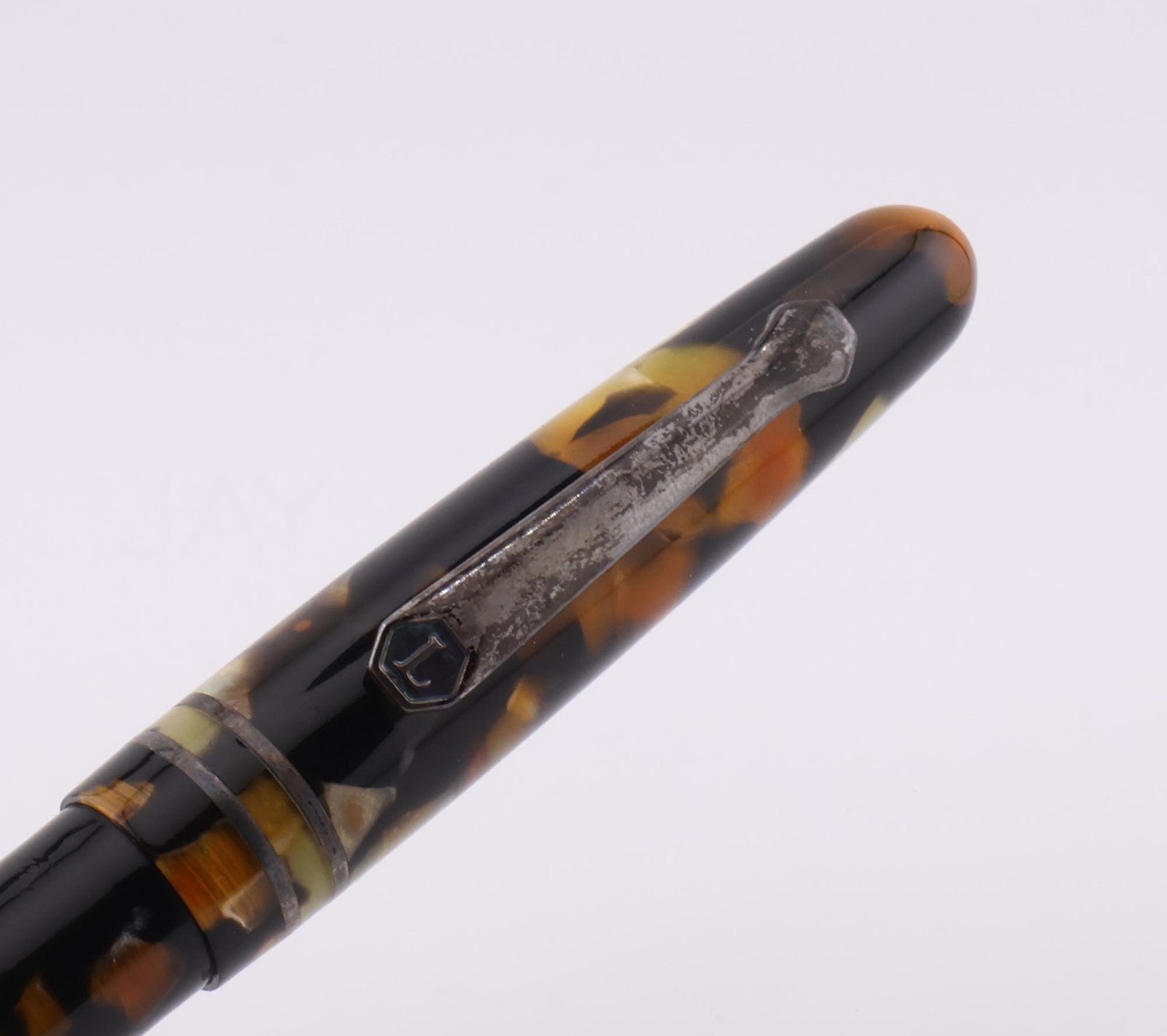 This pen is gently used. The pen shows average signs of wear and tear including scuff marks and worn finishes. The plunger feels a bit loose when twisting. The silver on the clip is discolored. The pen can retain test water. Please refer to the pictures to get a better idea of the physical condition. Any adjustments, inking, cleaning, and/or maintenance are the expense and responsibility of the new owner. All pictures included in this listing are of the actual item for sale.