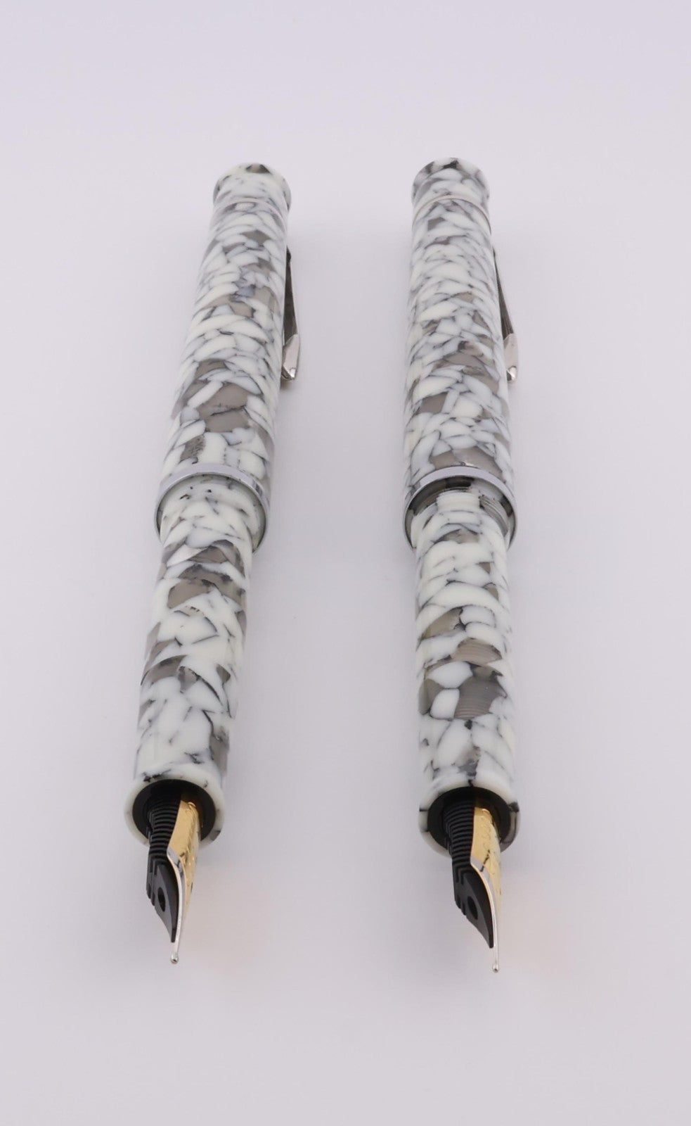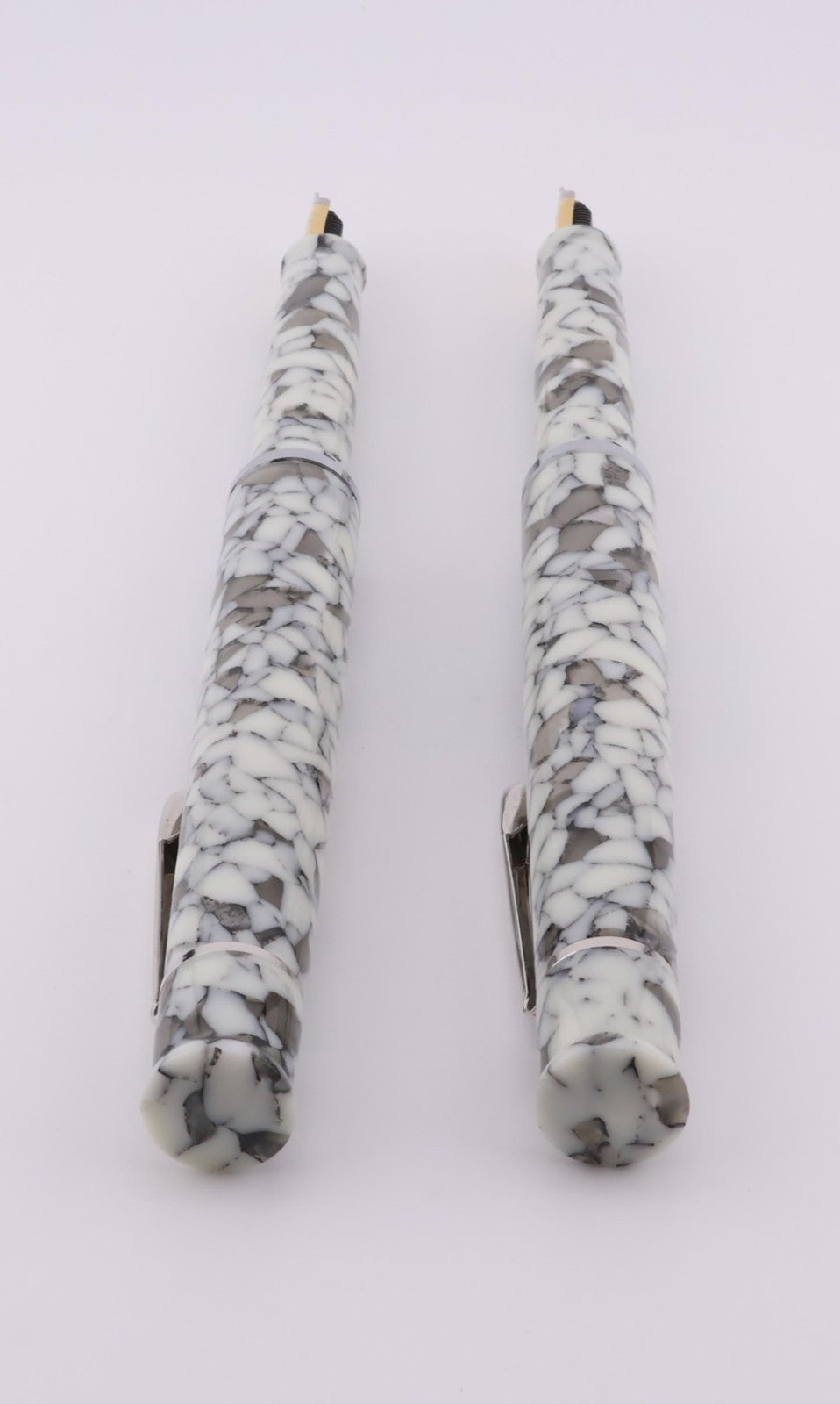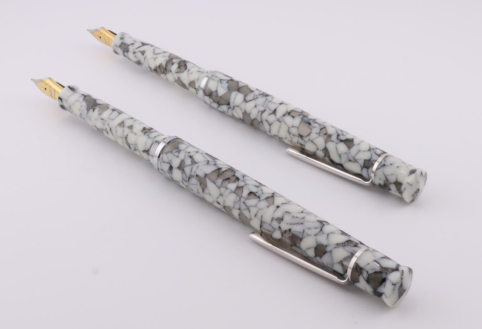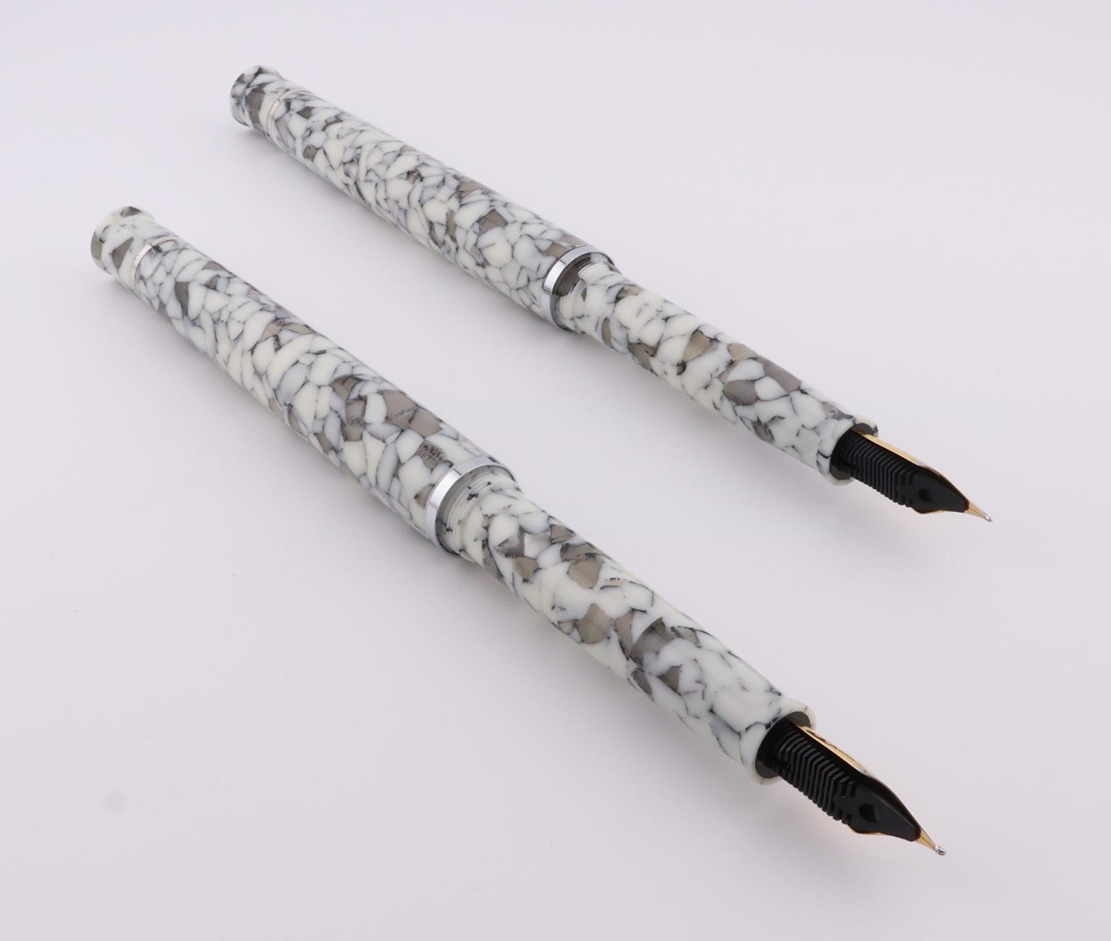 Lot of 2x Bexley Fountain Pens - Mosaic Crushed Marble w/ Silver Trim & Gold Nib