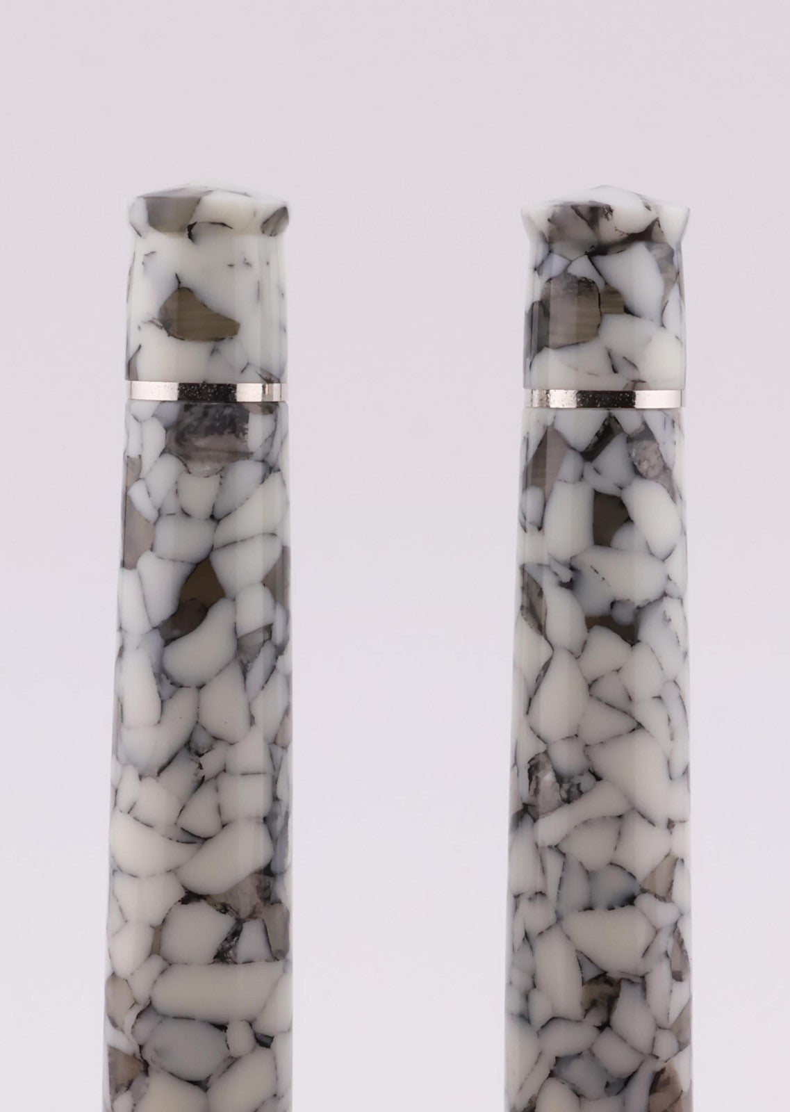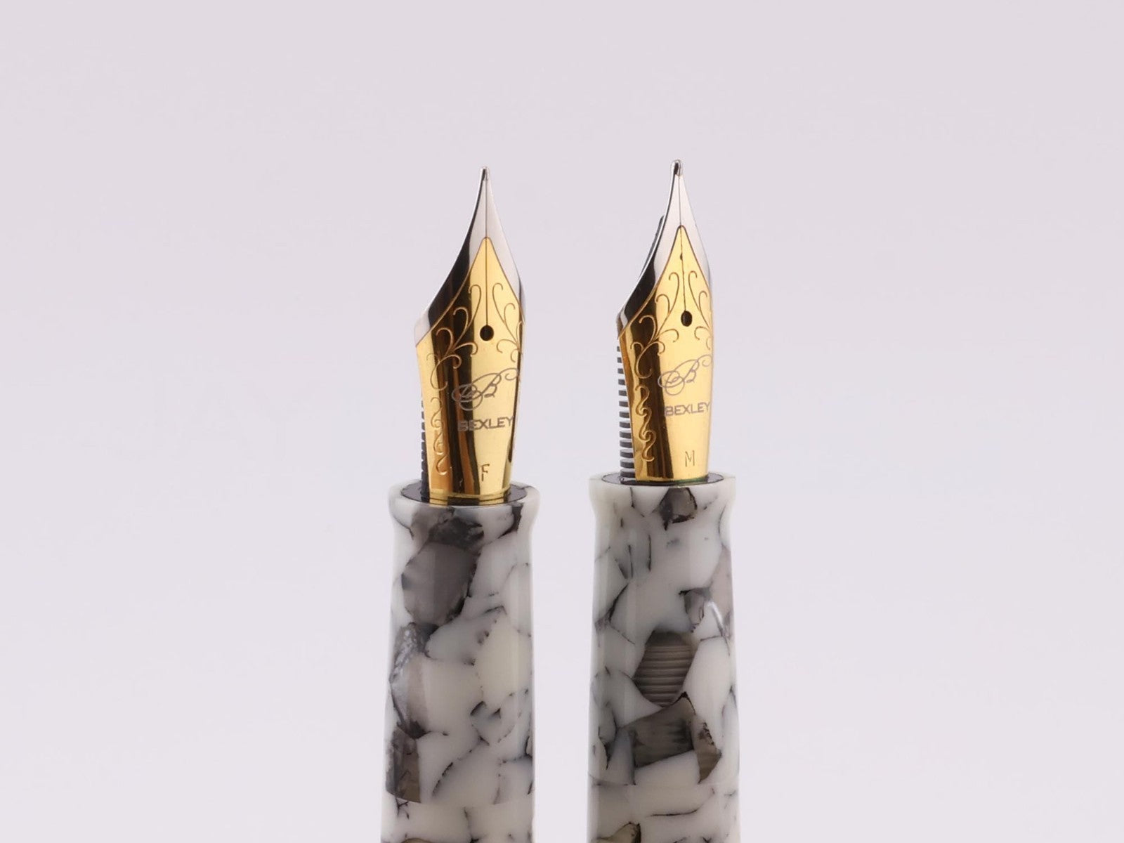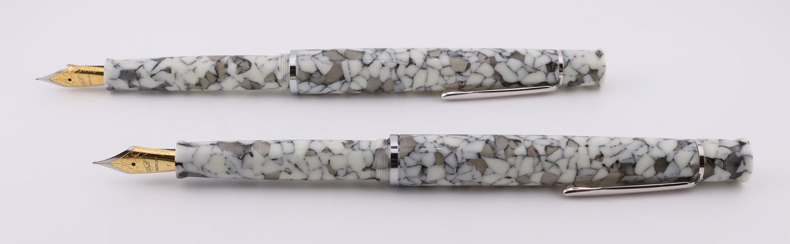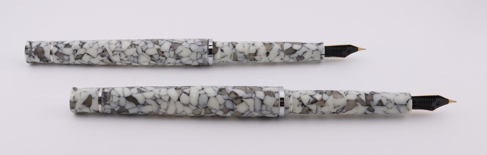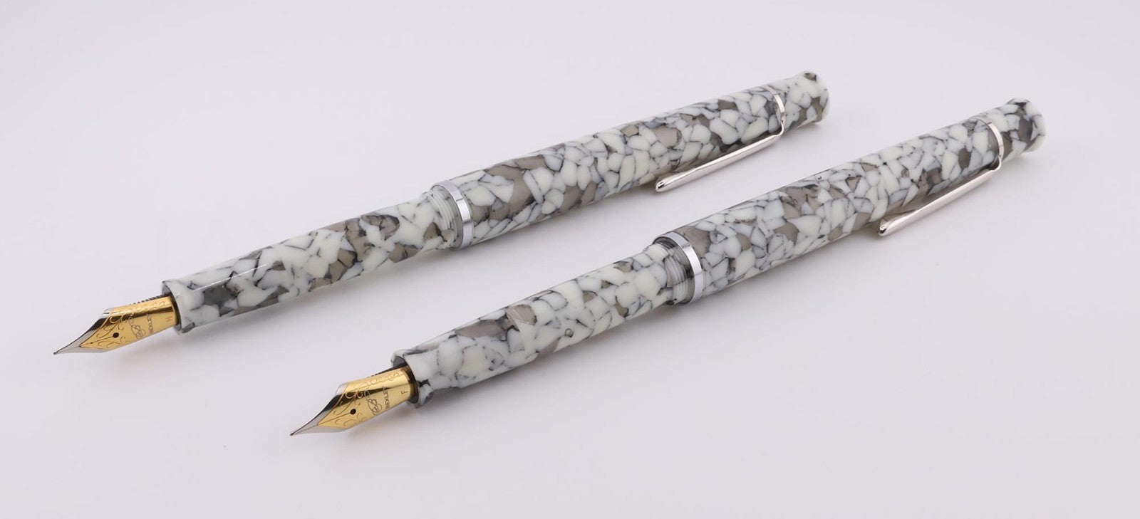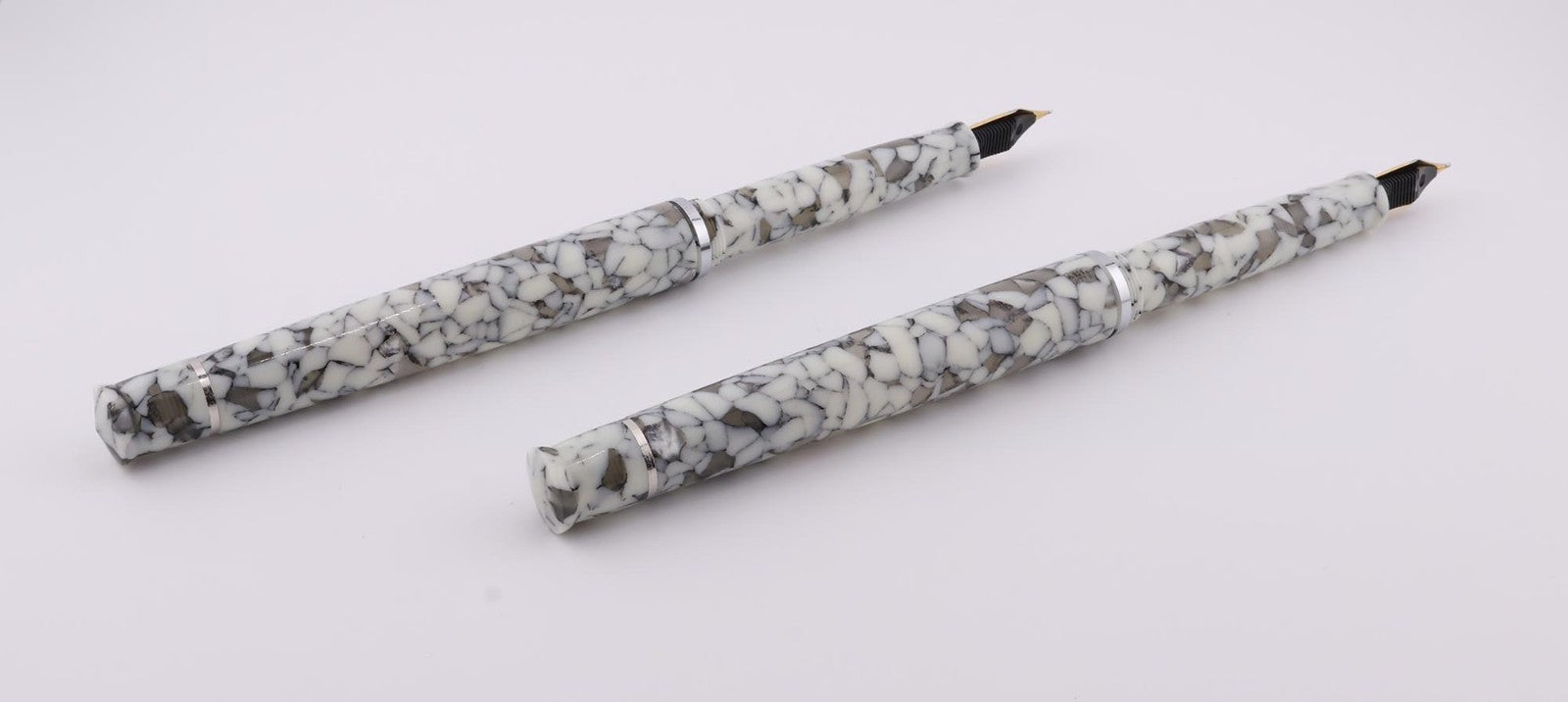 Lot of 2x Bexley Fountain Pens - Mosaic Crushed Marble w/ Silver Trim & Gold Nib