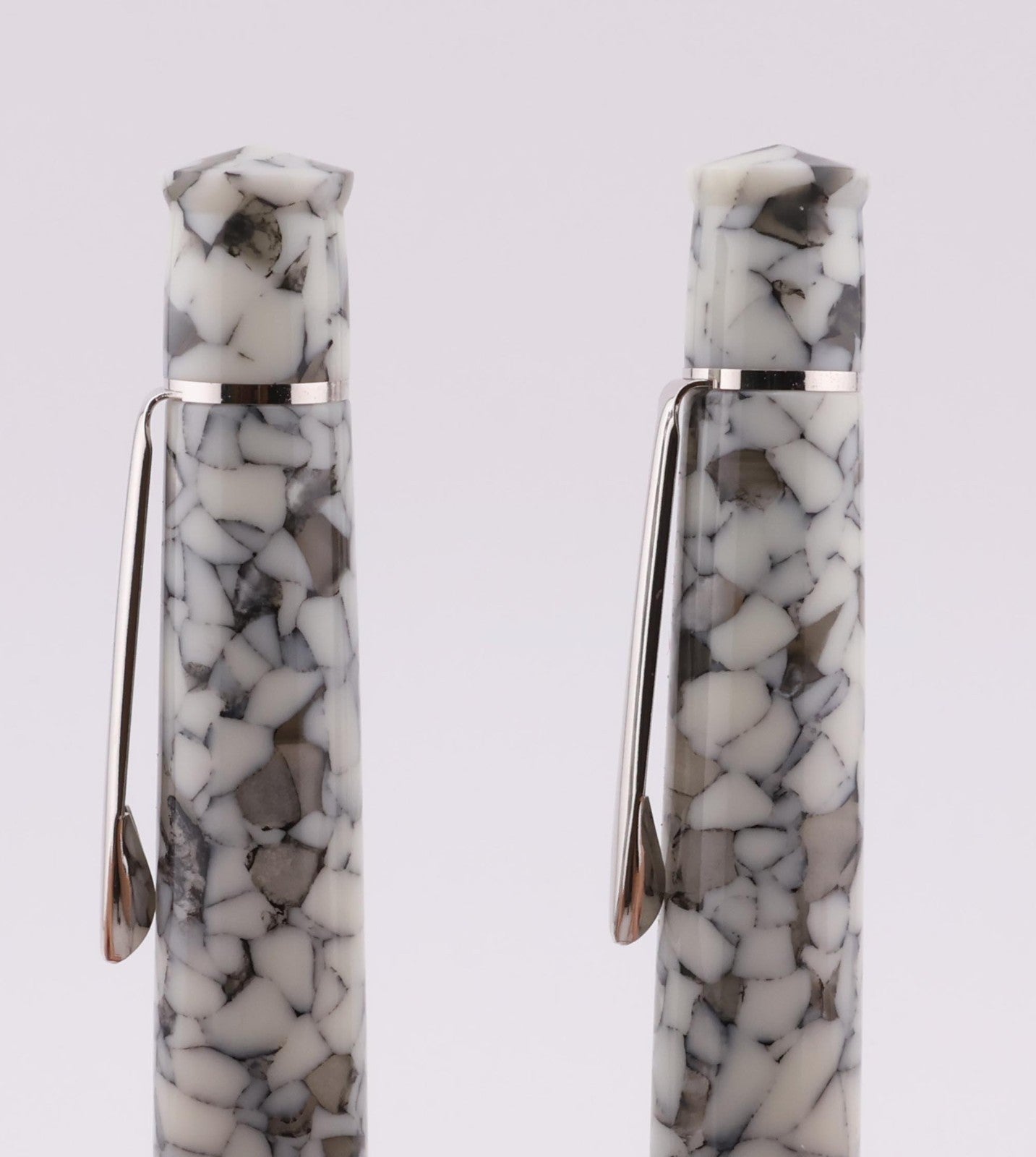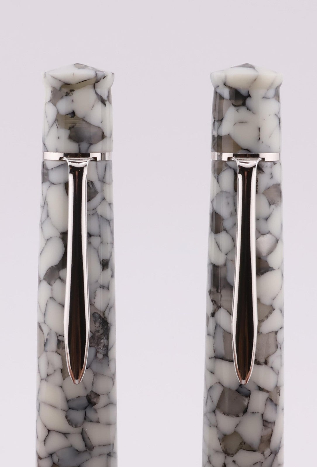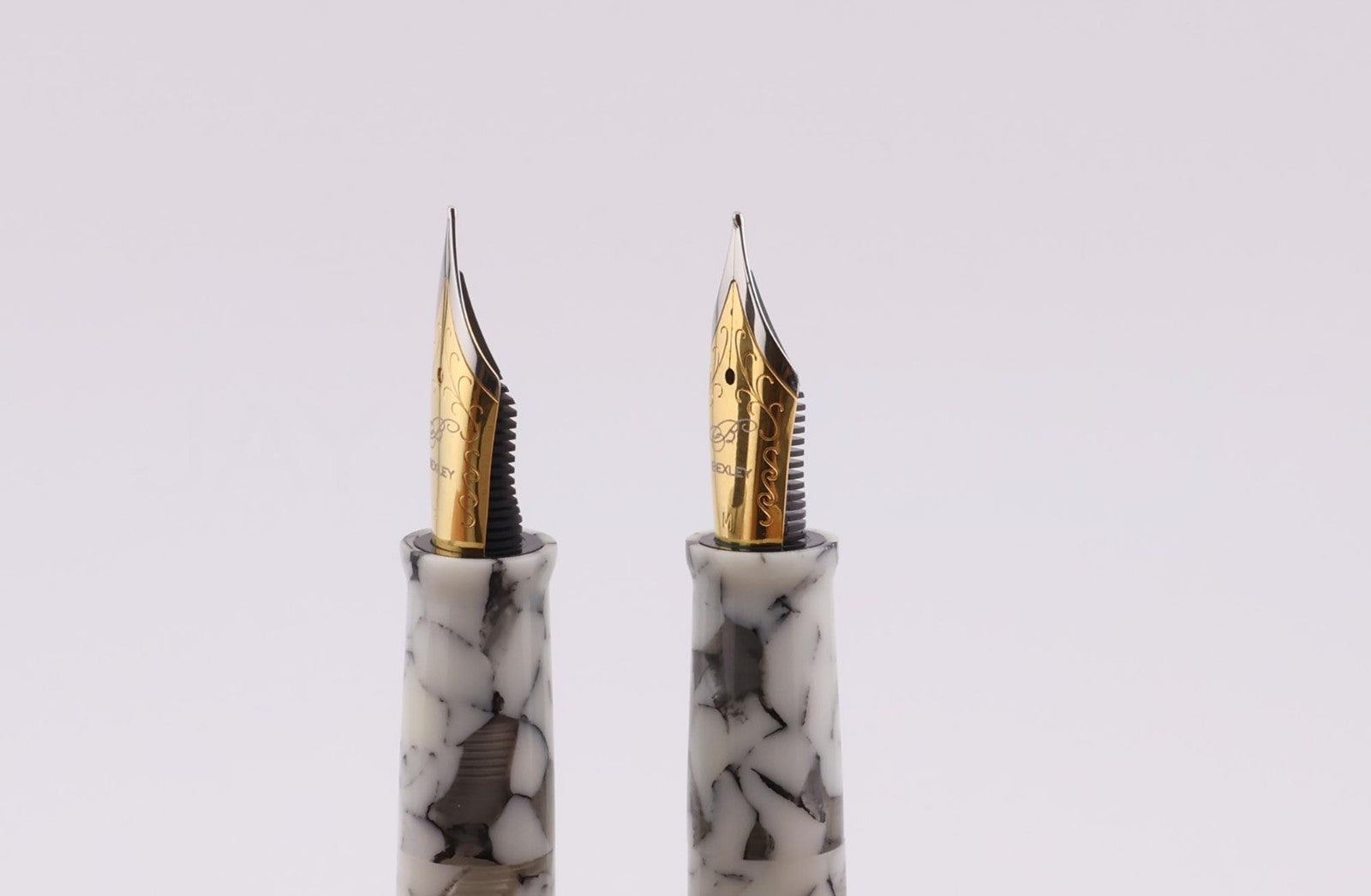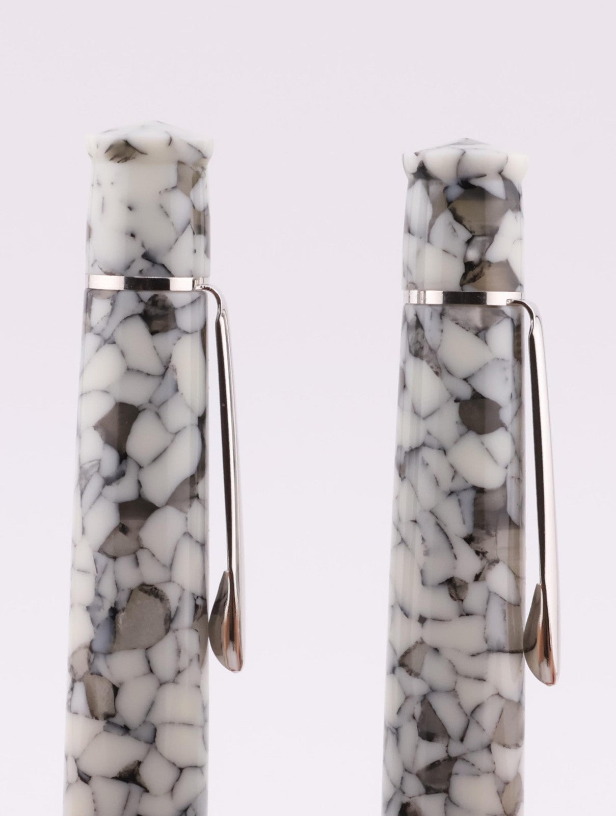 Lot of 2x Bexley Fountain Pens - Mosaic Crushed Marble w/ Silver Trim & Gold Nib