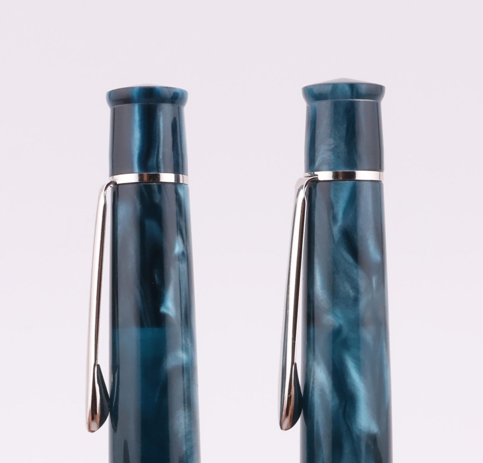 These pens are gently used. The pens shows minor signs of wear and tear including scuff marks and worn finishes. When the clip side of the pen is unscrewed a silver ring and the clip ring become loose and will remain so until tightened again. Please refer to the pictures to get a better idea of the physical condition. Any adjustments, inking, cleaning, and/or maintenance are the expense and responsibility of the new owner. All pictures included in this listing are of the actual item for sale.