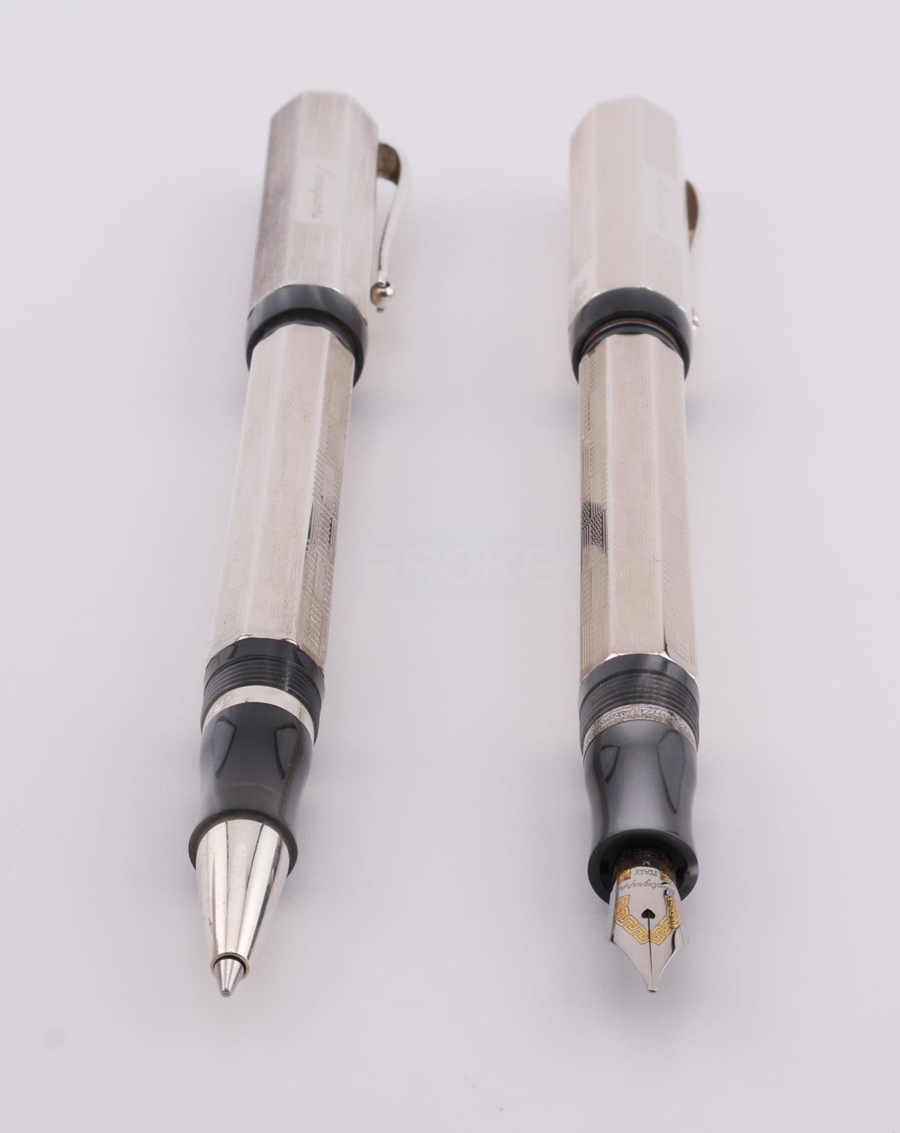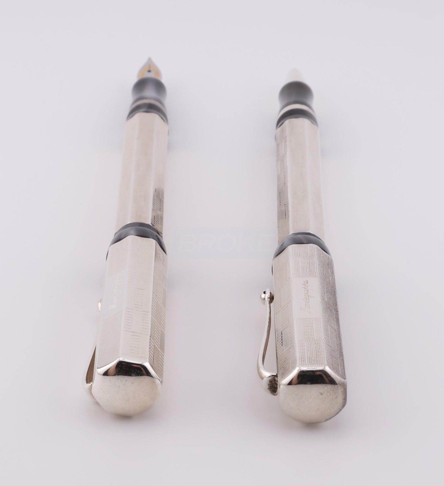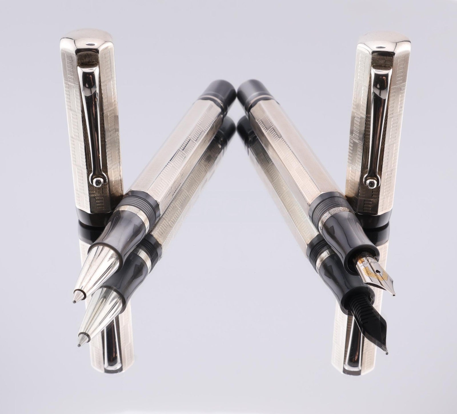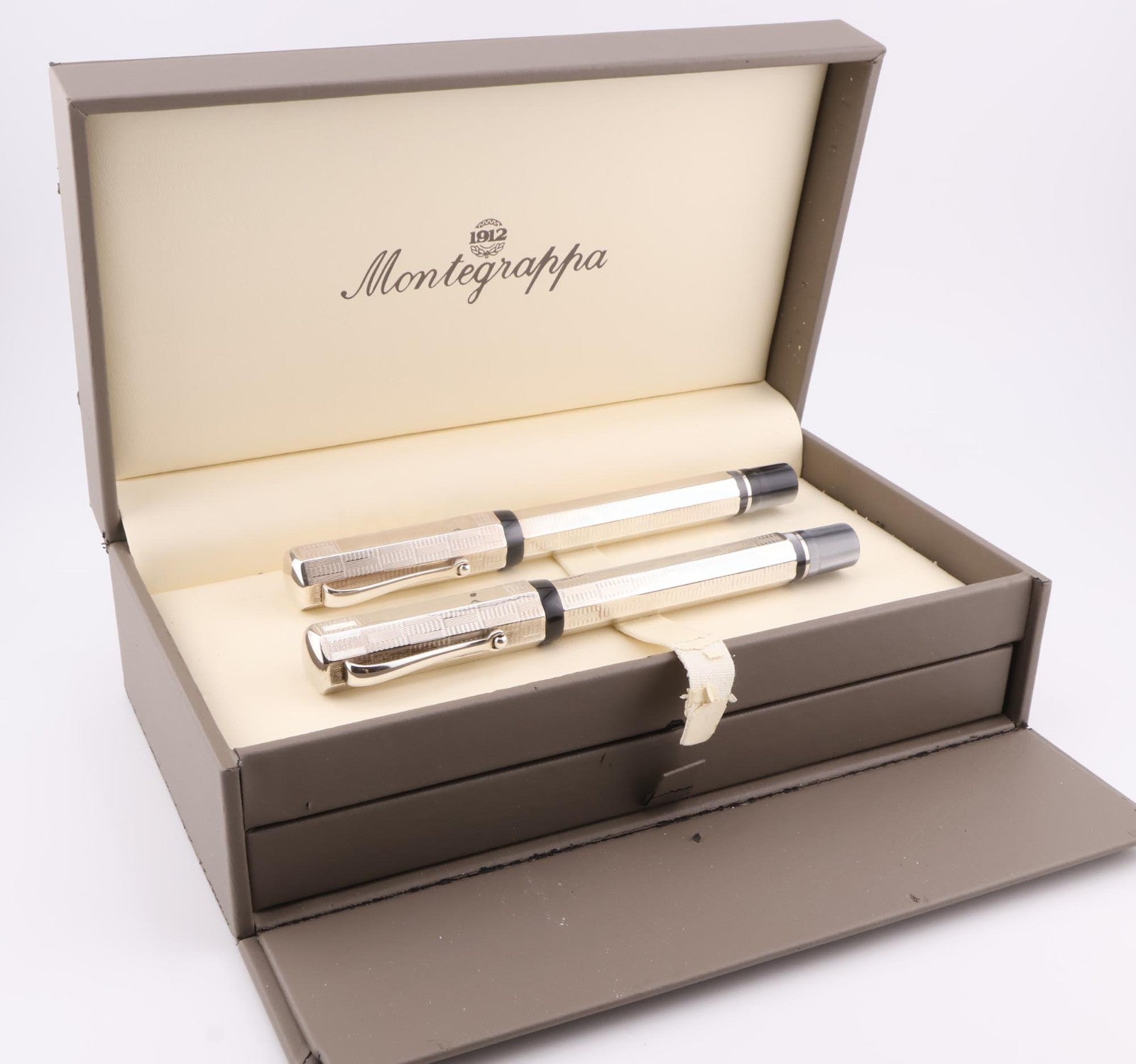 Lot of 2x Montegrappa Privilege Deco Sterling Silver Fountain & Rollerball Pen