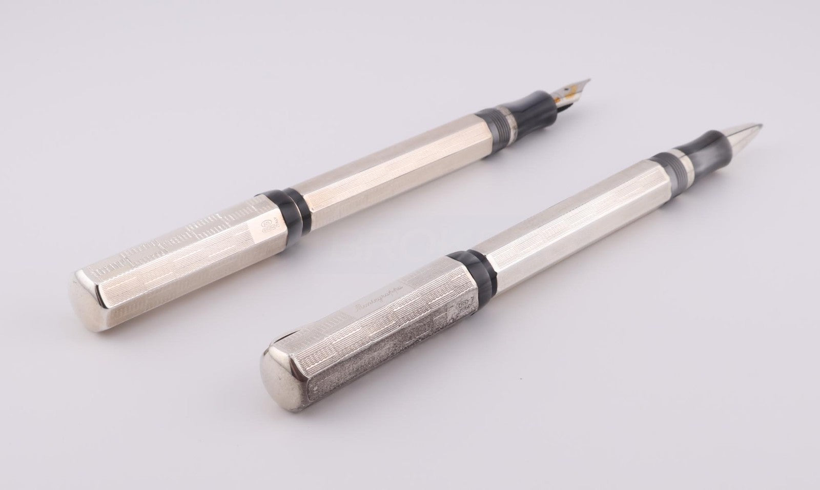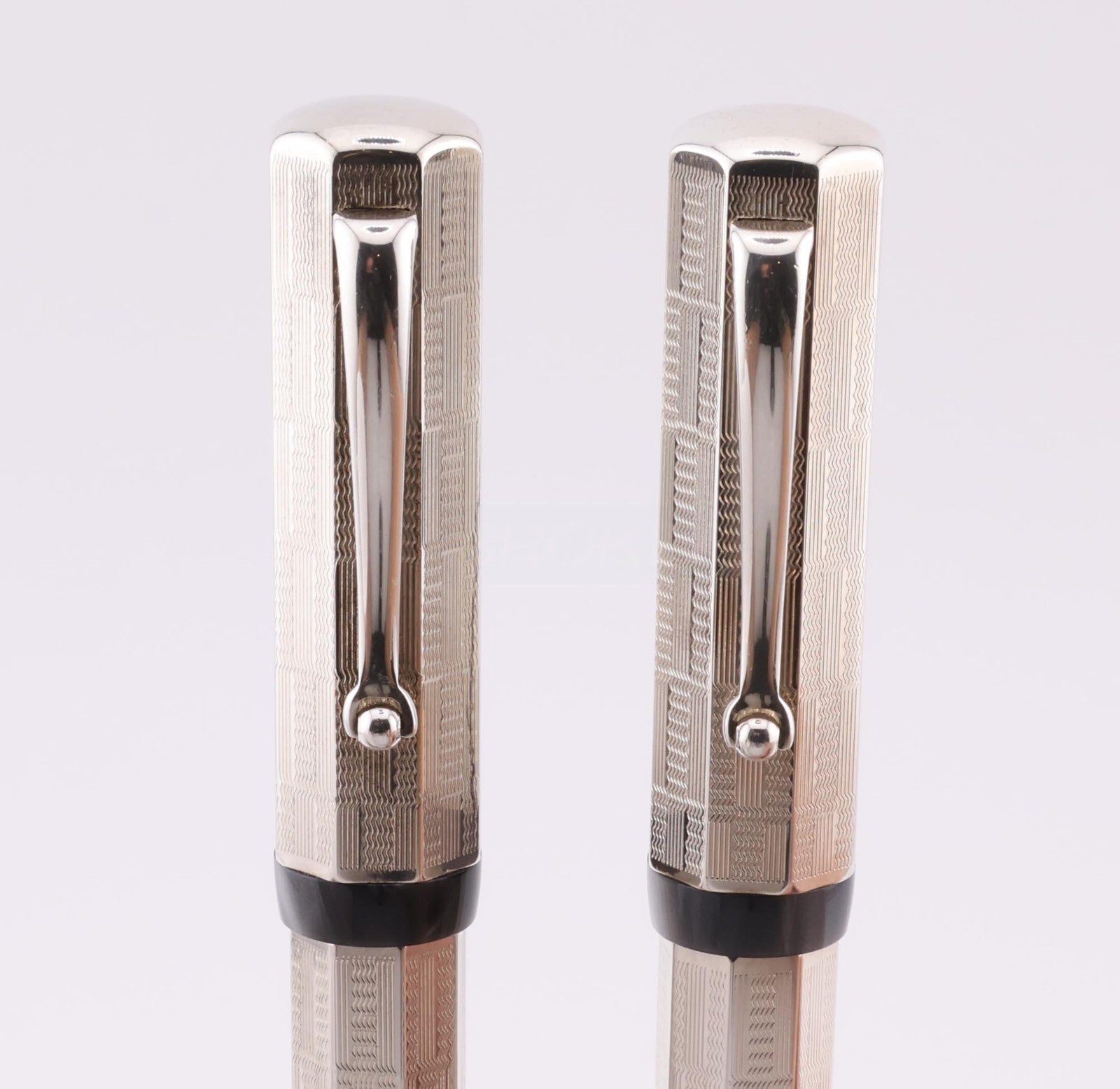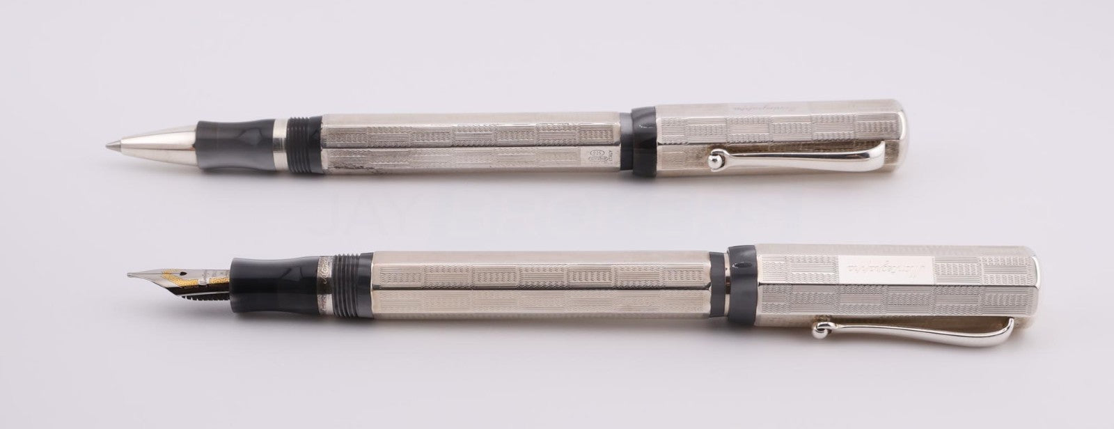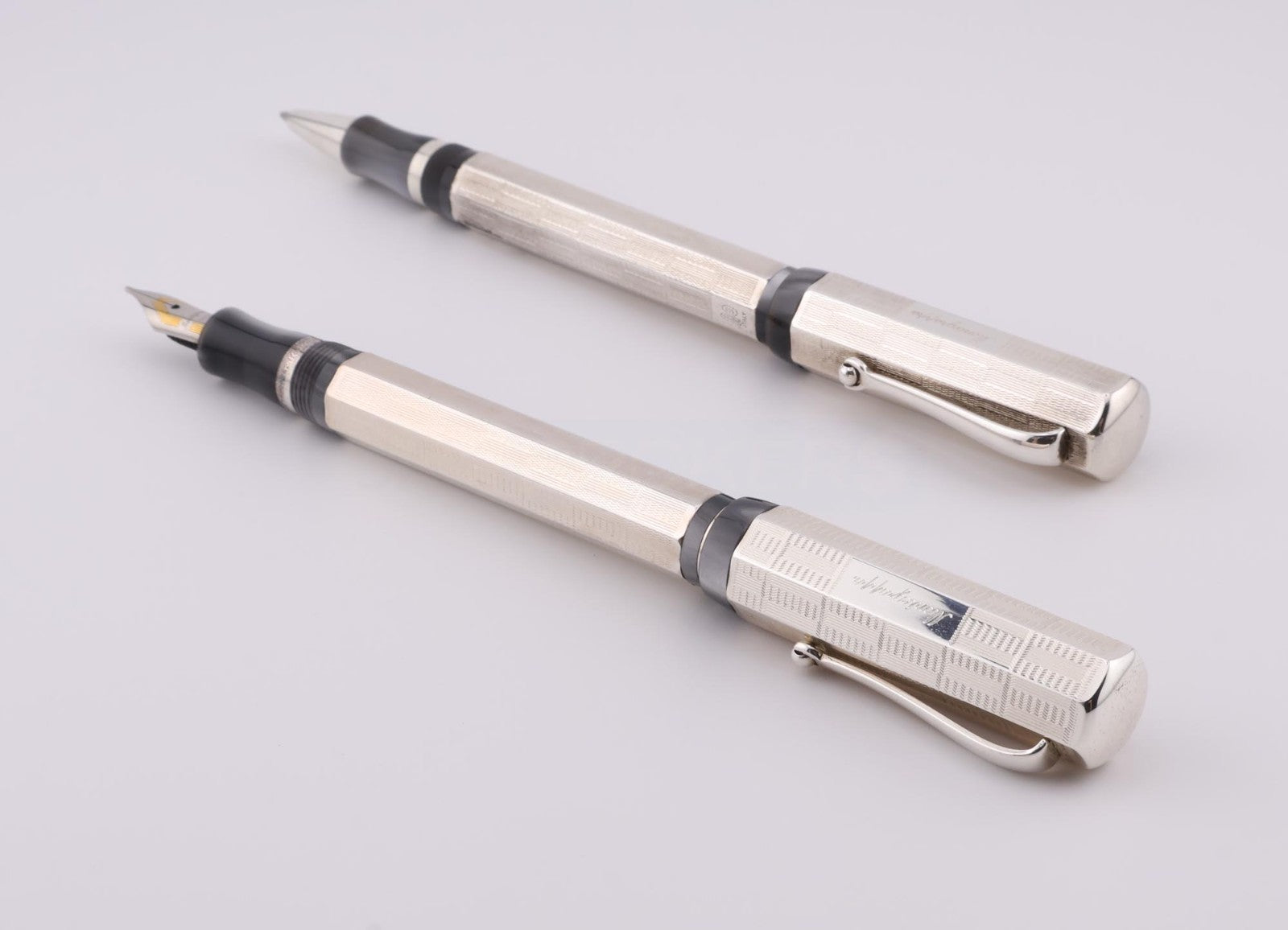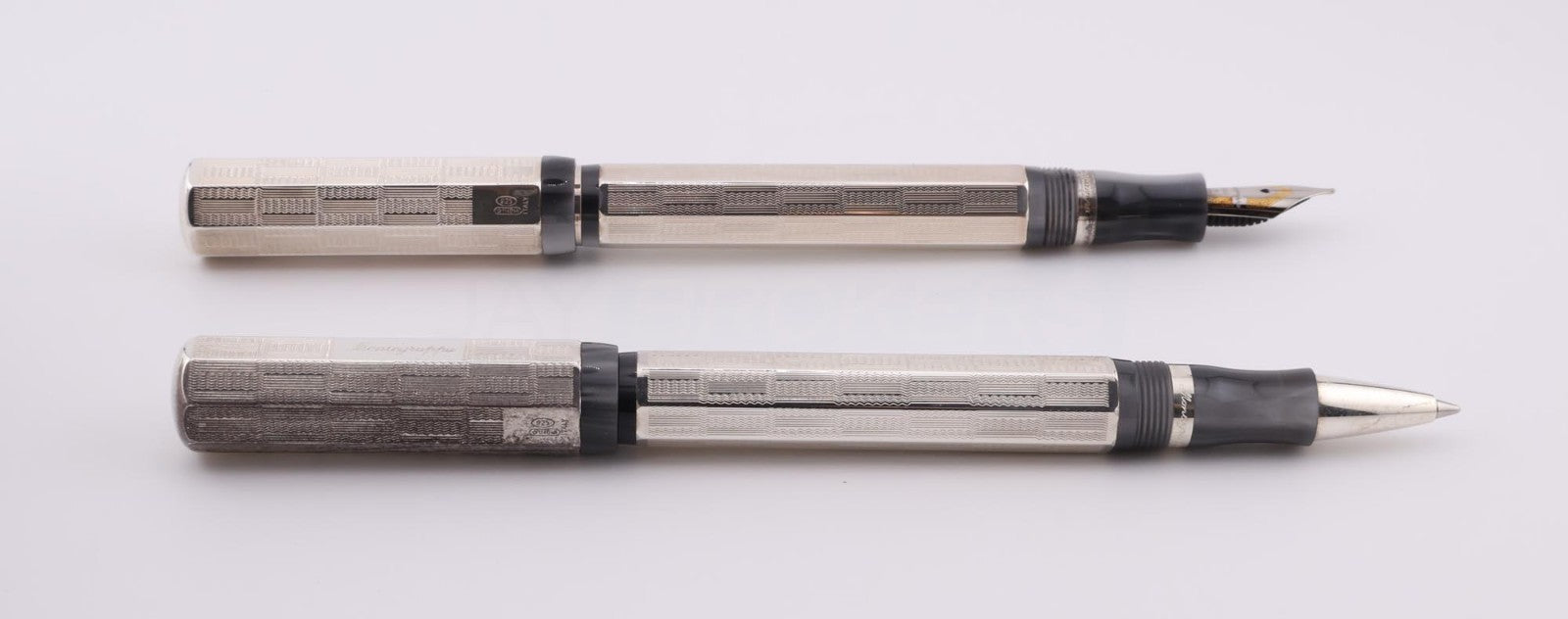 Lot of 2x Montegrappa Privilege Deco Sterling Silver Fountain & Rollerball Pen