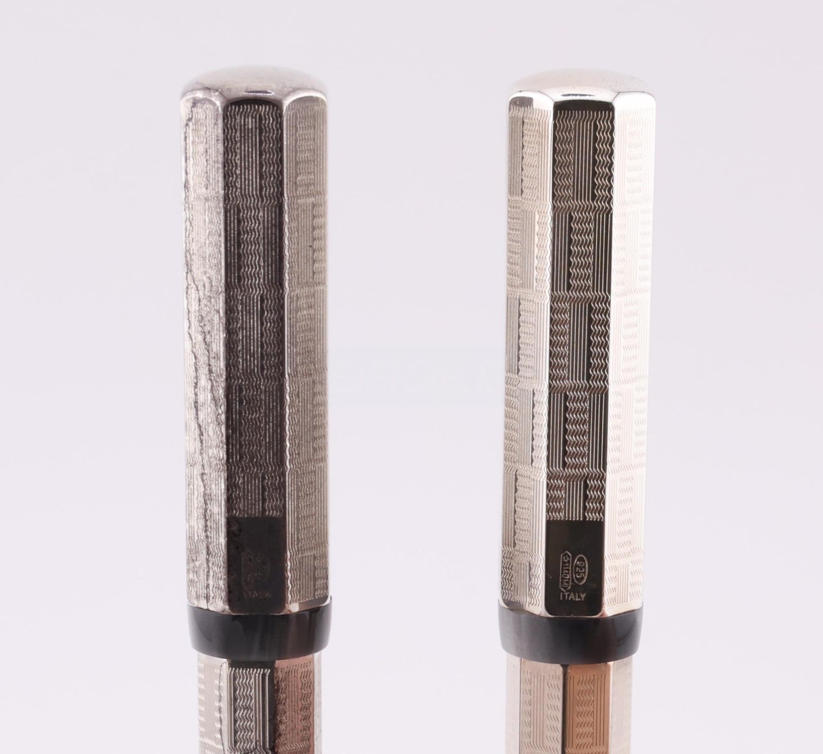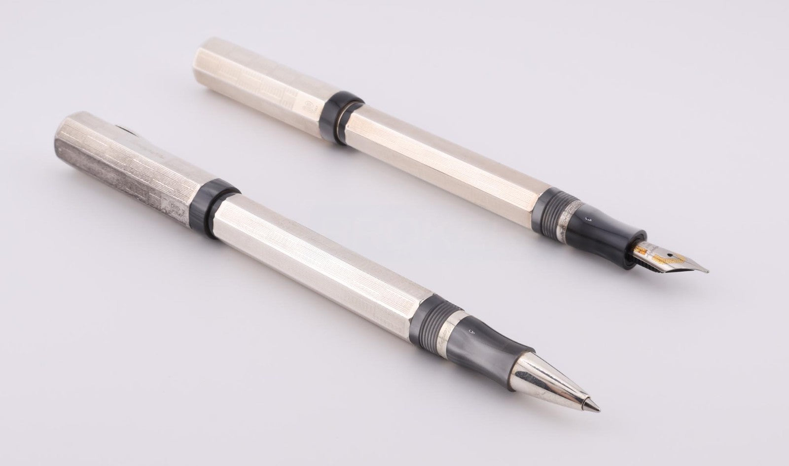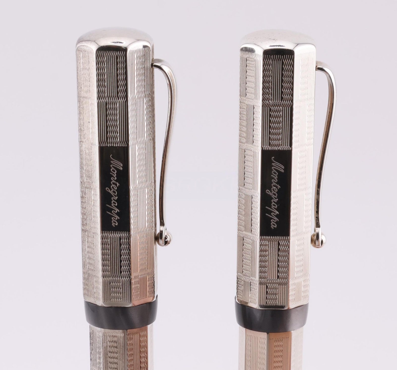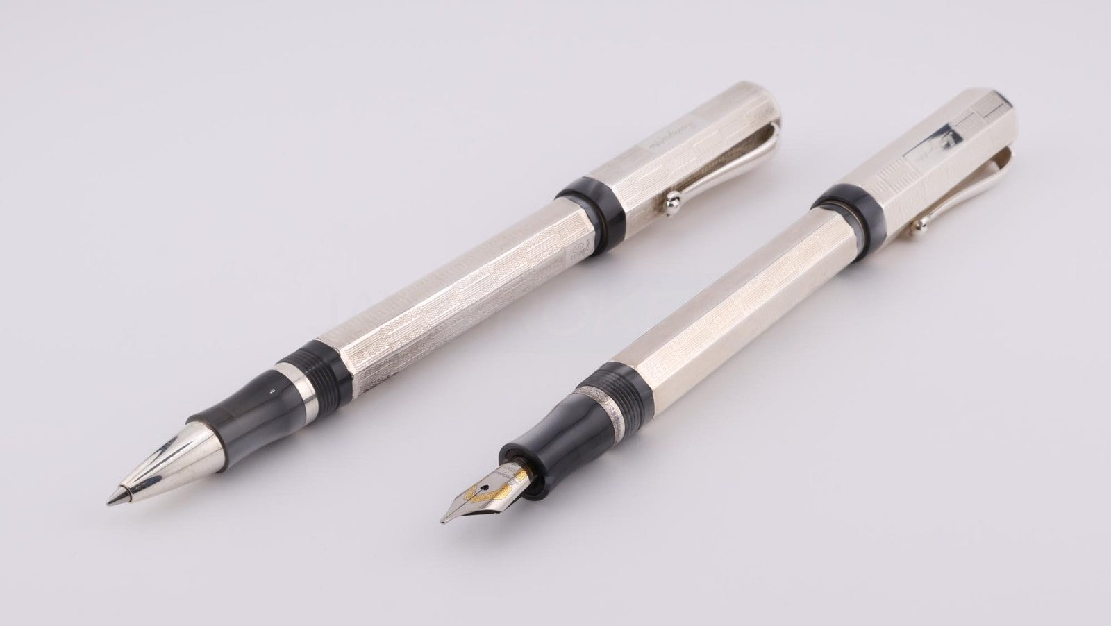 Lot of 2x Montegrappa Privilege Deco Sterling Silver Fountain & Rollerball Pen